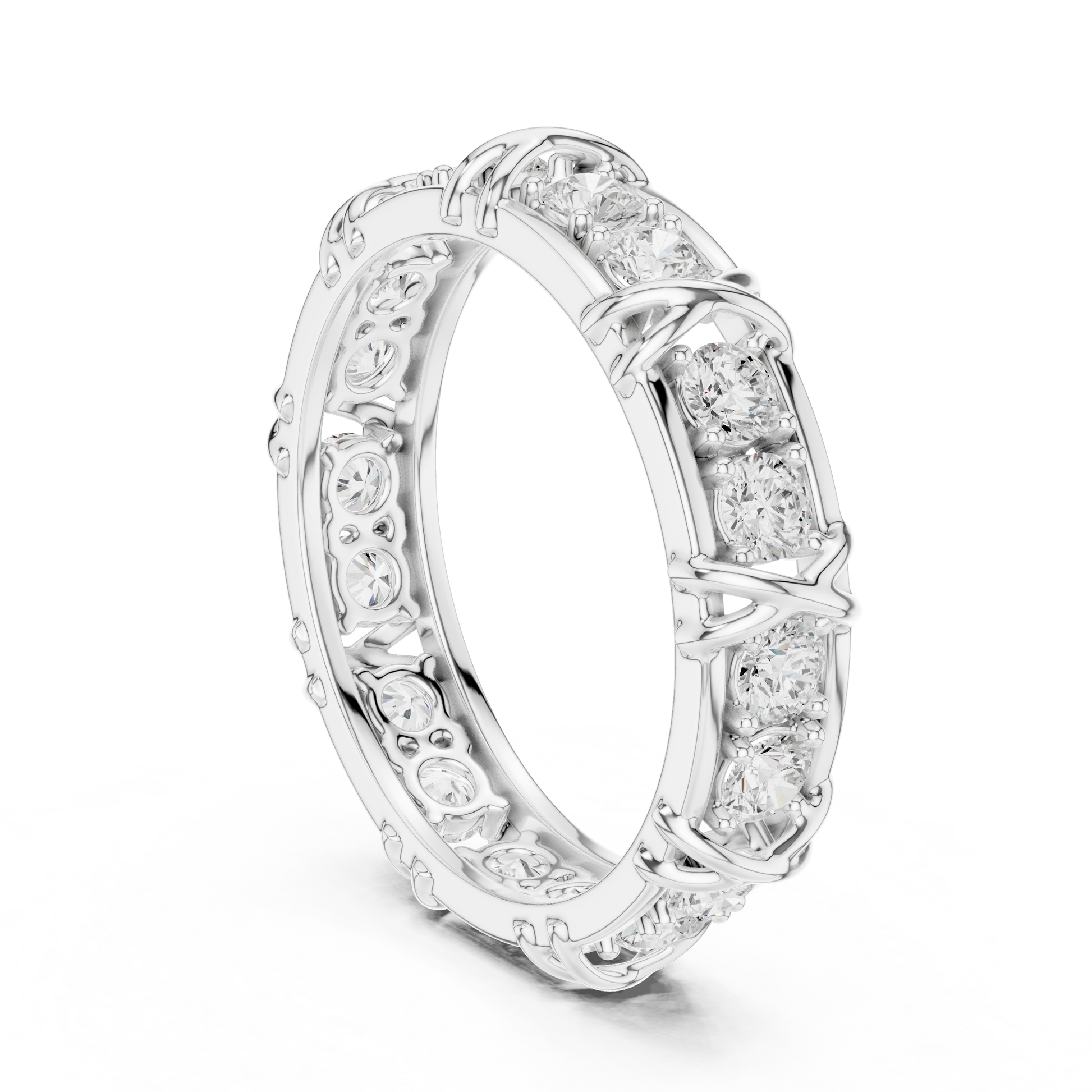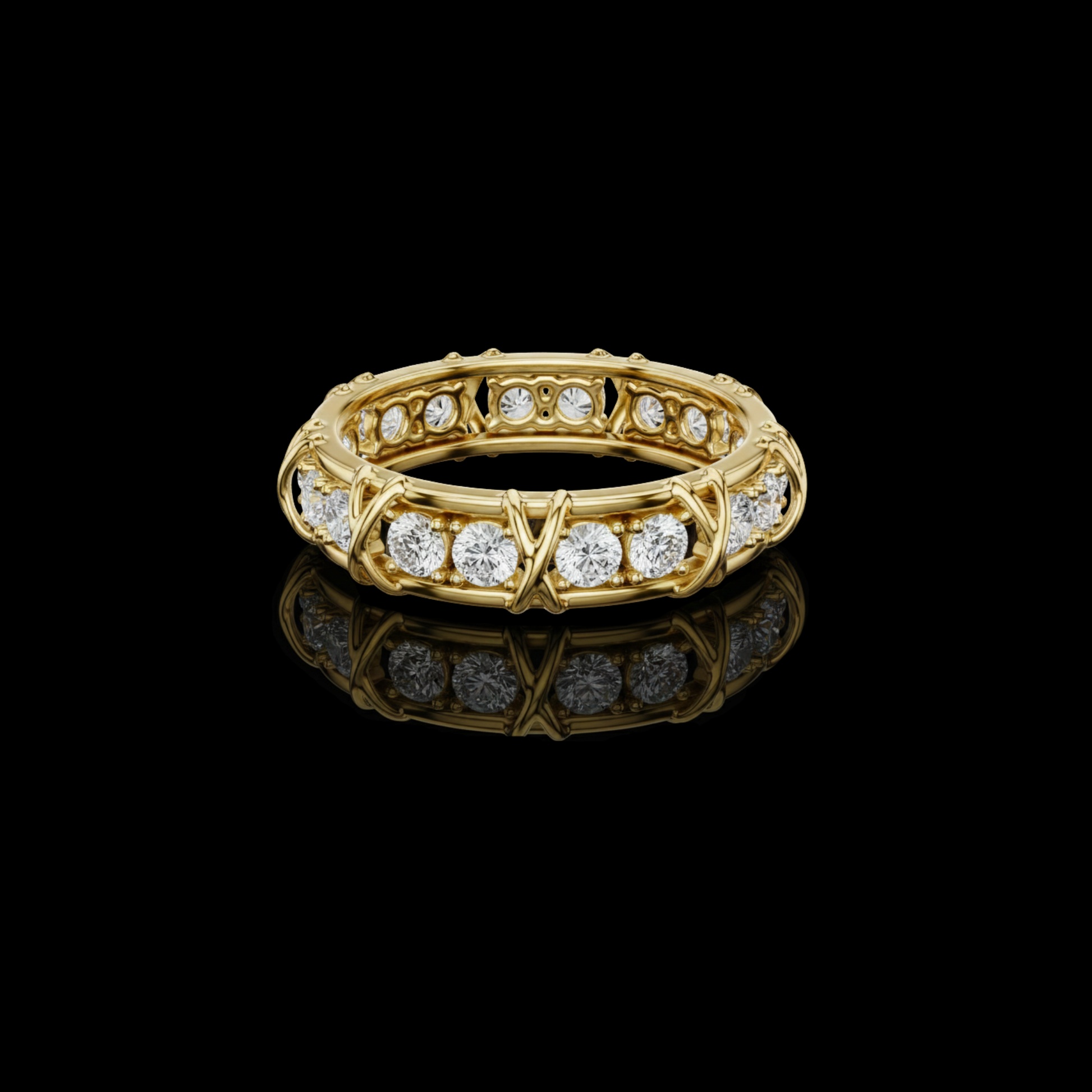 This exquisite eternity ring showcases a masterfully crafted band, intricately designed to cradle a continuous circle of sparkling round-cut diamonds. Each diamond is carefully set to maximize brilliance, fire, and symmetry, creating a captivating glow from every angle. The detailed gold framework adds a touch of vintage-inspired sophistication, while the seamless diamond arrangement represents eternity, commitment, and everlasting beauty. Perfect as a wedding band, anniversary ring, or statement of luxury, this piece is a timeless treasure made to be cherished for generations.