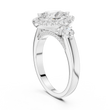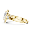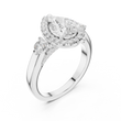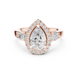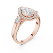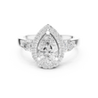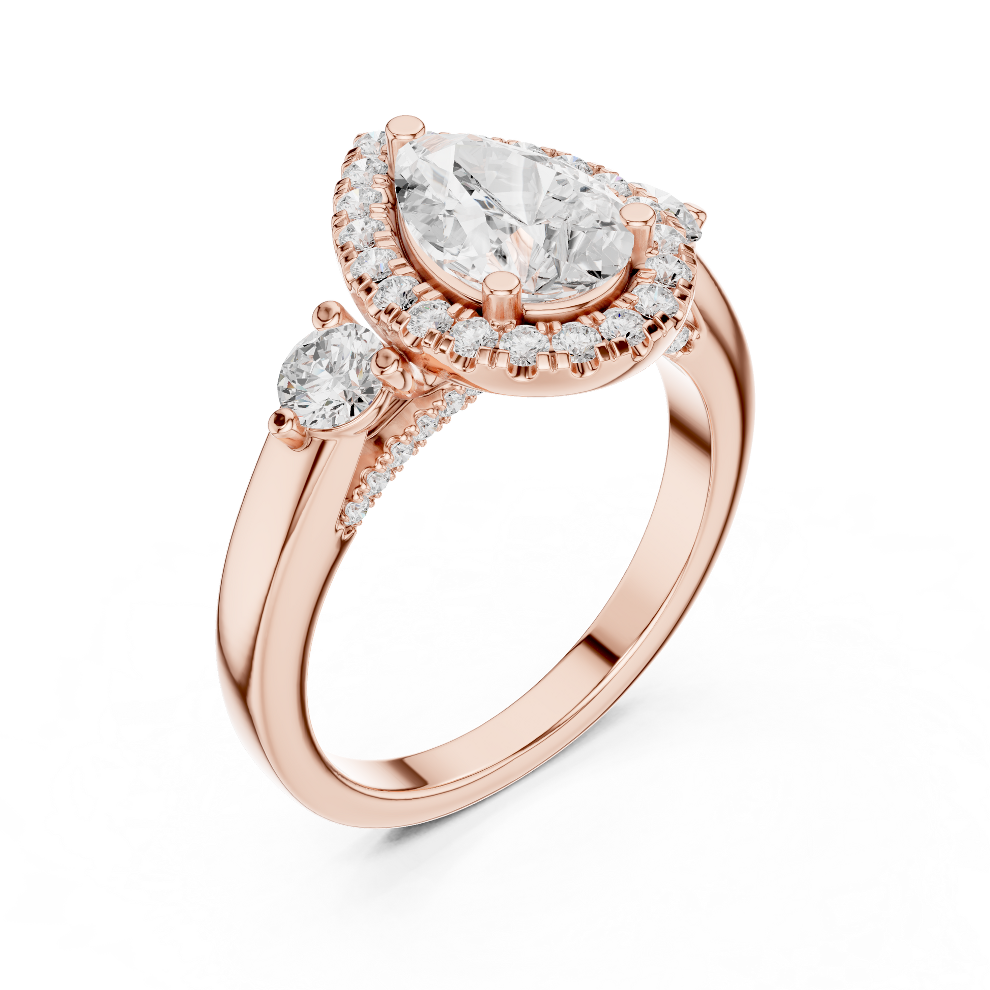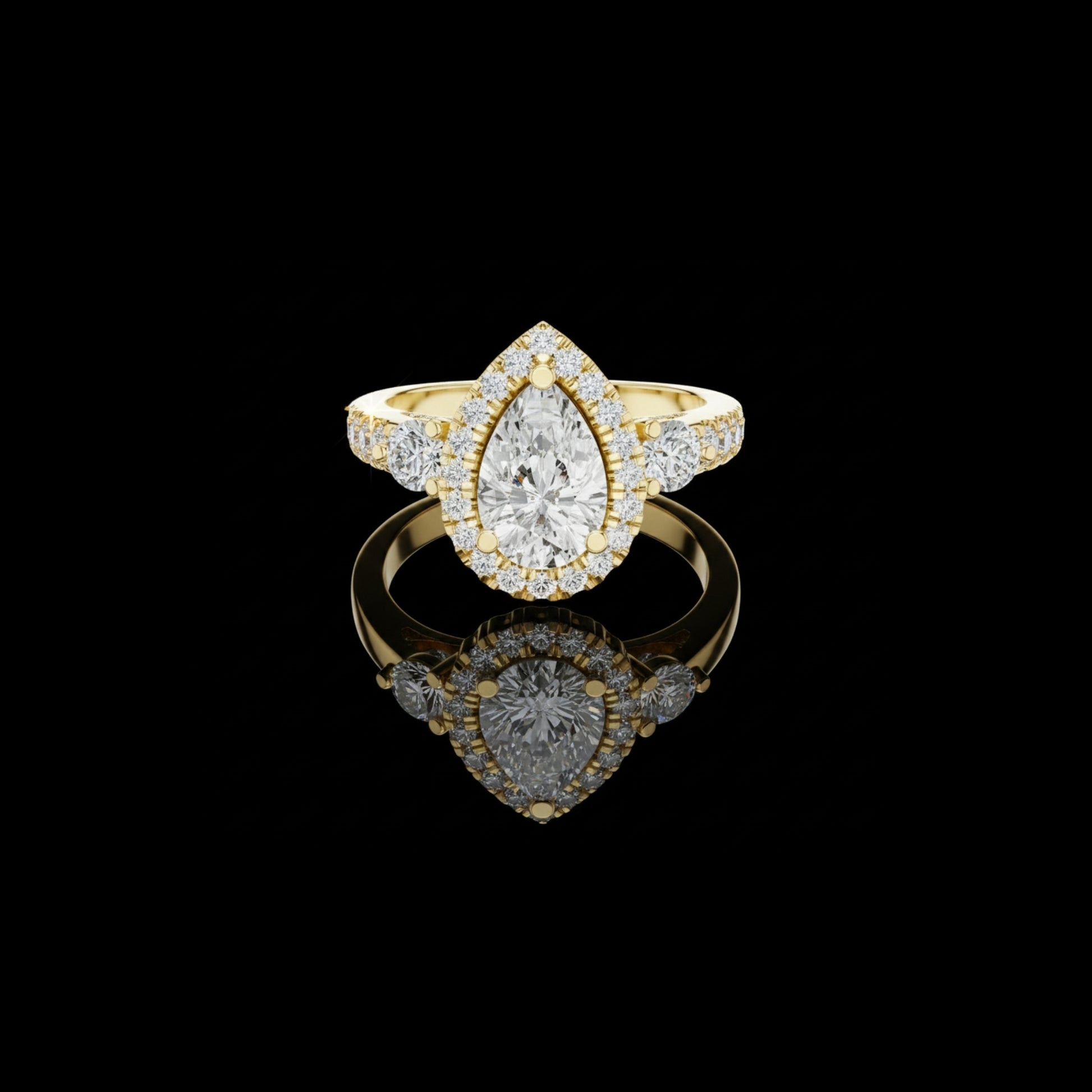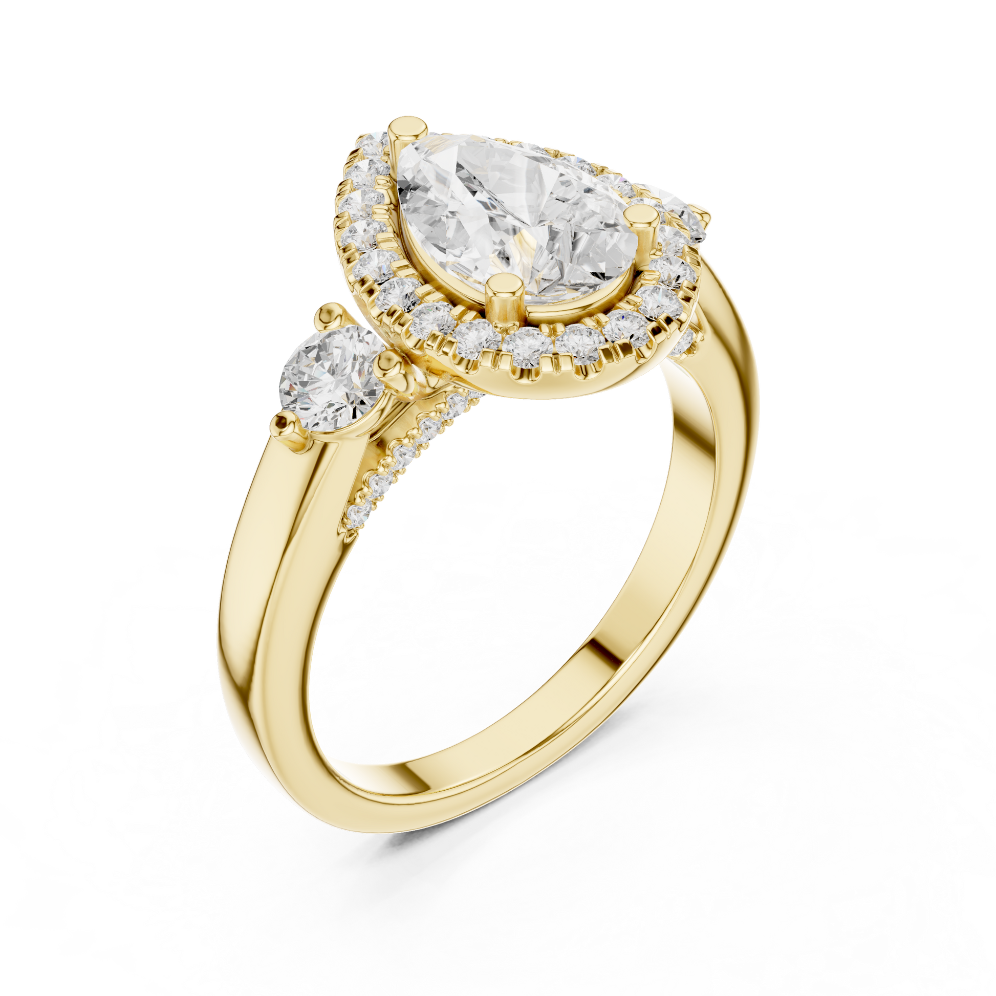 This exquisite pear-cut diamond ring radiates timeless brilliance, featuring a dazzling center stone framed by a shimmering halo of round diamonds for added depth and luminosity. Two perfectly matched round side stones elevate the sparkle, creating a graceful three-stone silhouette that symbolizes past, present, and future. Set in polished gold, this ring blends classic elegance with modern refinement—making it a radiant choice for engagements, anniversaries, or anyone seeking a luxurious statement piece.