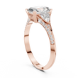 This exquisite ring showcases a radiant-cut diamond as its centerpiece, flanked by two pear-shaped side stones that enhance its brilliance and symmetry. Set in luxurious gold, the design balances timeless elegance with modern sophistication. The band features pavé-set diamonds, adding extra sparkle and a refined touch that elevates the overall allure of the piece. Perfect for those seeking a blend of luxury, craftsmanship, and classic beauty, this ring stands as a stunning symbol of commitment or celebration.