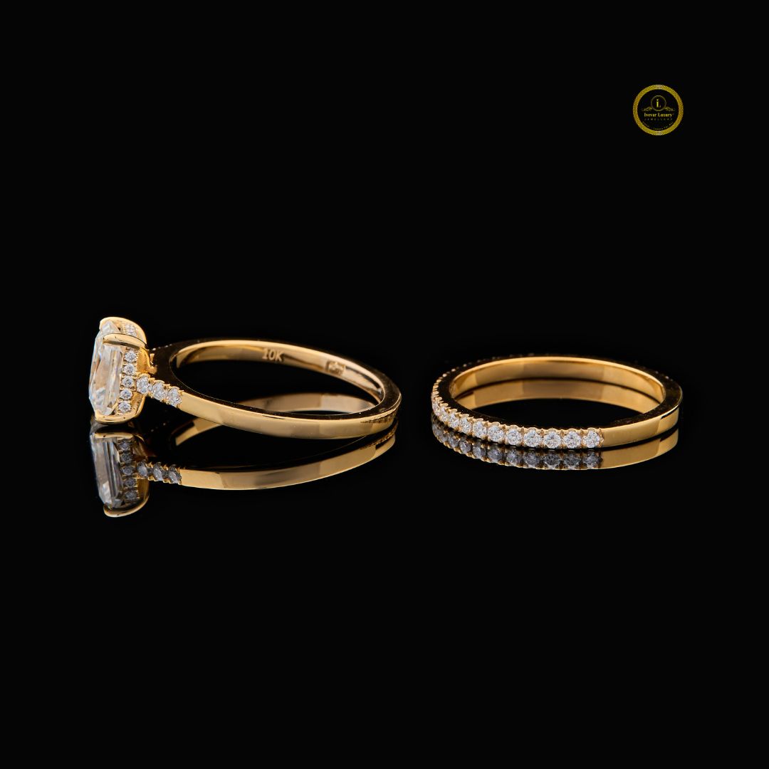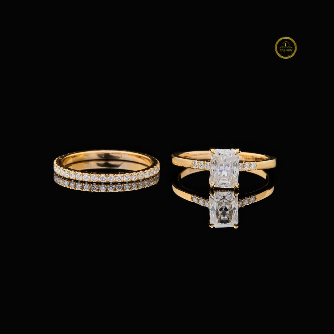 1.20 CT Luxurious Gold Bridal Set Featuring a Striking Radiant Cut Lab Grown Center Stone with Bridal Set