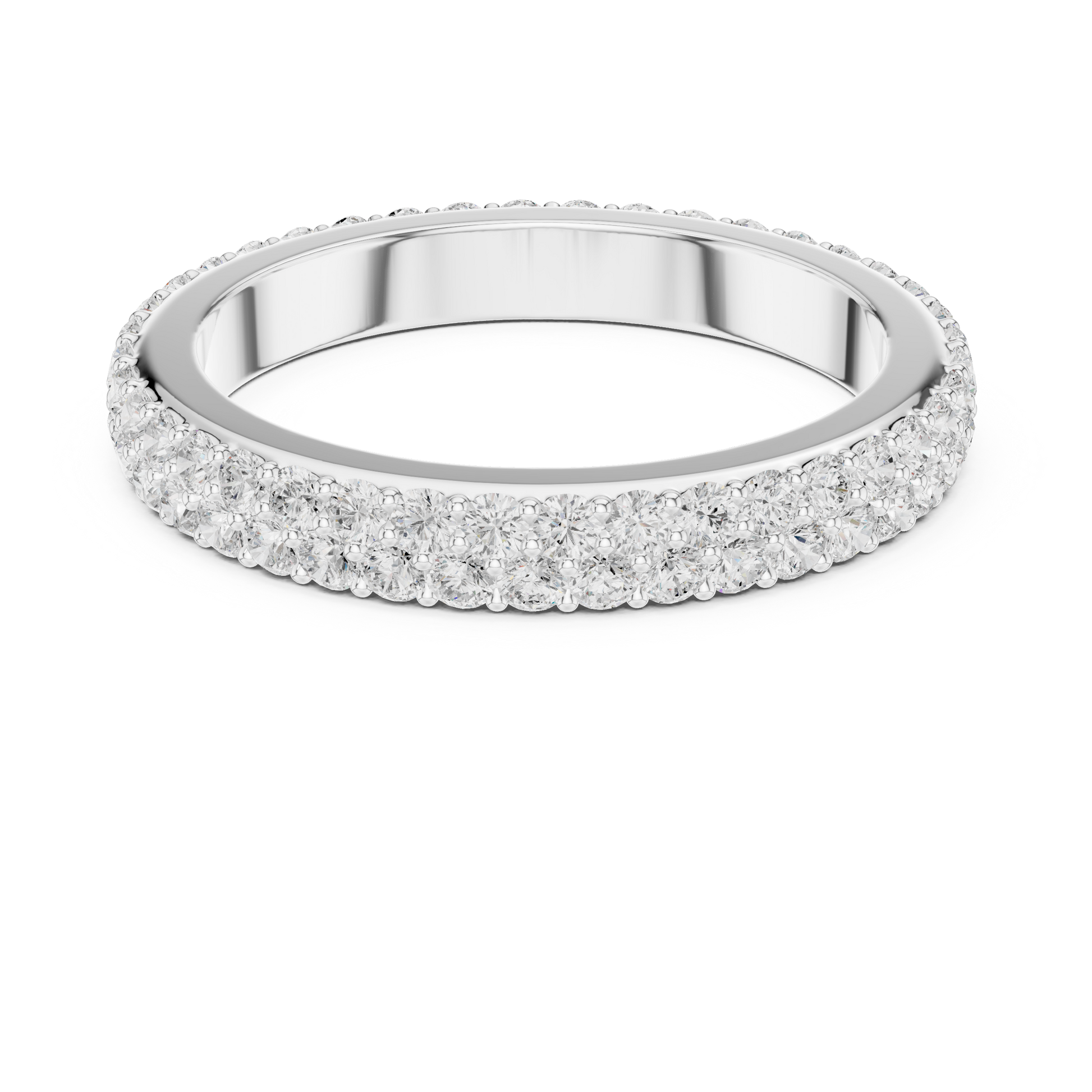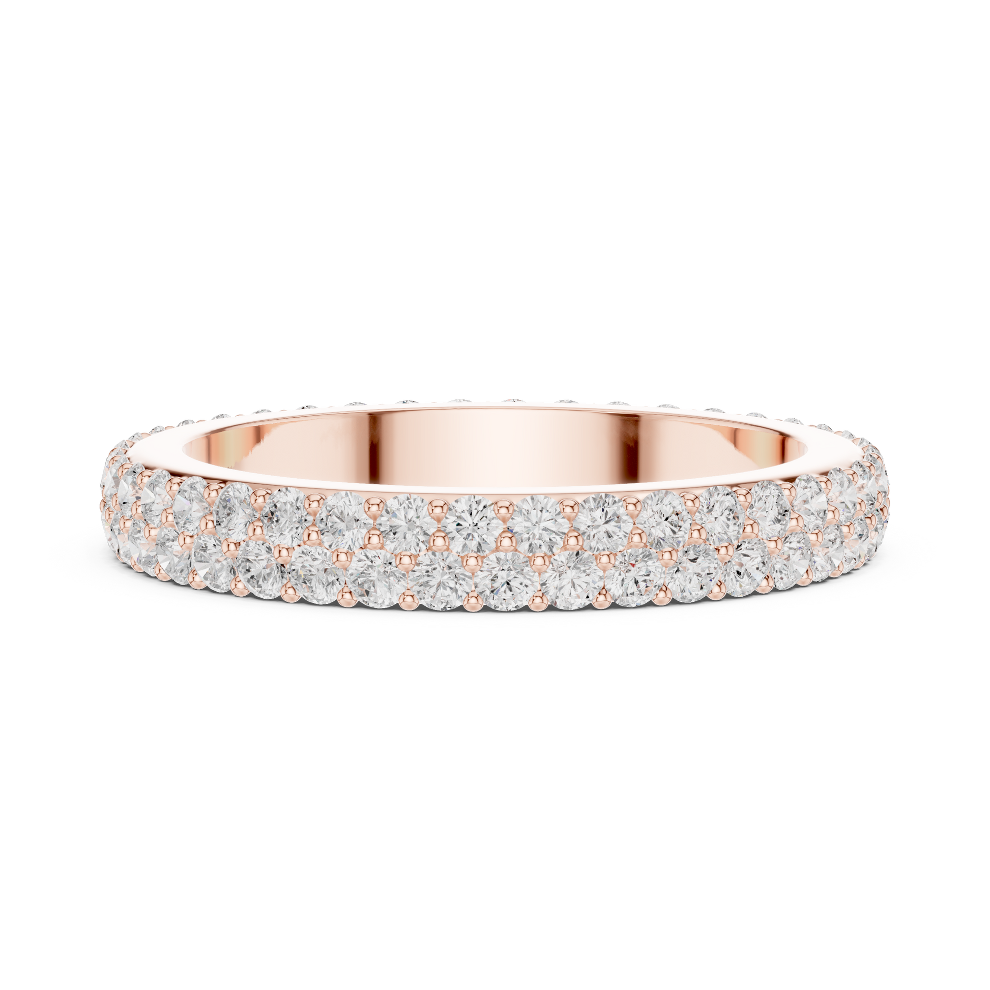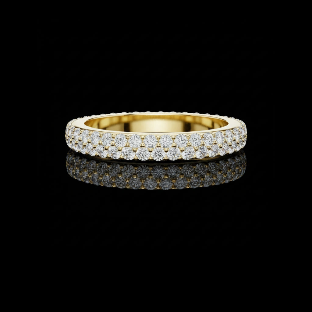 This stunning double-row diamond eternity band showcases exceptional brilliance, crafted in premium gold for a rich and timeless look. Each round-cut diamond is handset with precision, creating a fully iced-out sparkle that radiates luxury from every angle. Perfect as a wedding band, anniversary ring, or a statement piece, this design captures true elegance, shine, and premium craftsmanship, exclusively from Ivevar Luxury.