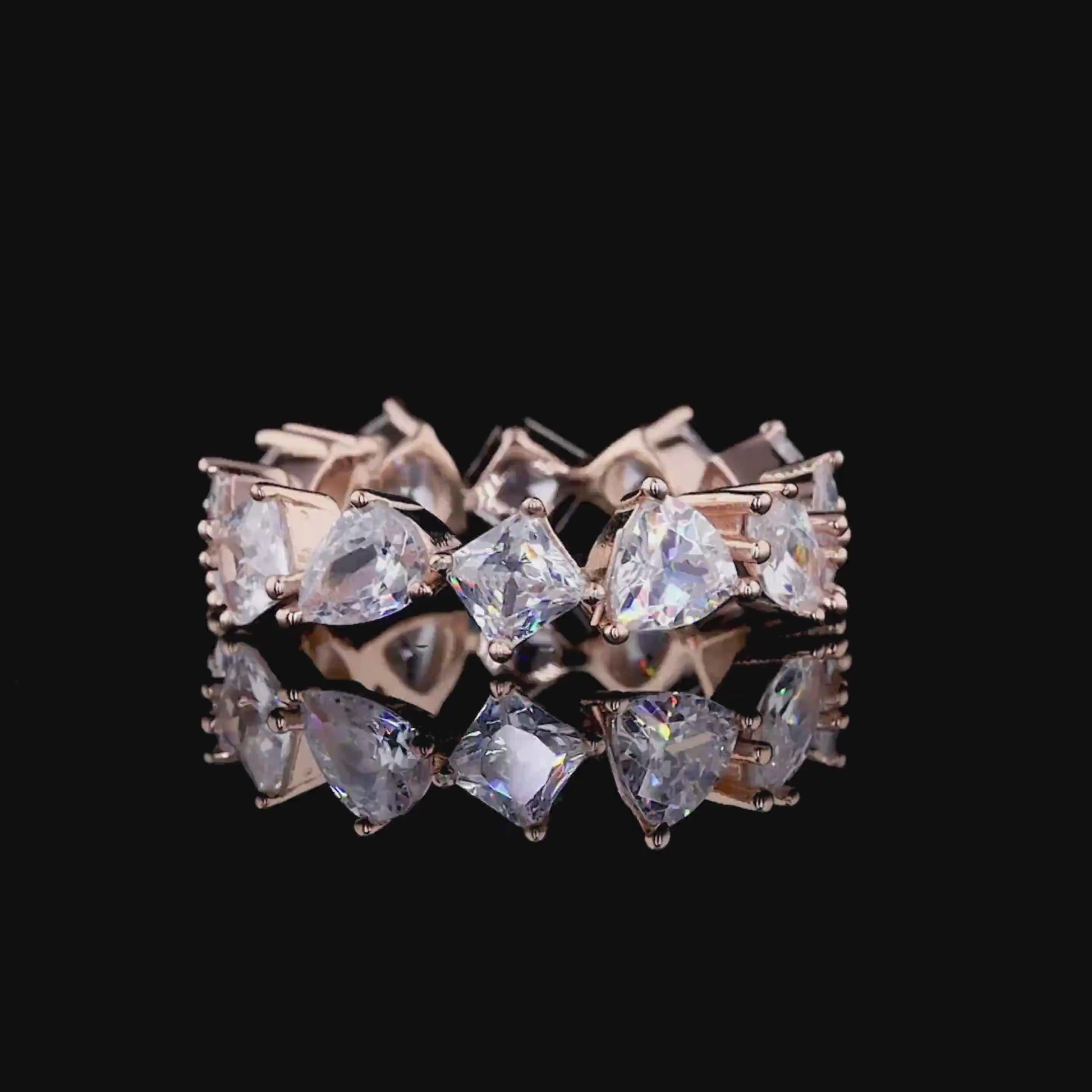 This stunning rose gold eternity ring features a continuous row of pear-cut and rectangular clear gemstones, meticulously set to maximize brilliance and sparkle. The luxurious rose gold band enhances the radiant clarity of each stone, creating a timeless piece perfect for special occasions or everyday elegance. Designed for those who appreciate sophisticated craftsmanship and refined beauty, this ring exudes both romance and modern charm.