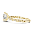Celebrate love with this enchanting heart-shaped diamond ring, crafted in warm gold. The brilliant heart-cut center stone is securely held by elegant prongs, while the band features a graceful twisted vine design accented with shimmering pave diamonds. Delicate yet eye-catching, this ring blends romance with modern craftsmanship, making it a perfect choice for proposals, anniversaries, or a meaningful gift that speaks straight from the heart.