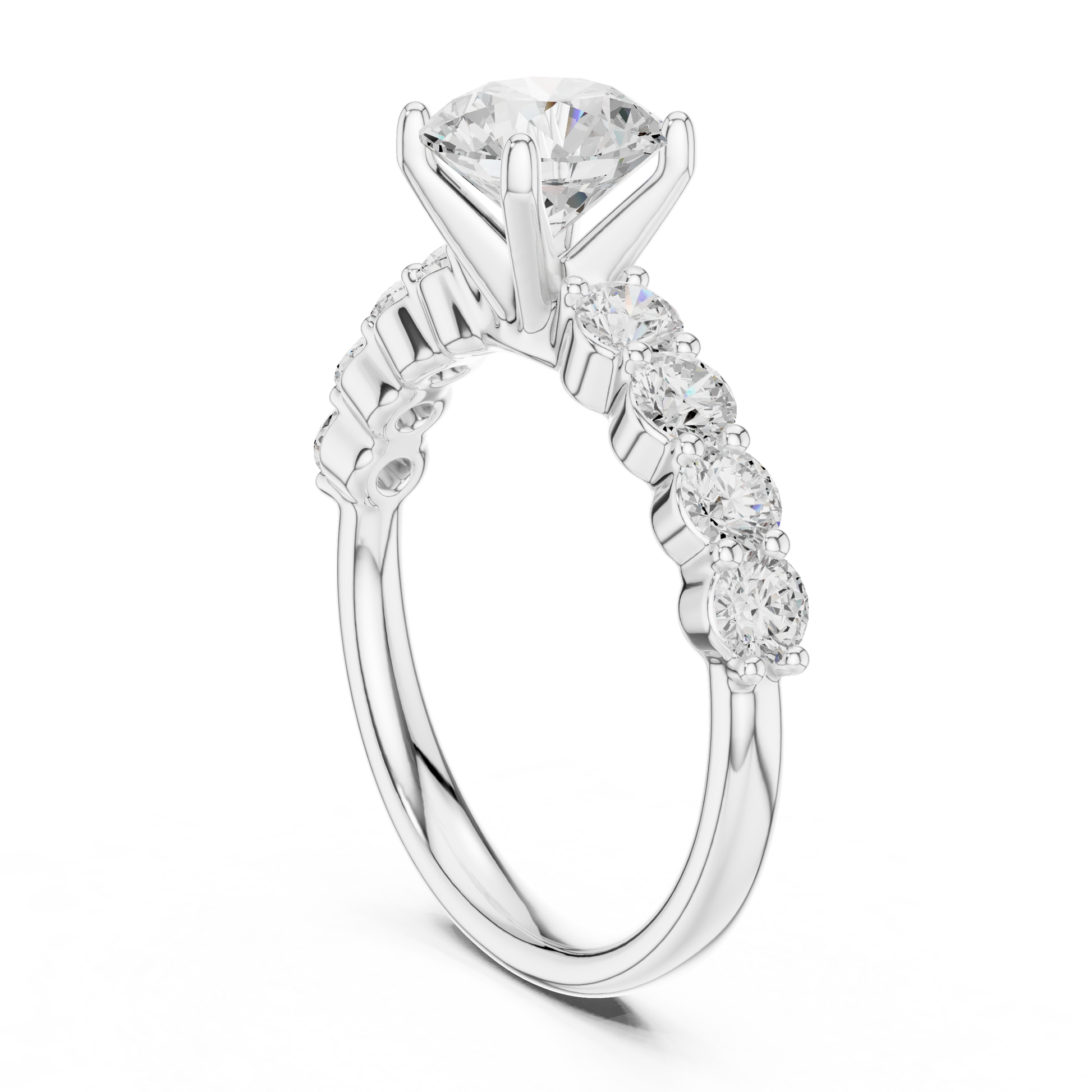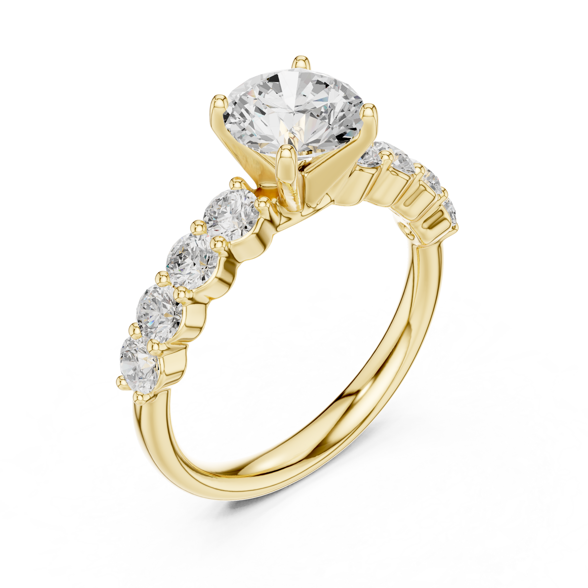 Experience the timeless brilliance of Ivevar Luxury with this exquisite engagement ring, featuring a radiant round-cut solitaire diamond that captures unmatched sparkle. The polished gold band is adorned with graduated side diamonds, creating a seamless flow of brilliance that enhances the center stone’s fire and beauty. Expertly crafted with precision and elegance, this ring blends classic charm with modern luxury.