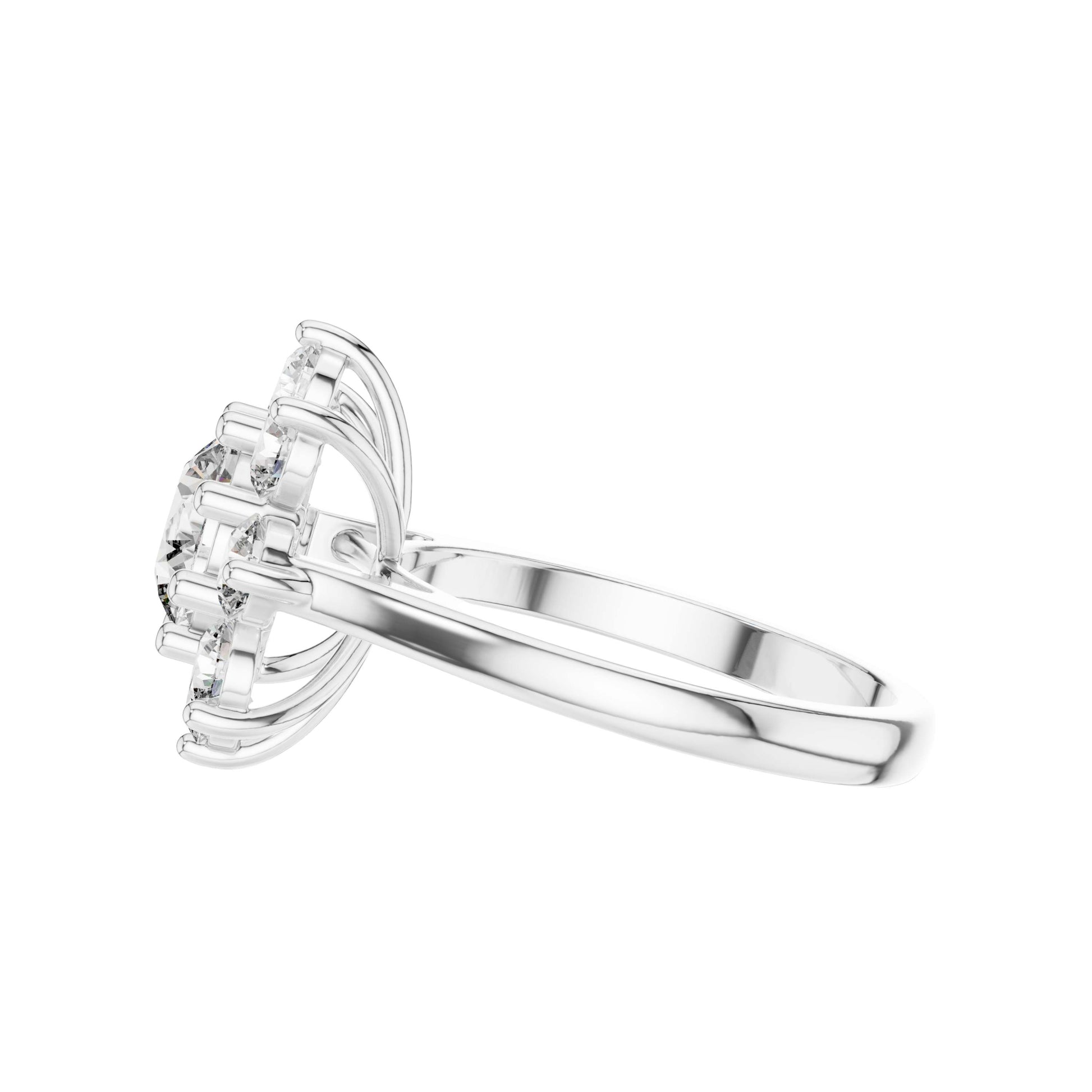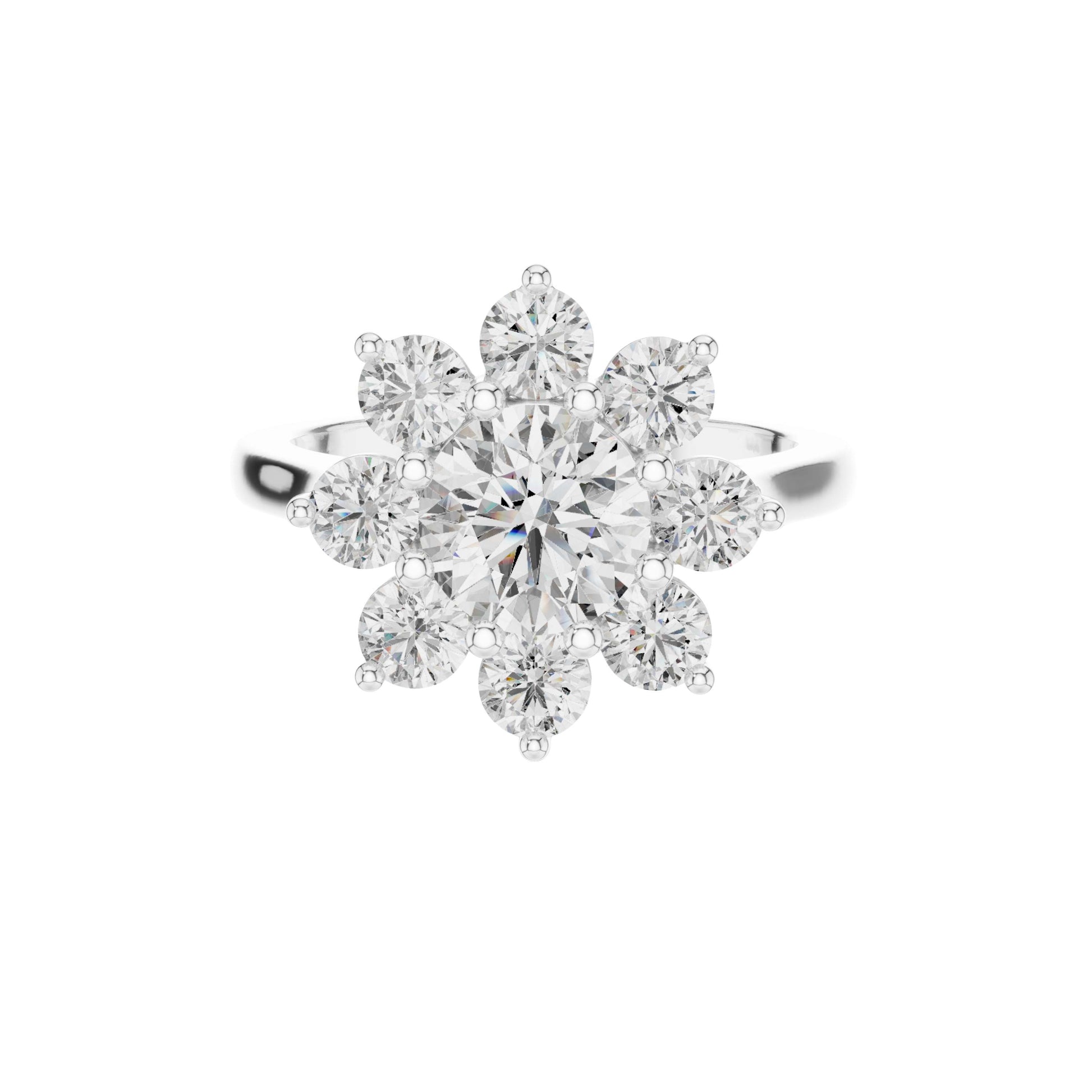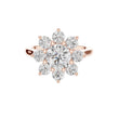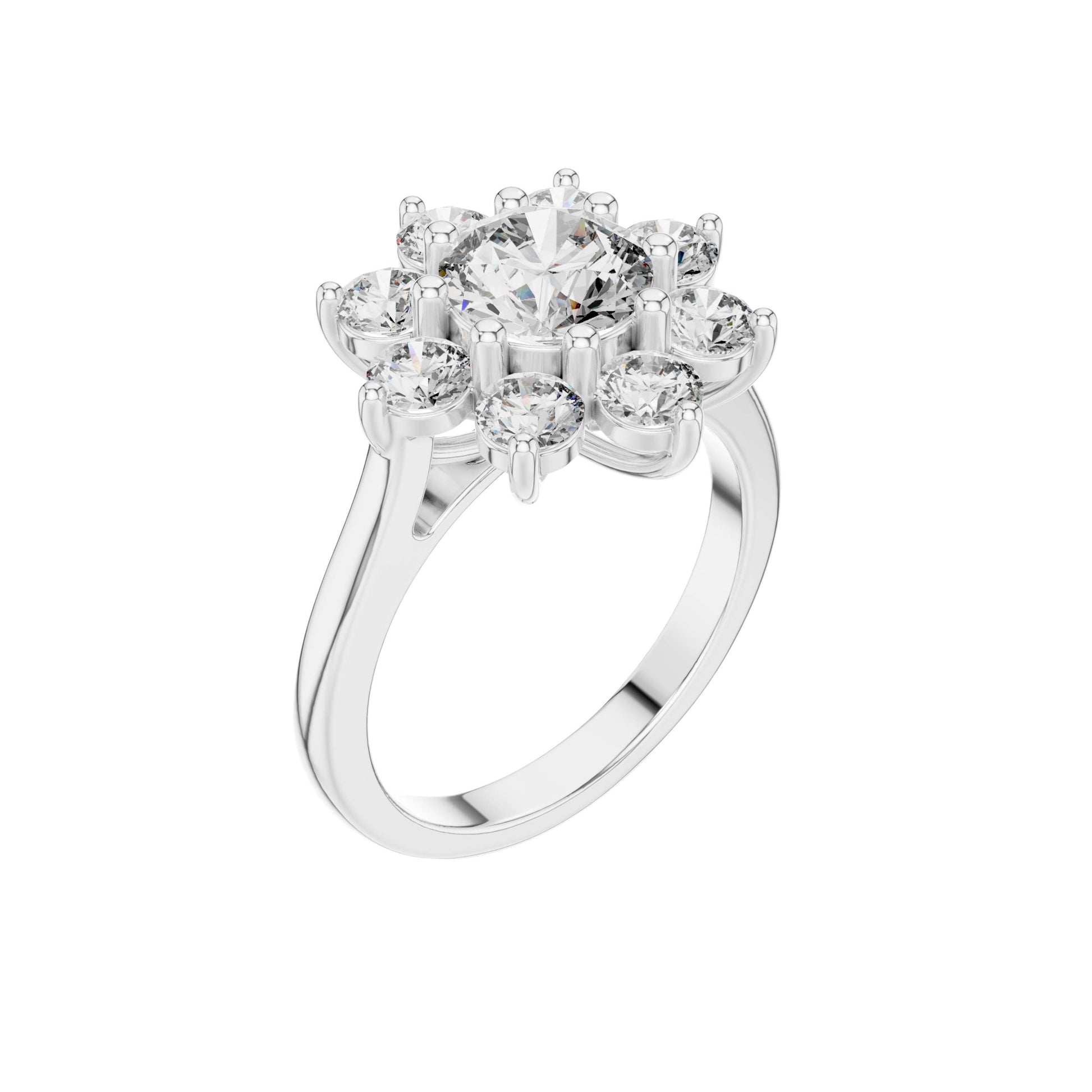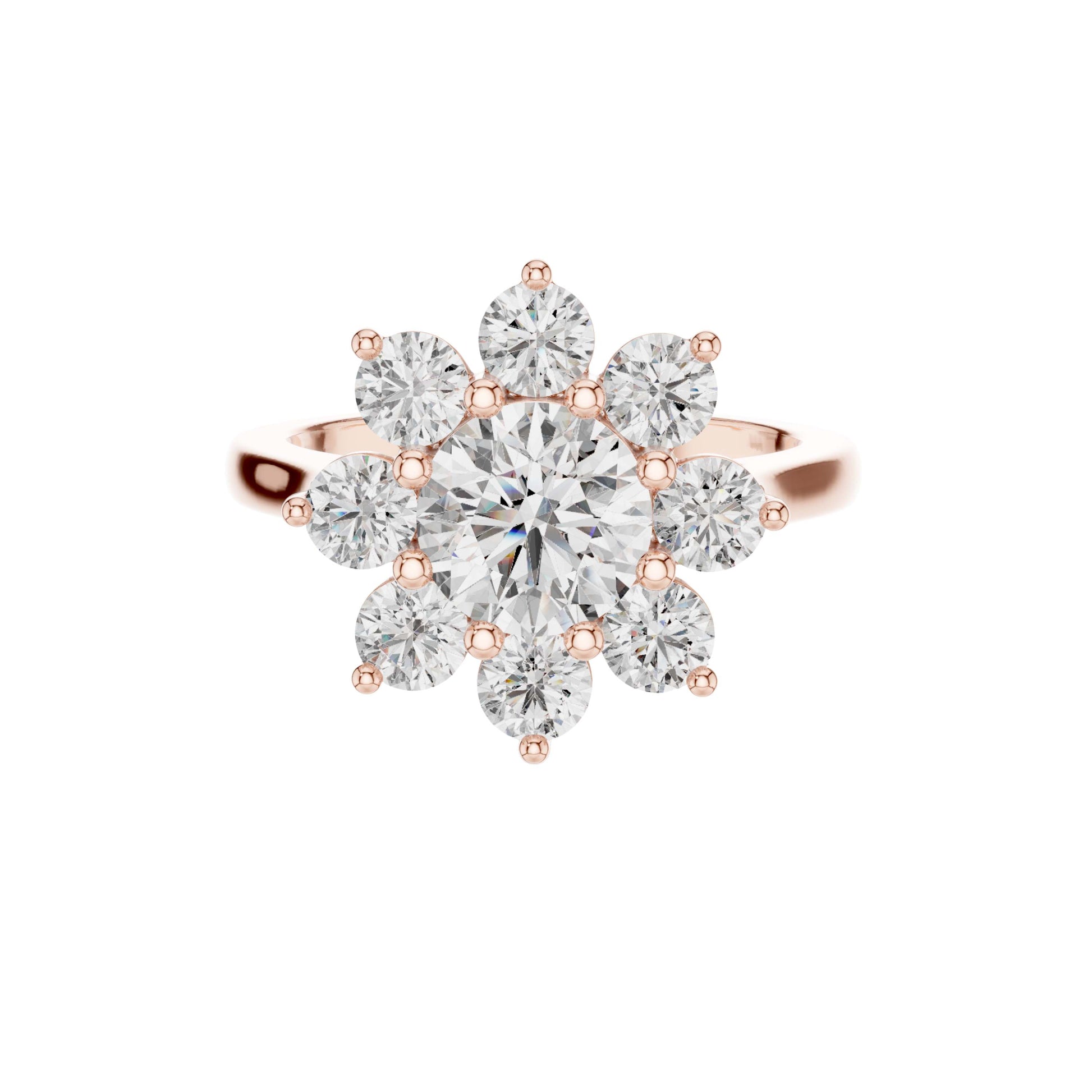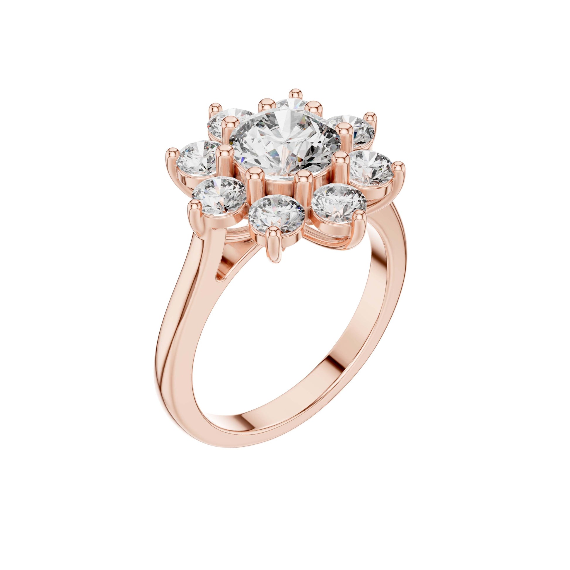 This exquisite gold diamond ring showcases a radiant floral-inspired halo design, featuring a brilliant round center diamond surrounded by a symmetrical cluster of sparkling round-cut diamonds. Each stone is meticulously set in polished yellow gold prongs, enhancing brilliance while creating a graceful flower silhouette that catches the light from every angle. Elegant yet eye-catching, this ring blends timeless craftsmanship with modern sophistication, making it a stunning choice for special occasions, milestone celebrations, or a distinctive alternative engagement ring.