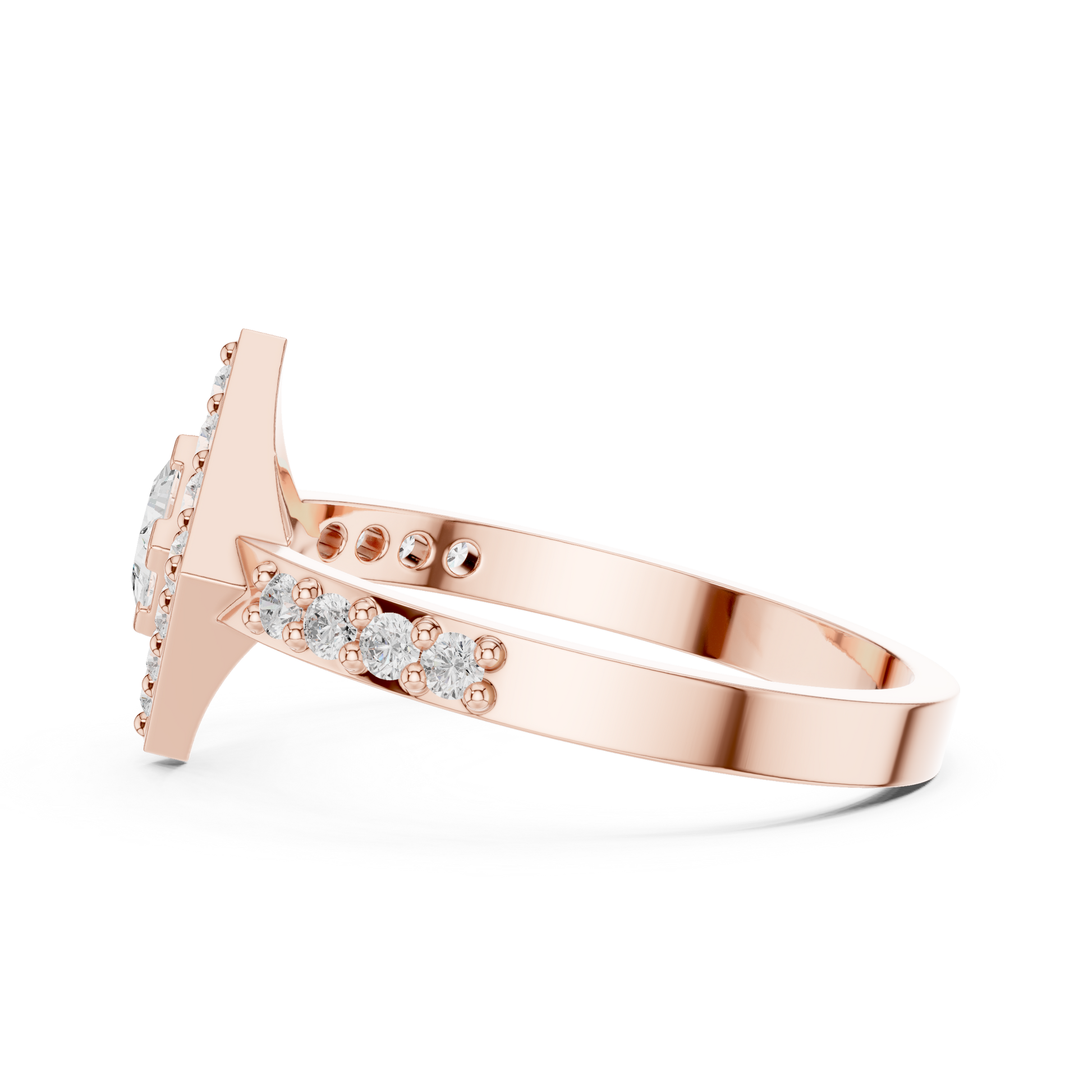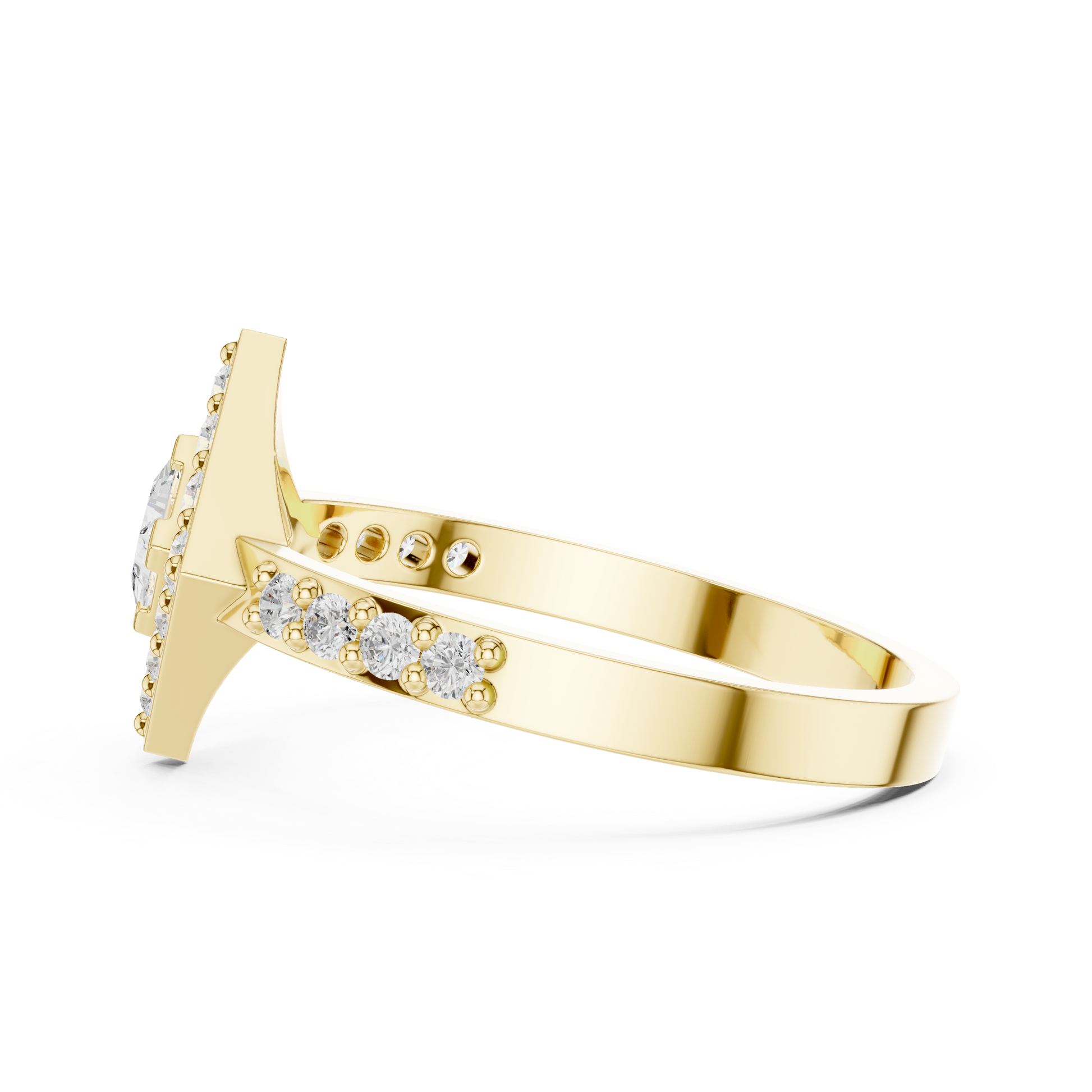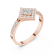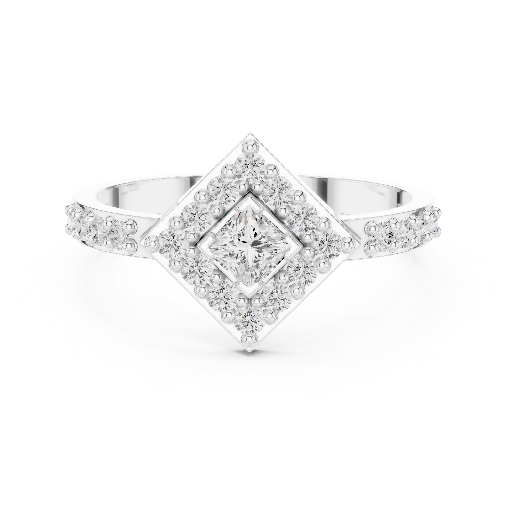 This exquisite ring features a brilliant princess-cut center stone framed within a striking square halo of radiant round diamonds. Set in polished gold, the design blends sharp geometry with soft sparkle, creating an elegant balance of modern and timeless beauty. The pavé-set band enhances its brilliance, making this ring a captivating statement piece perfect for celebrations, special moments, or everyday luxury.
