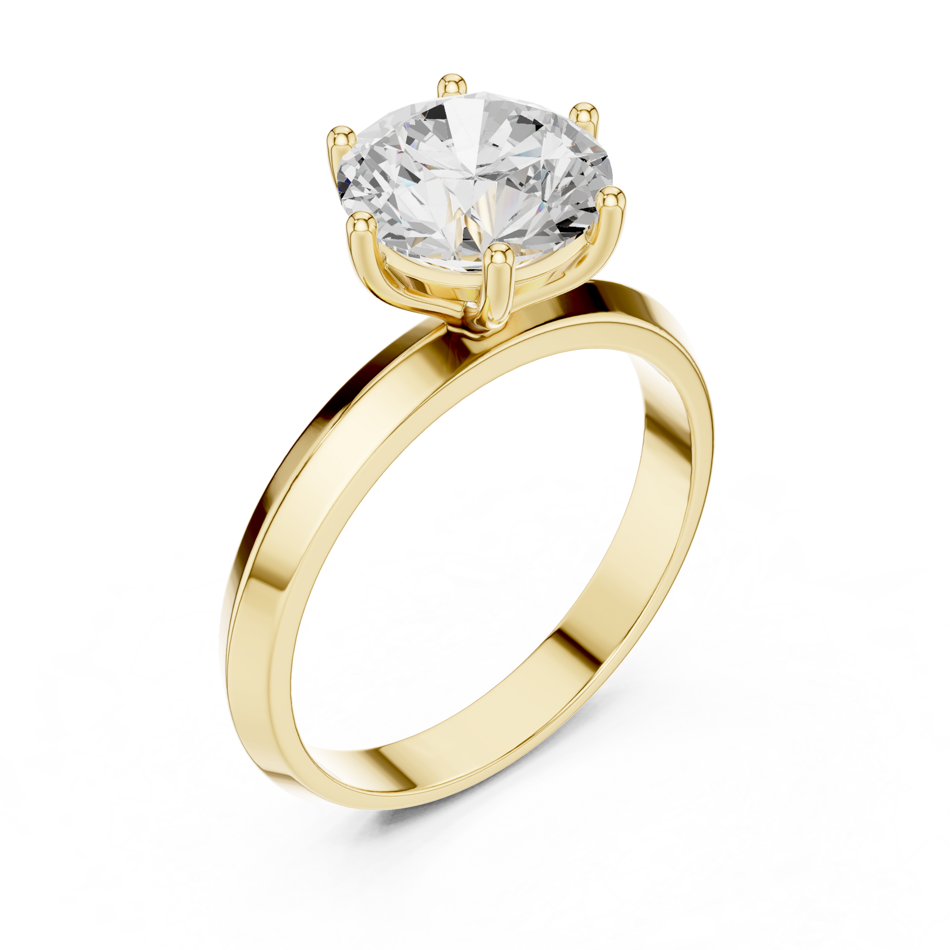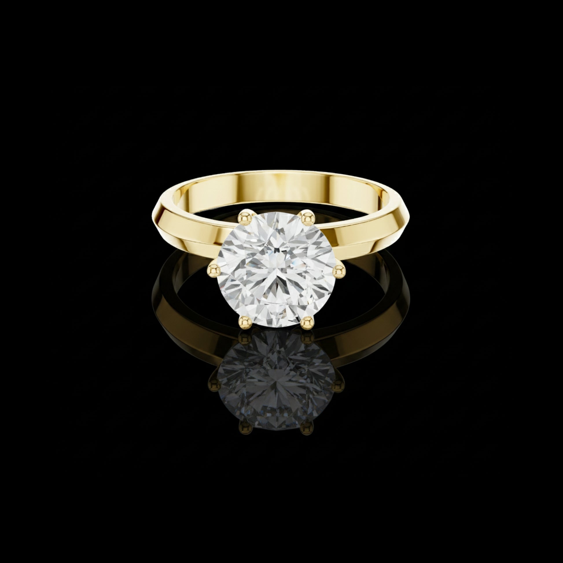 This ring features a brilliant round-cut diamond secured in an elegant 6-prong setting, crafted in polished gold. The classic solitaire design highlights the diamond’s fire and brilliance, giving it a bold, luxurious presence. Perfect for engagements, anniversaries, or everyday elegance, this timeless piece blends sophistication with simplicity. A true symbol of love, purity, and enduring beauty.