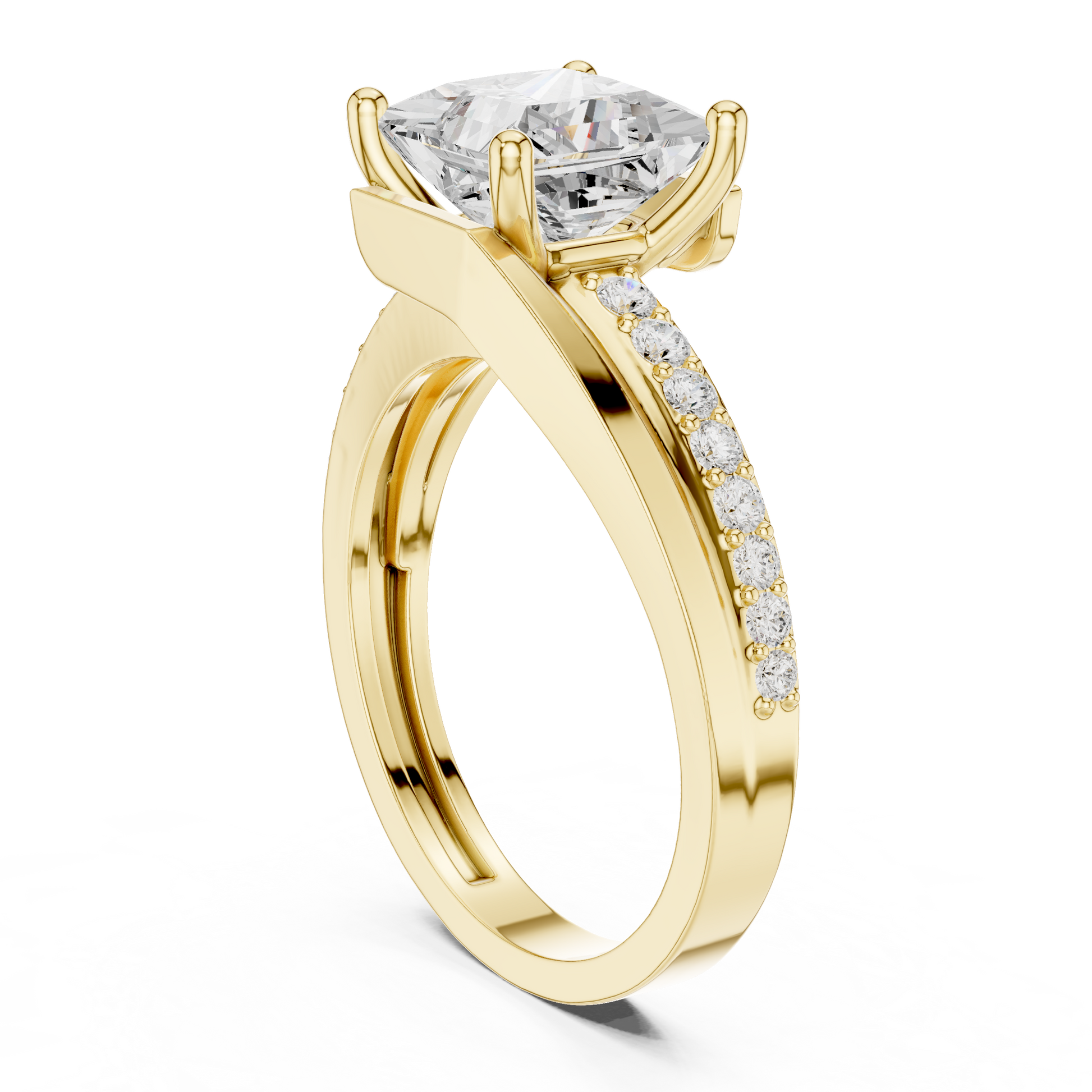 The Aurora Crest Solitaire Ring features a striking princess-cut center stone set in polished gold, enhanced by a refined split band accented with shimmering pave details. Its balanced silhouette combines modern structure with timeless elegance, making it ideal for engagements, anniversaries, or elevated everyday wear. Designed to maximize brilliance and comfort, this ring delivers a bold yet graceful presence from every angle.