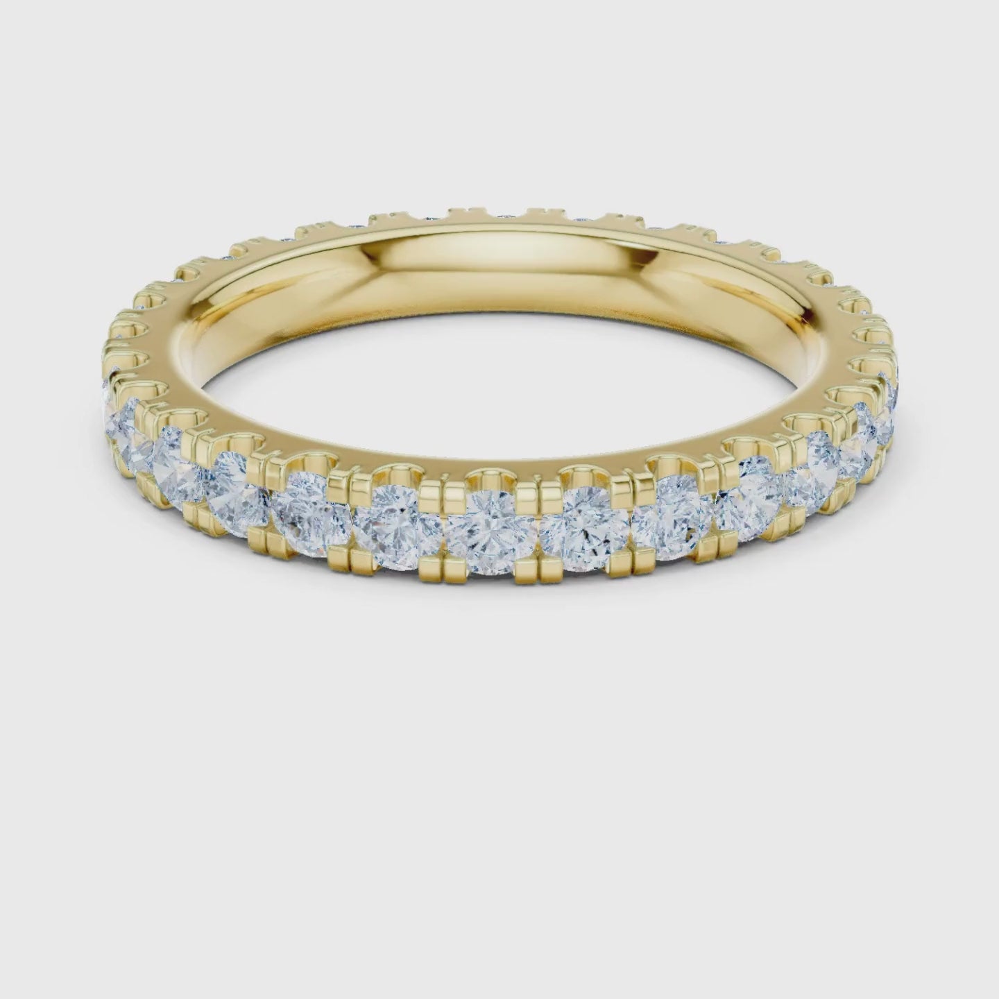 This exquisite eternity band from Ivevar Luxury showcases a full circle of brilliant round-cut diamonds, each meticulously set in a scalloped prong design that maximizes sparkle from every angle. Crafted in polished gold, this ring offers a perfect blend of refined elegance and modern craftsmanship. Its continuous diamond layout symbolizes unending love, making it an ideal choice for weddings, anniversaries, or luxury stacking.