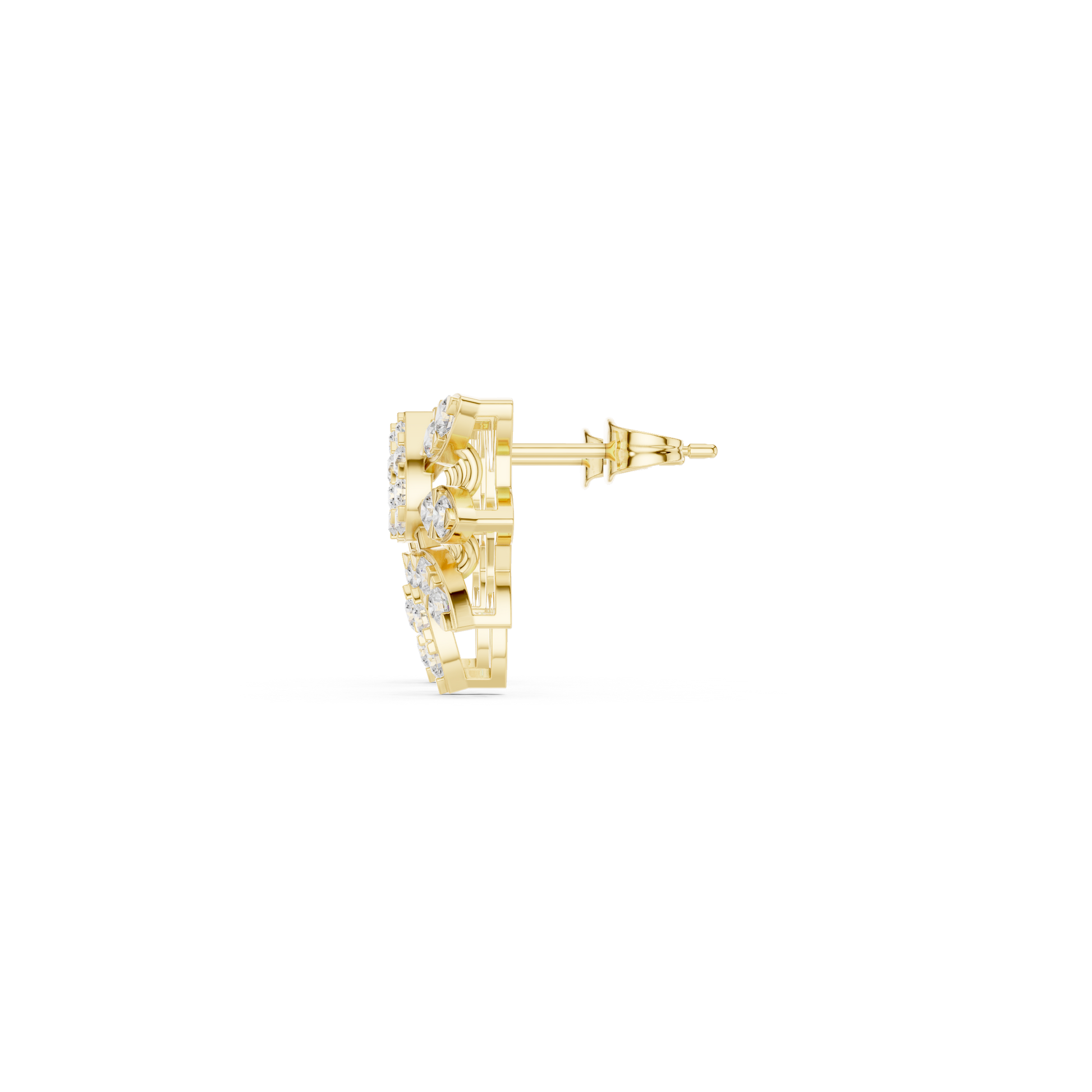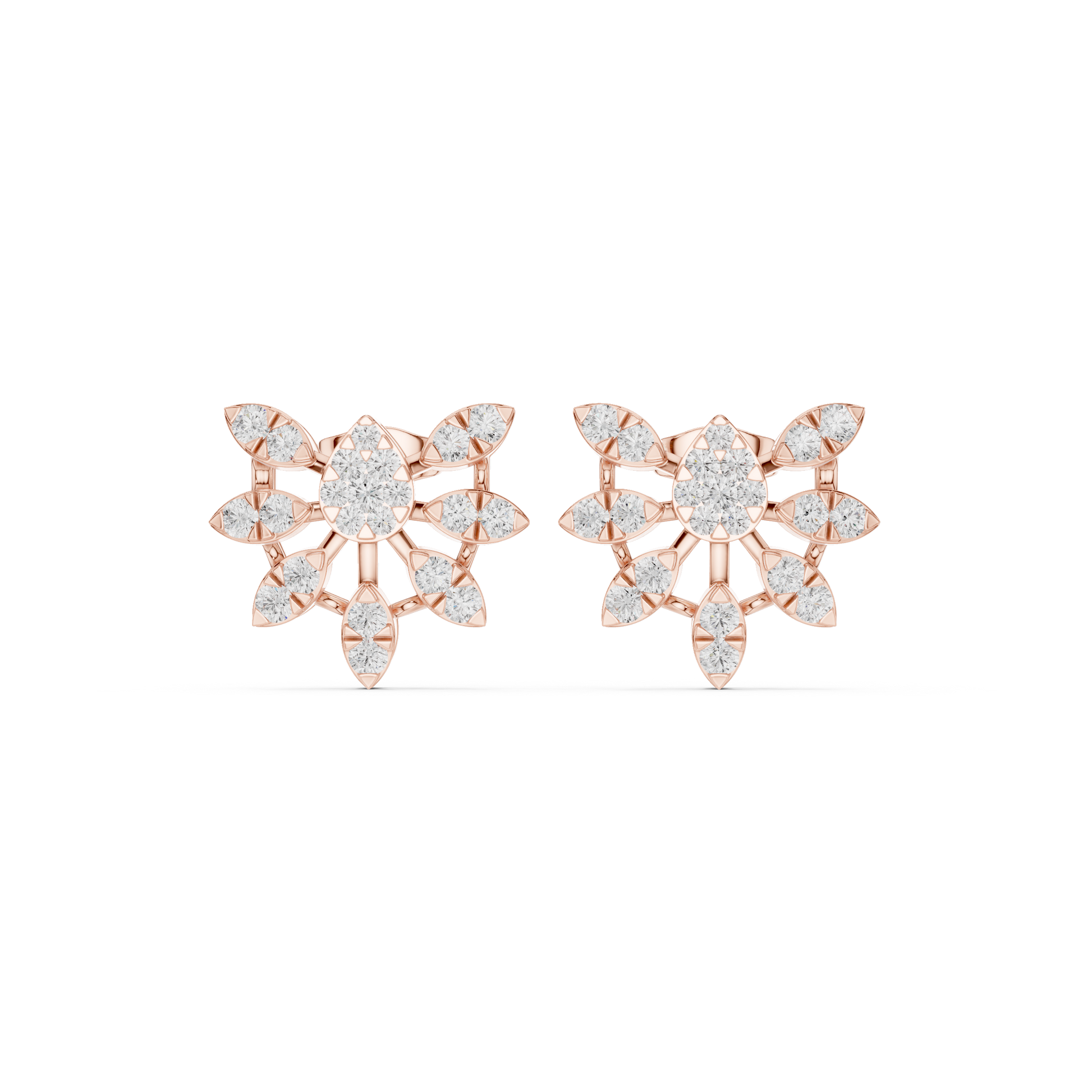 Inspired by nature’s elegance, these floral diamond stud earrings feature a brilliant round center diamond surrounded by round-cut diamonds arranged like delicate petals. Crafted in polished yellow gold, the open floral framework enhances light reflection, creating exceptional sparkle from every angle. Perfect for everyday luxury or special occasions, these studs offer a graceful blend of classic charm and modern floral artistry—ideal for gifting or elevating your personal jewelry collection.