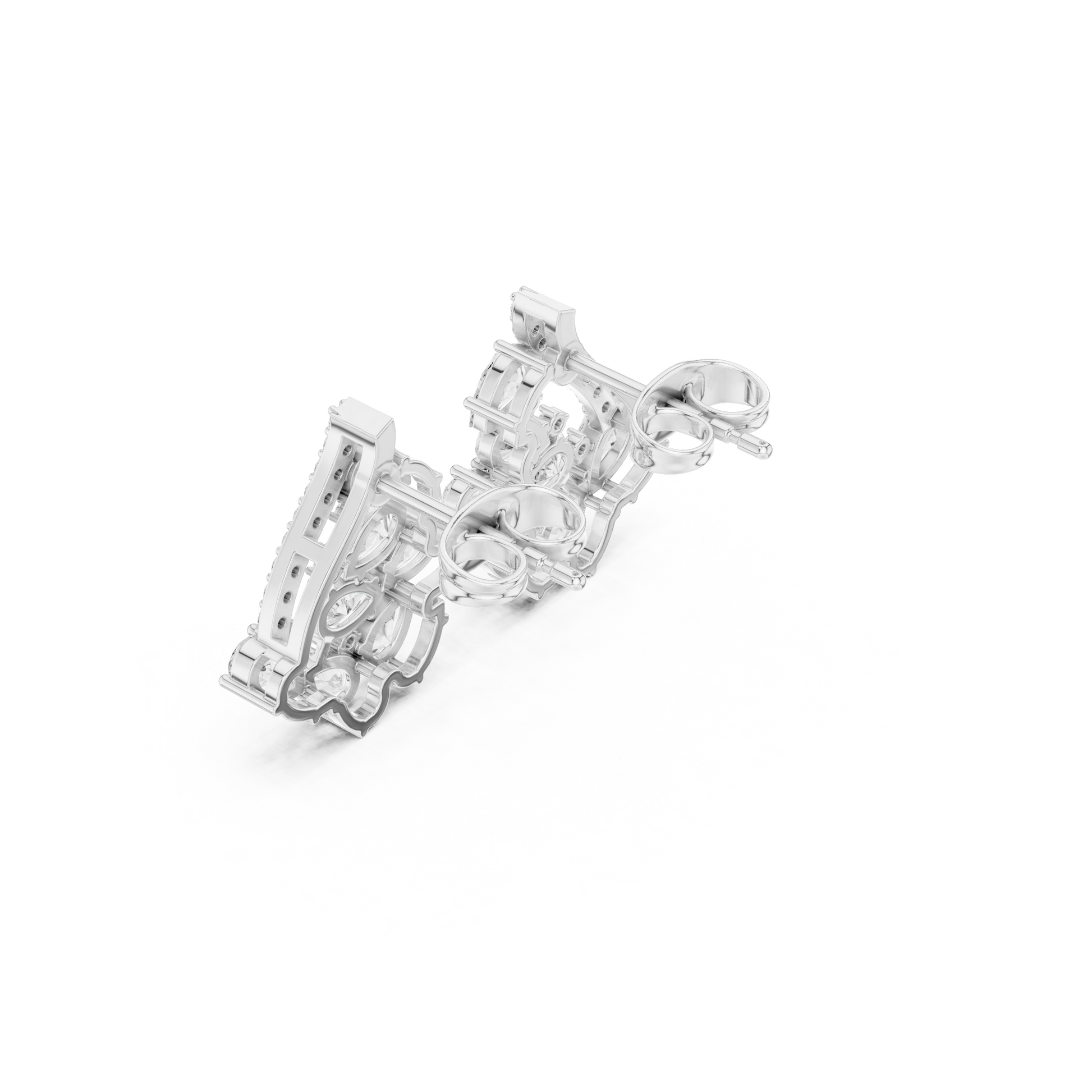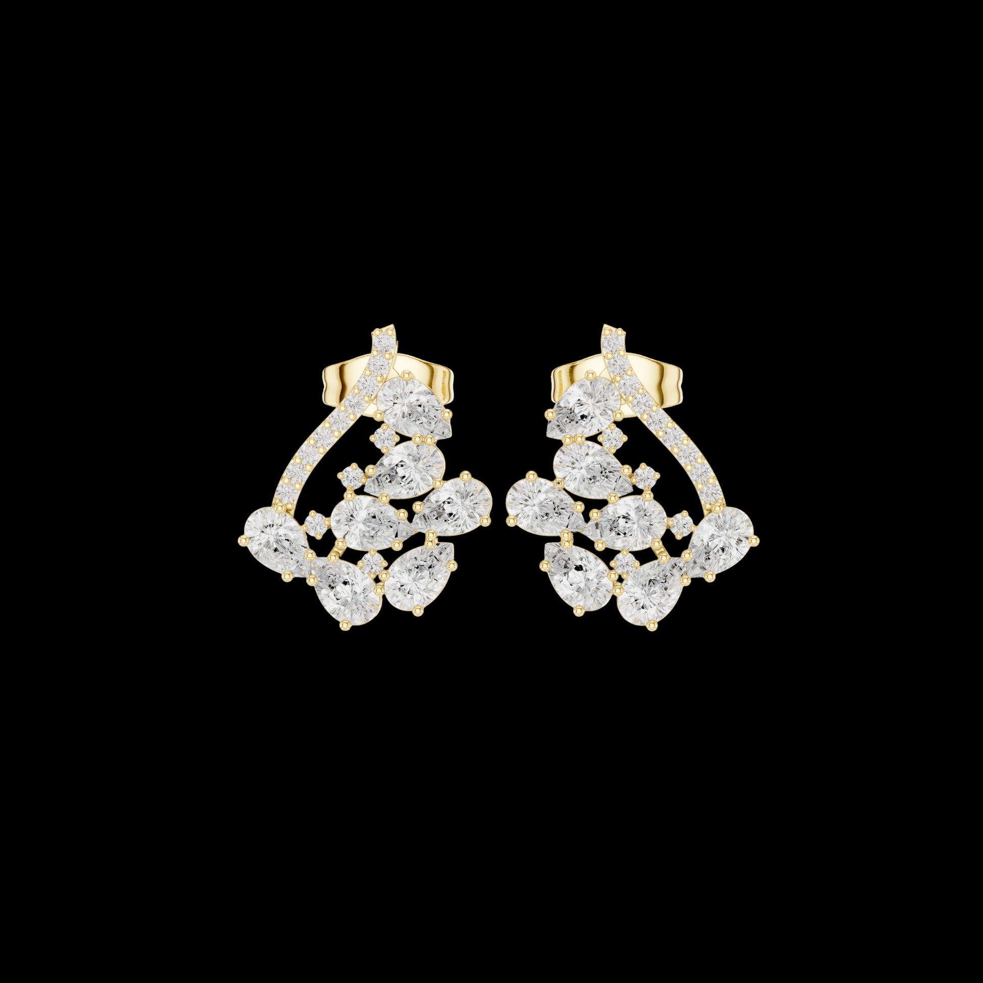 These beautiful stud earrings showcase a charming floral motif crafted in a radiant gold-tone finish. Each earring is adorned with carefully placed diamond-like stones that form a brilliant flower cluster, creating a look of grace and refinement. Perfect for daily wear, special occasions, or wedding functions, these studs offer a balance of classic elegance and modern sparkle. Their compact design ensures comfort, while the shimmering stones add a touch of luxury to any outfit.
