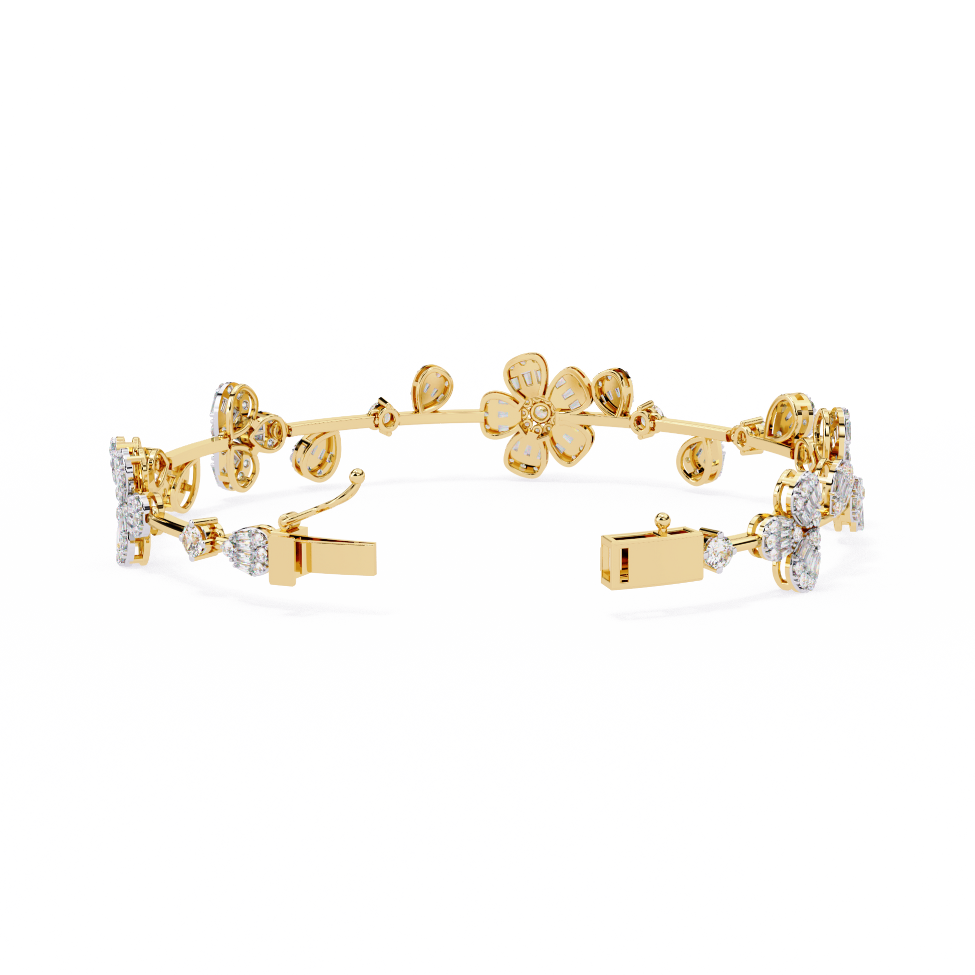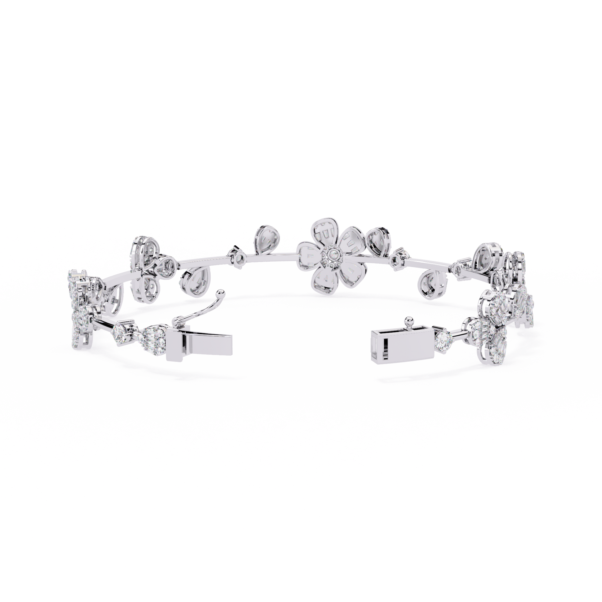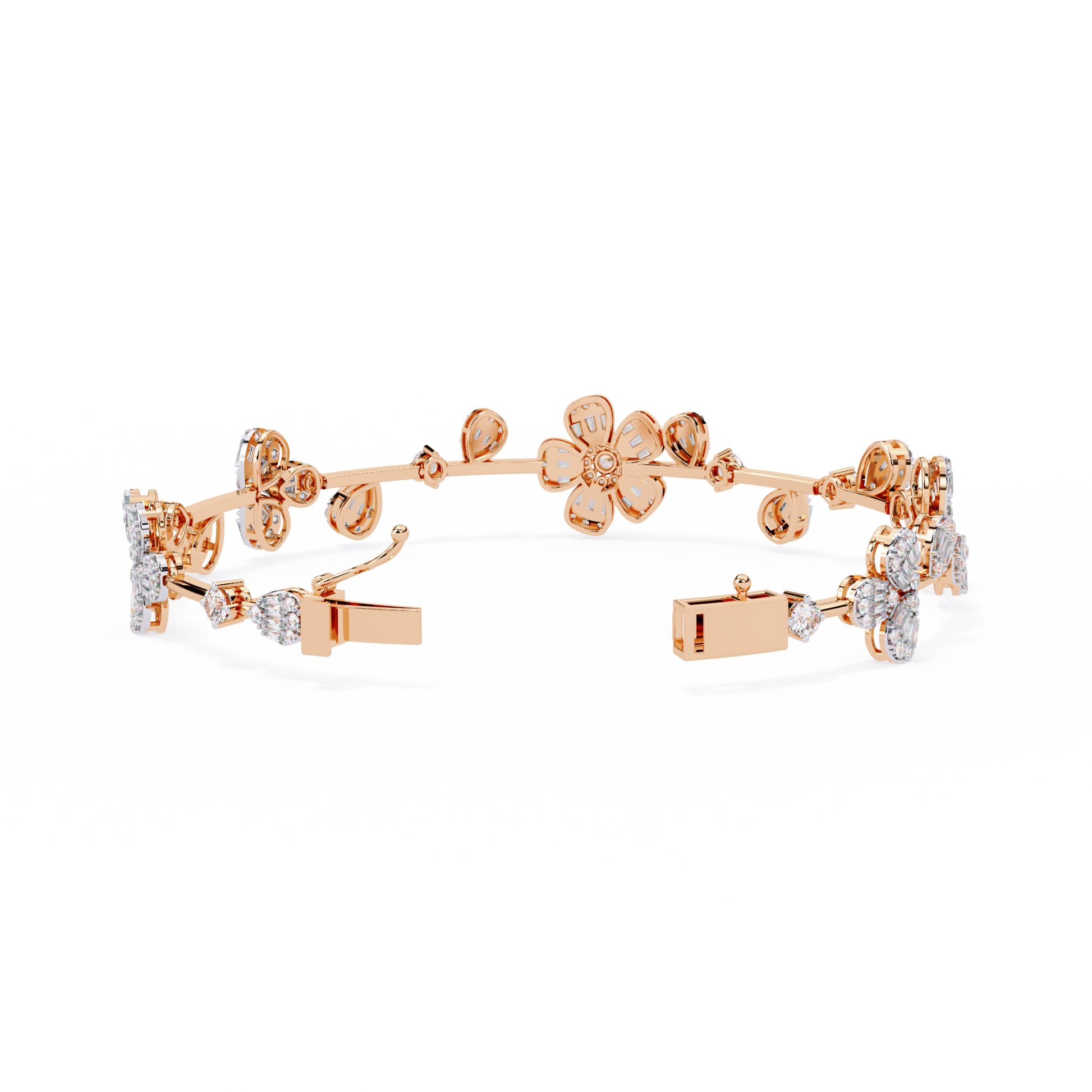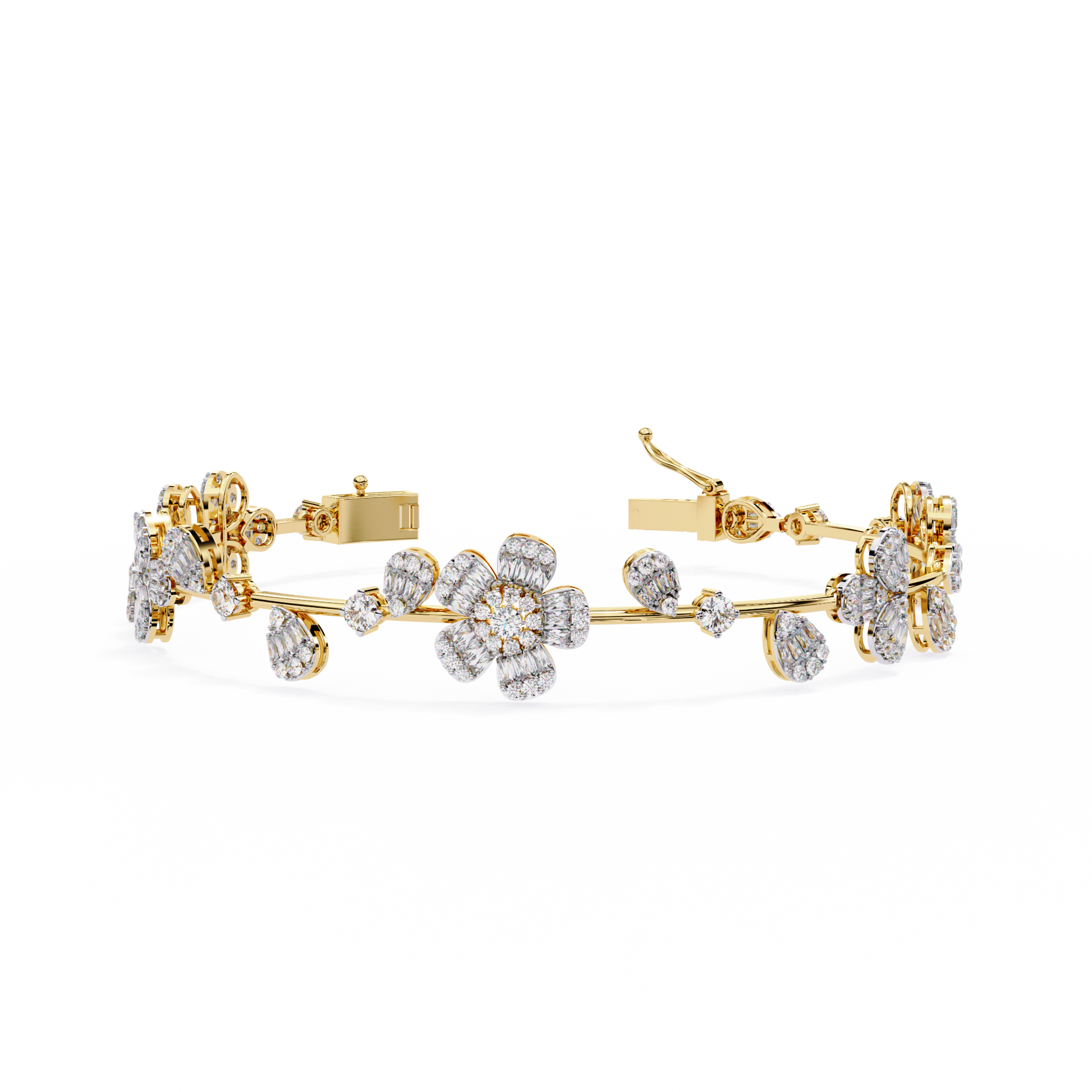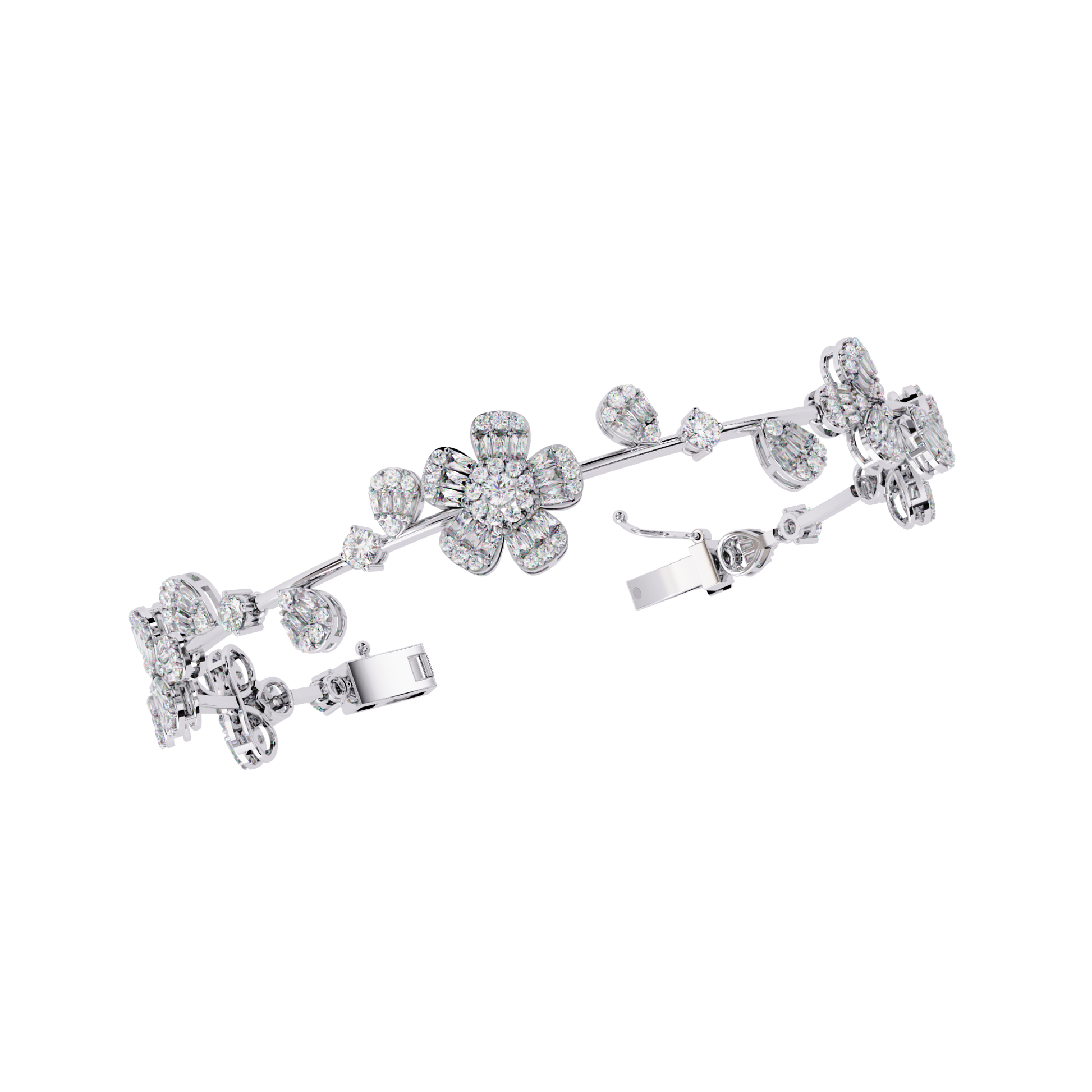 1.34 CT Floral Diamond Bracelet in Moissanite Diamond with Clustered Petal Baguette & Round Cut Accents Design