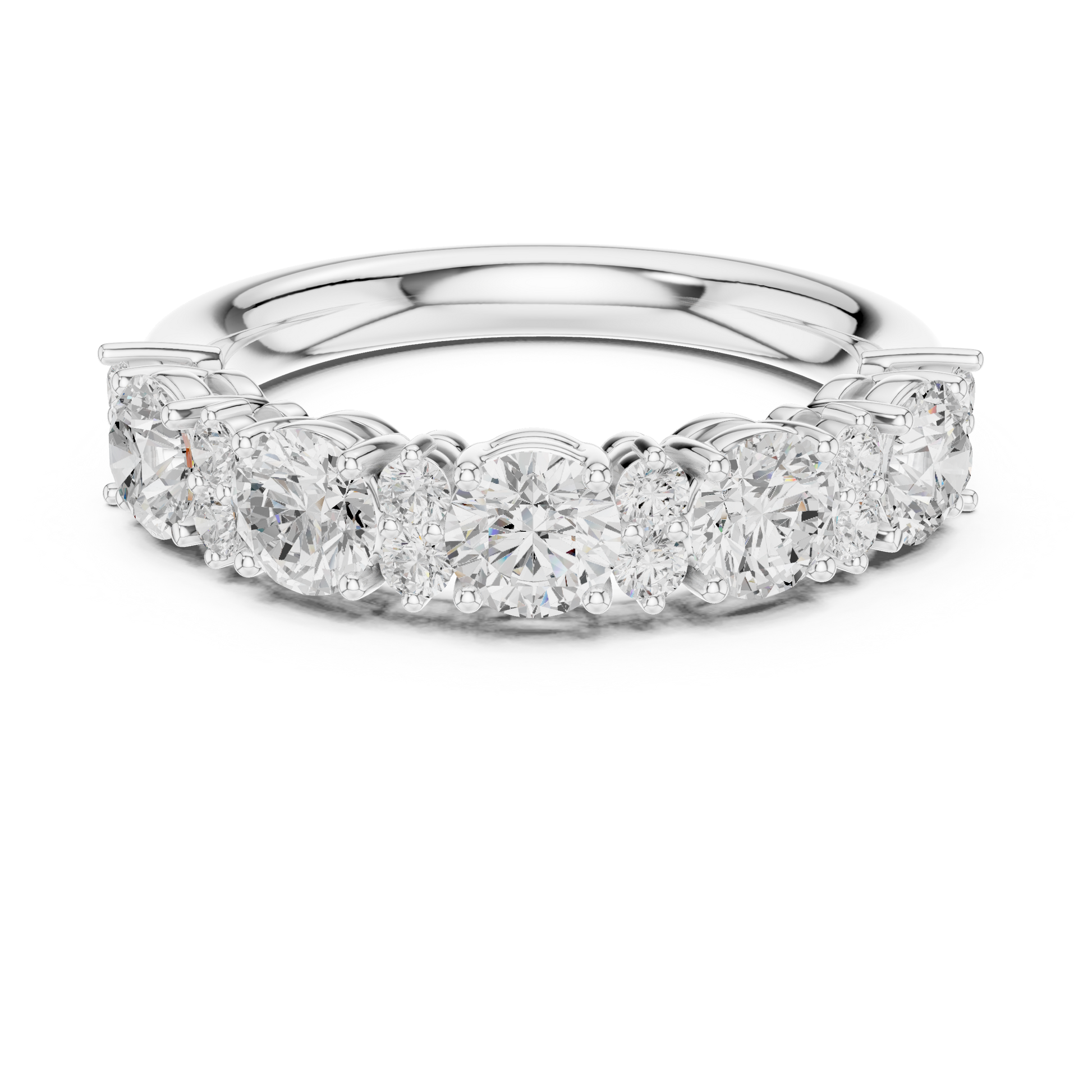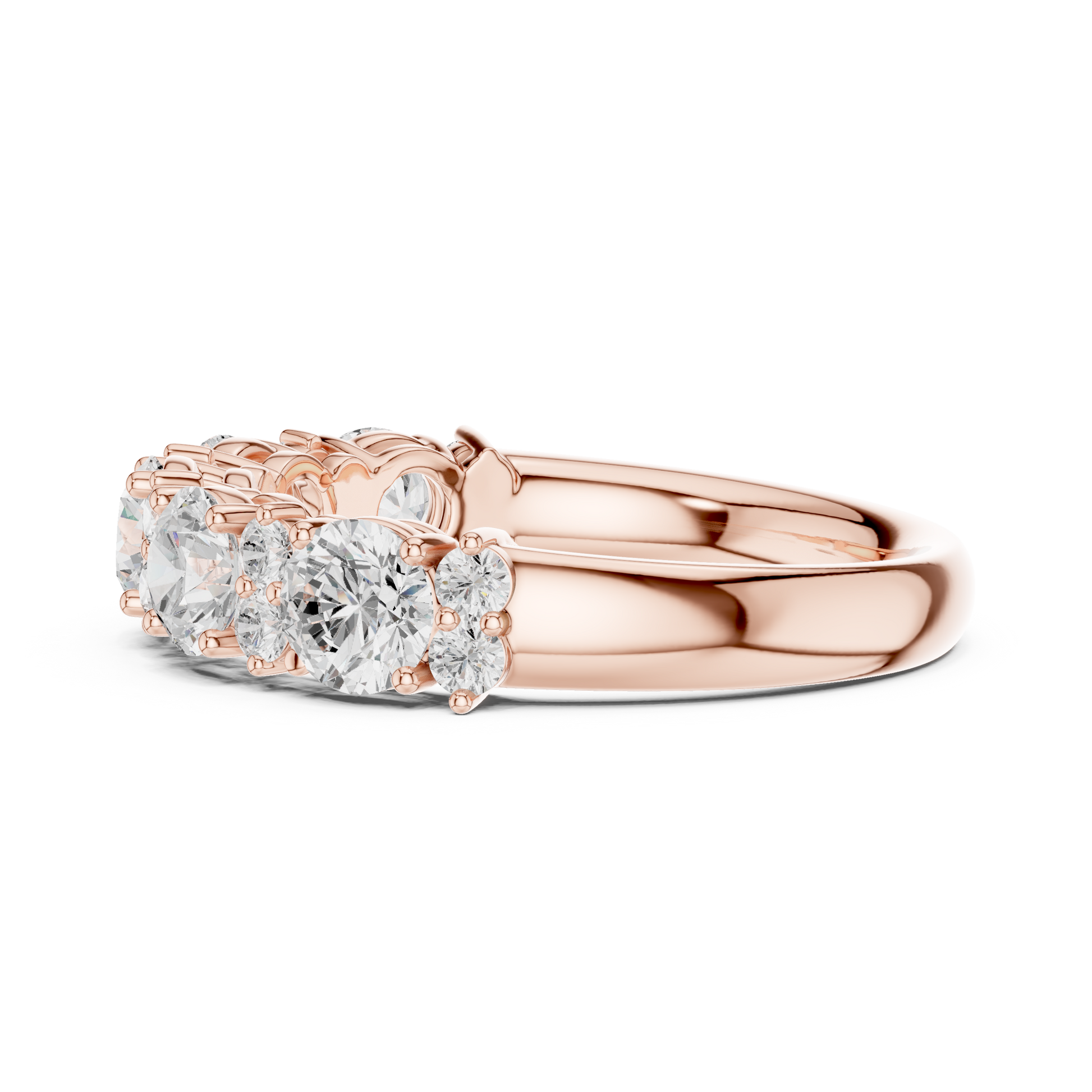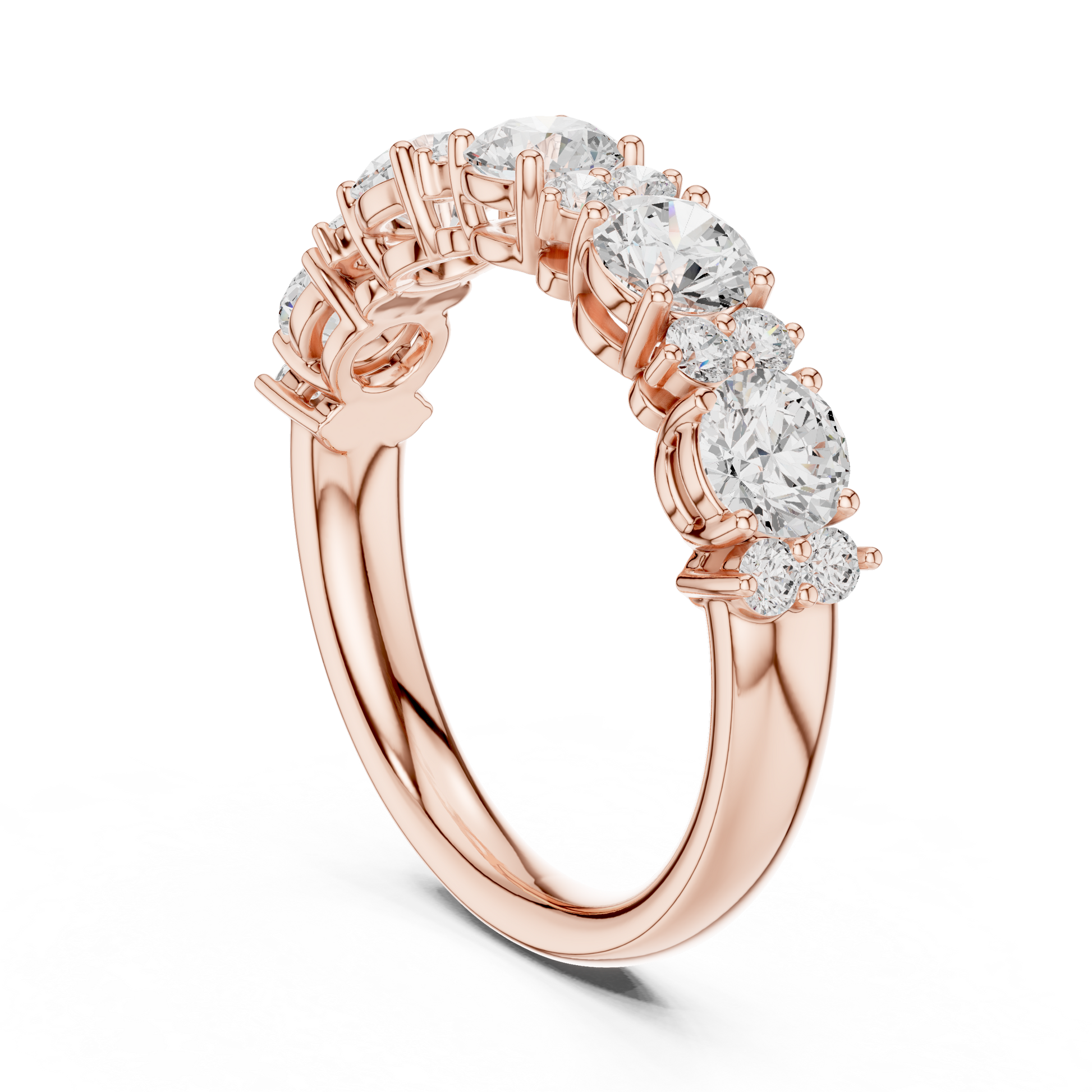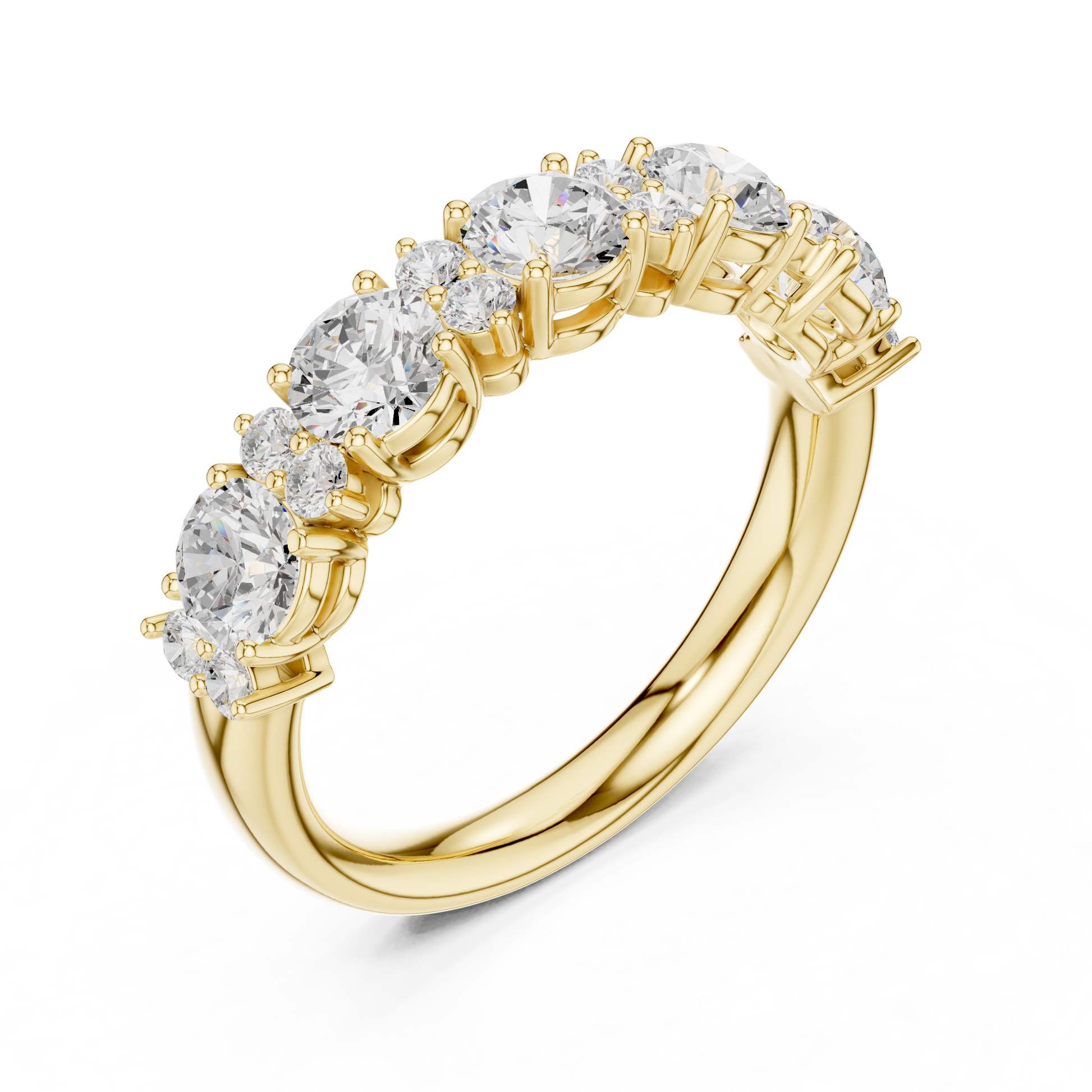 This dazzling diamond band features a stunning row of brilliant round-cut diamonds arranged in a beautiful graduated pattern. Crafted in polished gold, the ring blends timeless elegance with luxurious sparkle. Each diamond is perfectly set to maximize brilliance, making it an ideal choice for anniversaries, milestone celebrations, or as a glamorous everyday statement. A refined and radiant piece that elevates any jewelry collection.
