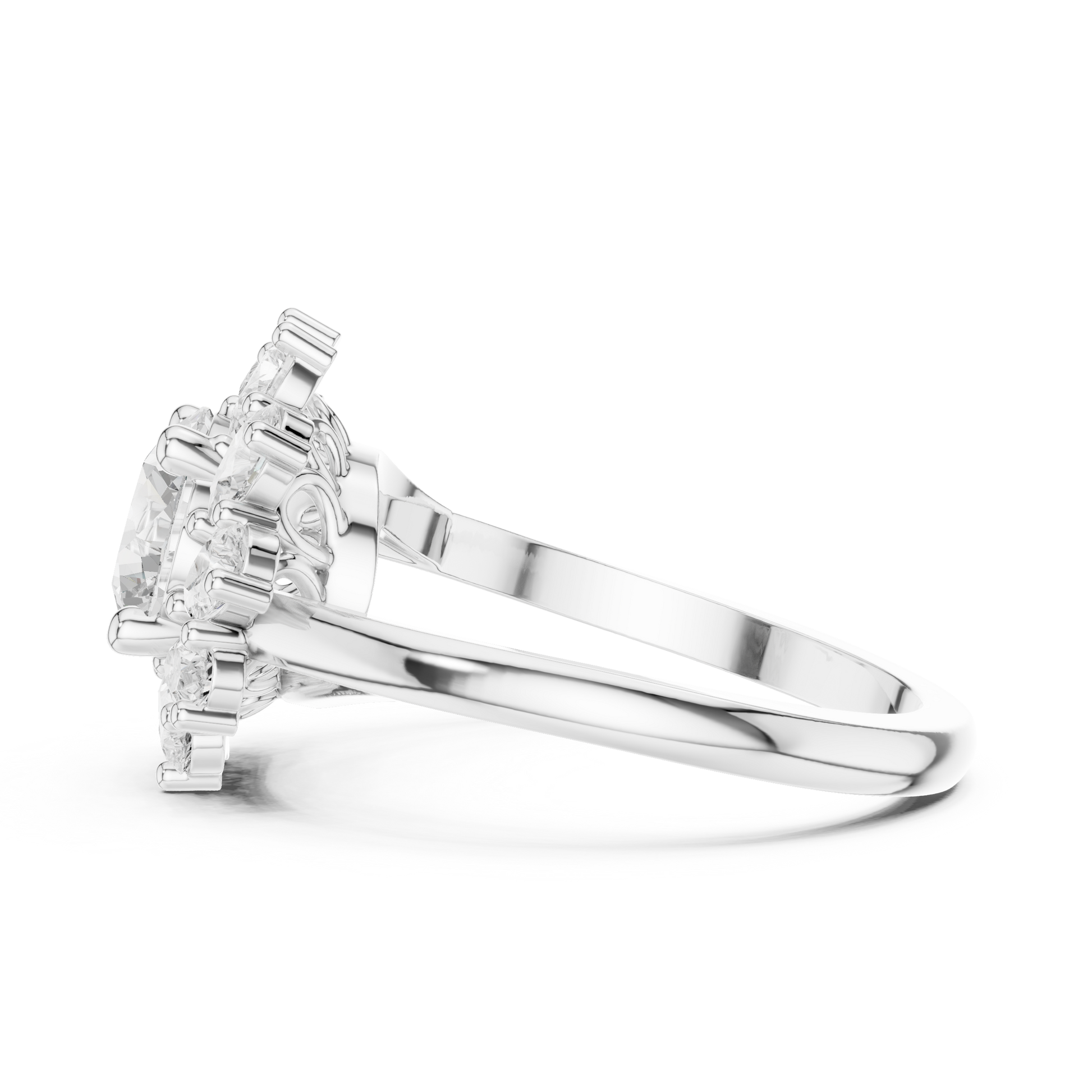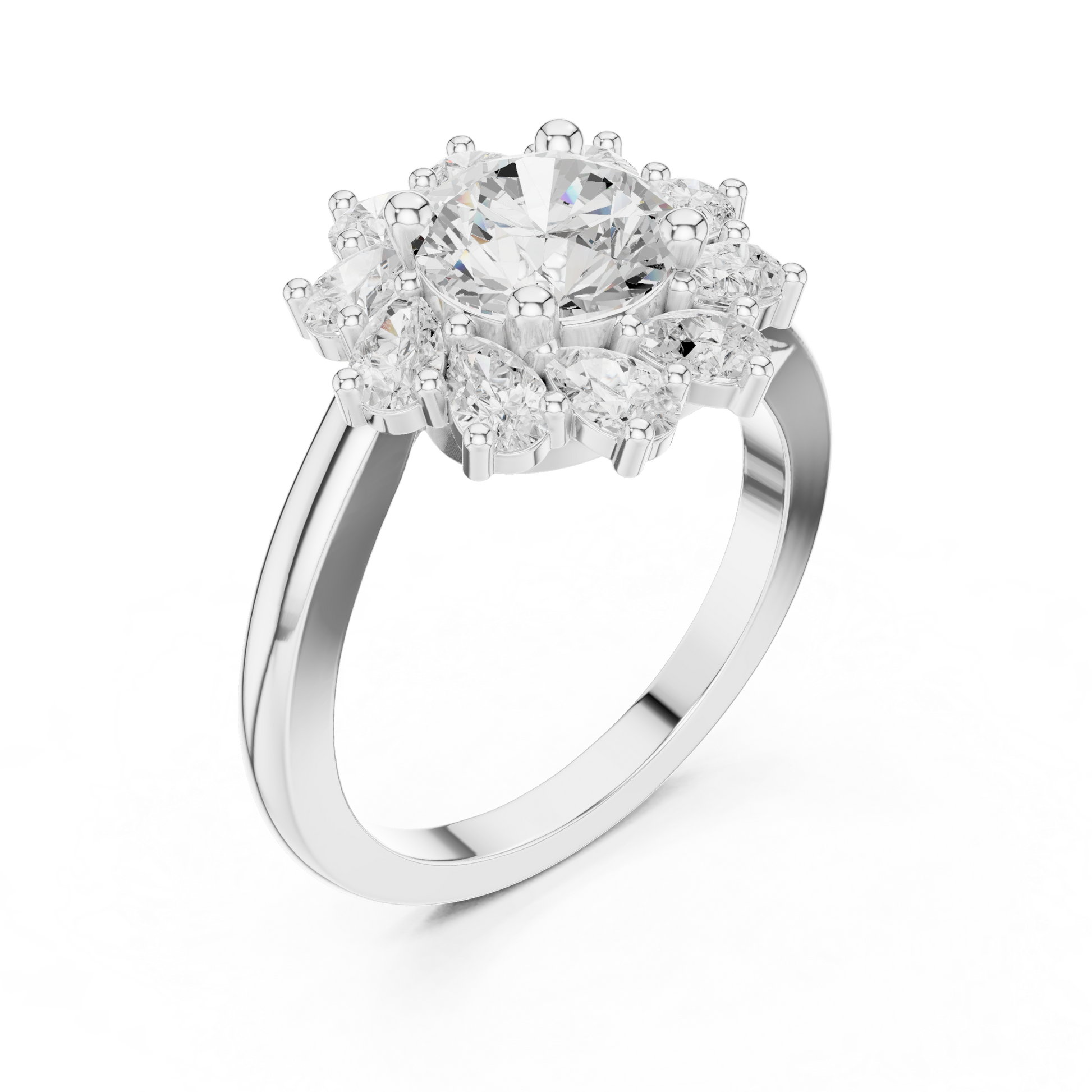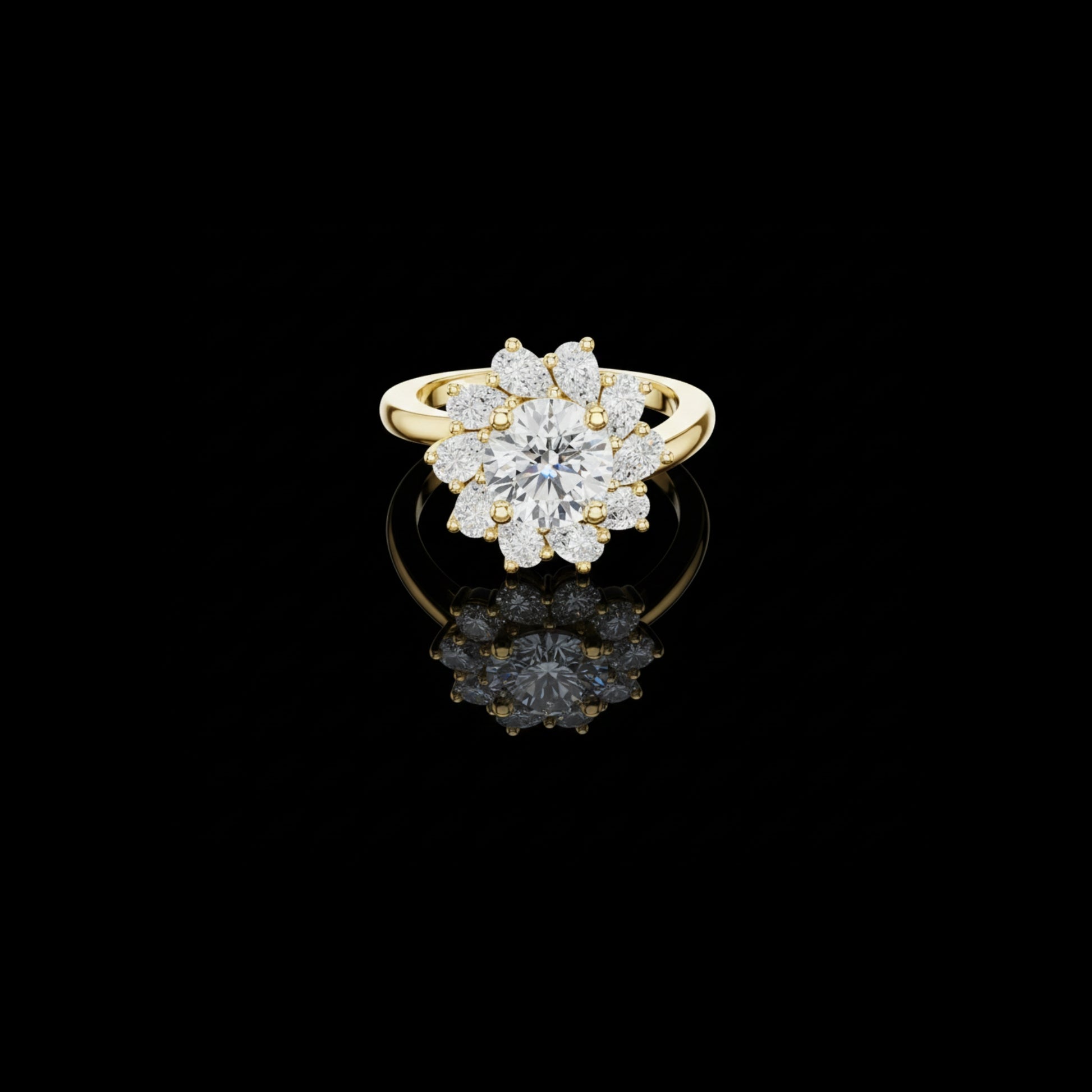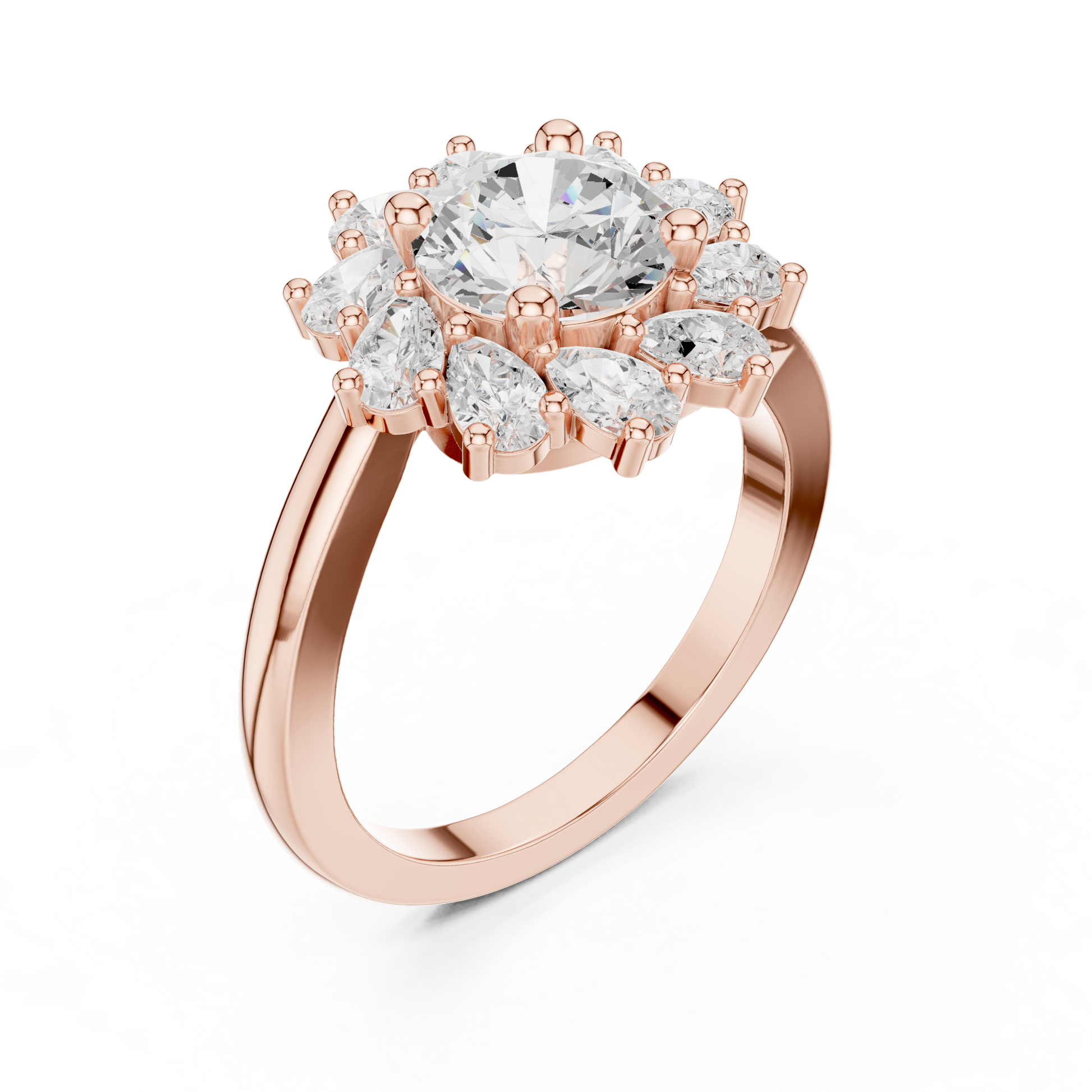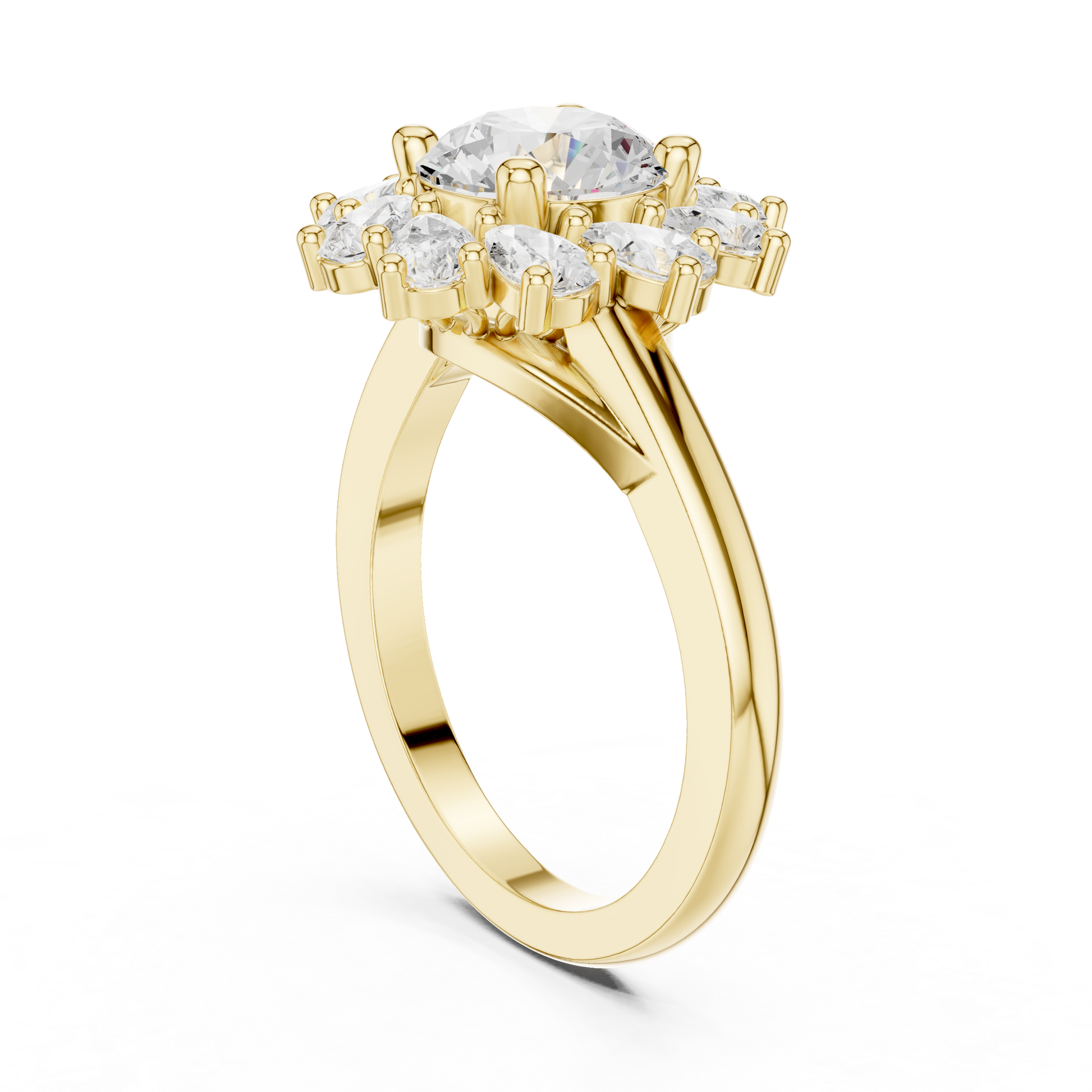 1.5 CT Classic Floral Crown Round Lab Diamond Ring in Gold with Petal Cluster Halo For Her