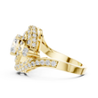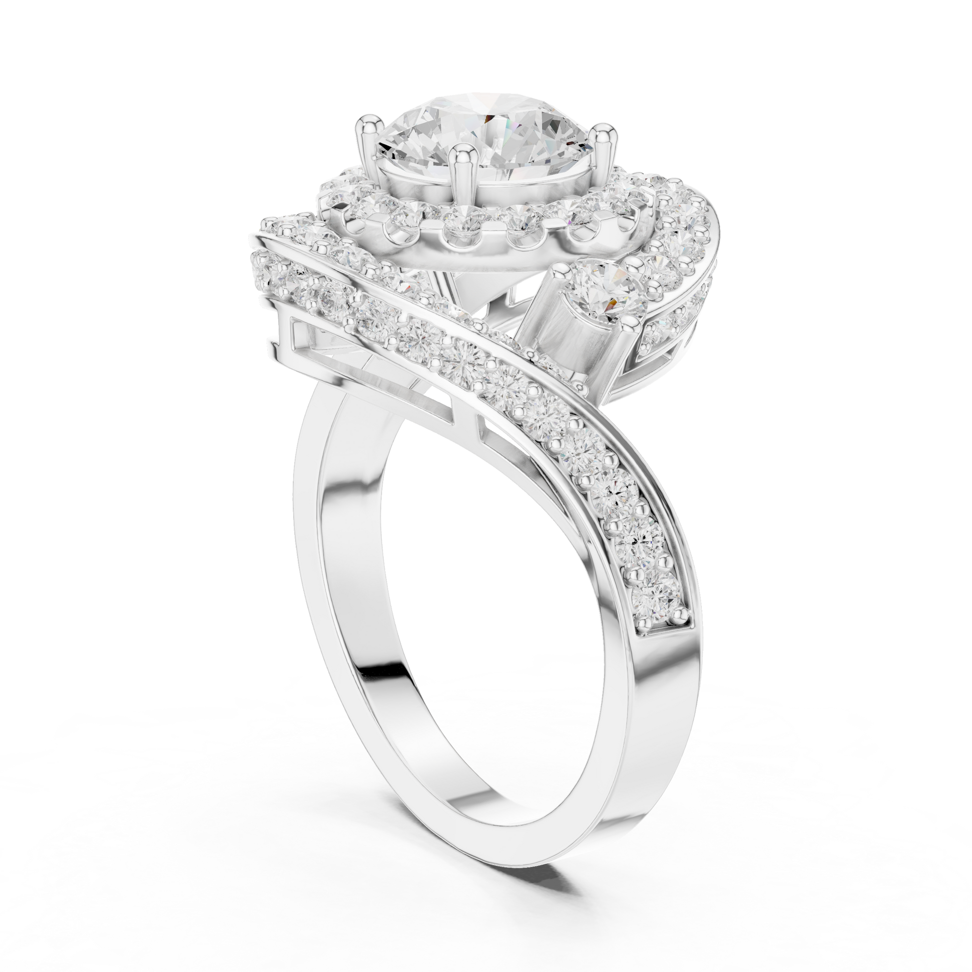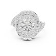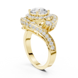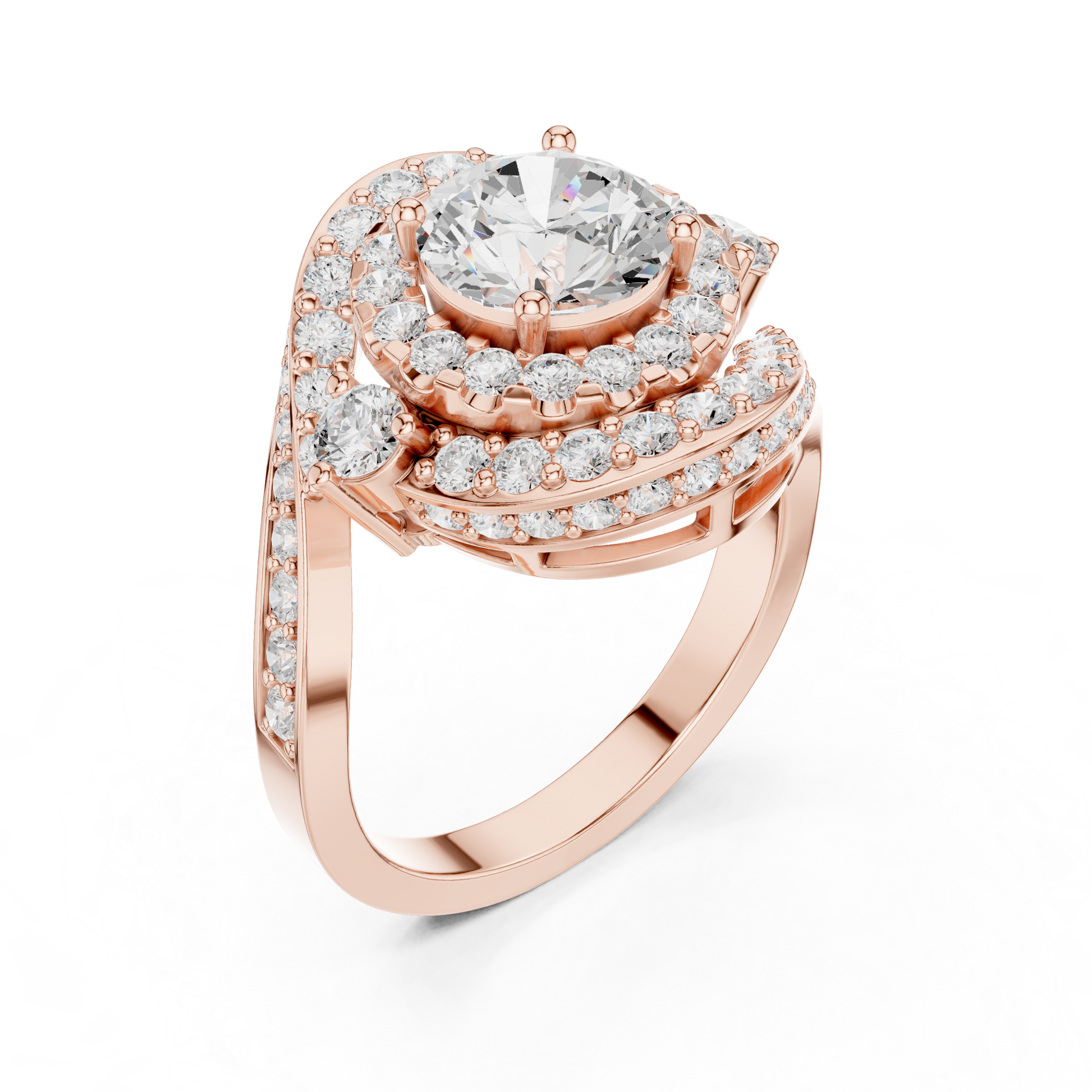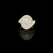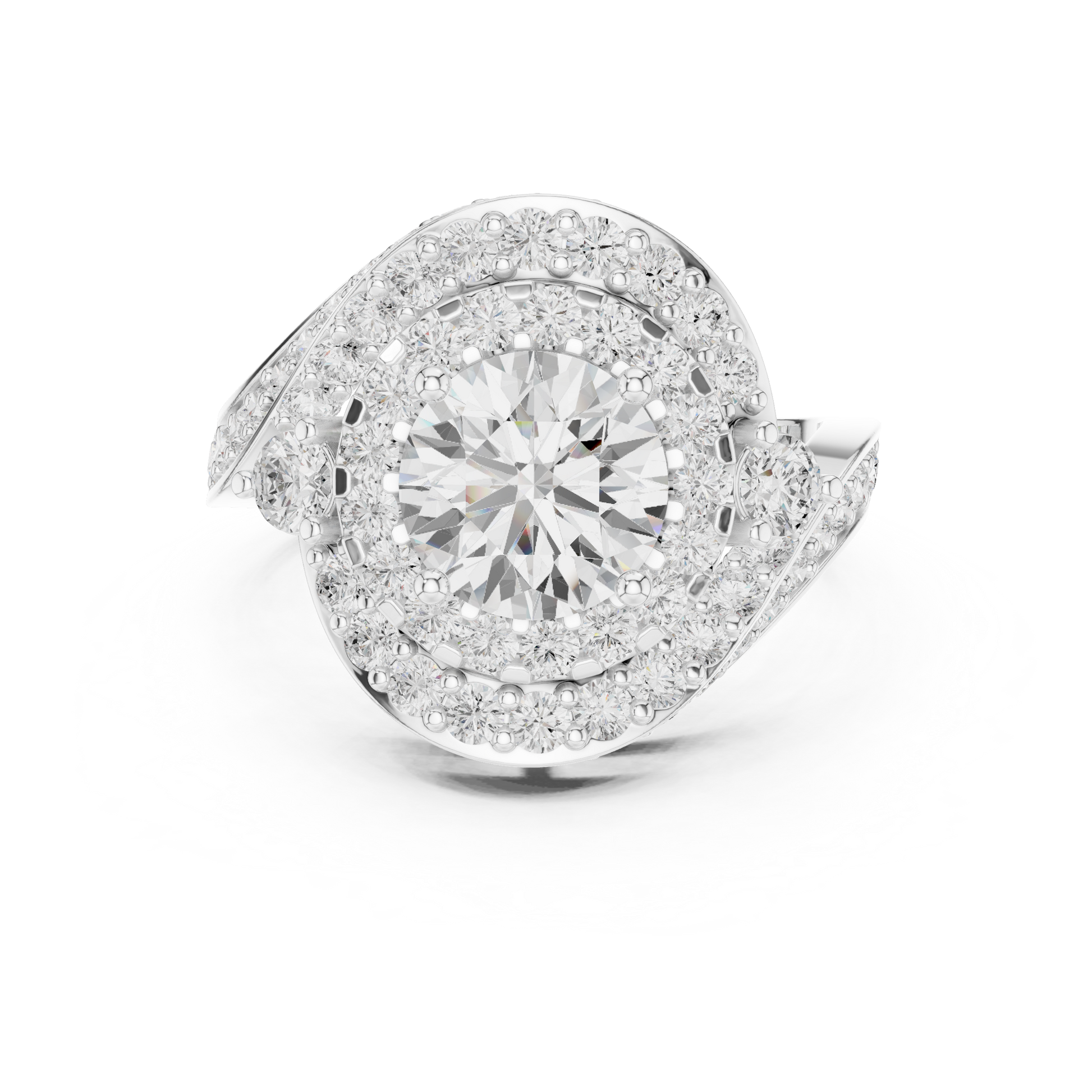 Crafted to shine from every angle, this round-cut diamond ring features a luminous center stone surrounded by a dramatic layered halo that creates depth, dimension, and intense brilliance. The wide pave set band adds a bold, luxurious presence while maintaining refined elegance. Finished in polished gold, this design is perfect for those who want a standout engagement ring or a powerful symbol of everlasting love.