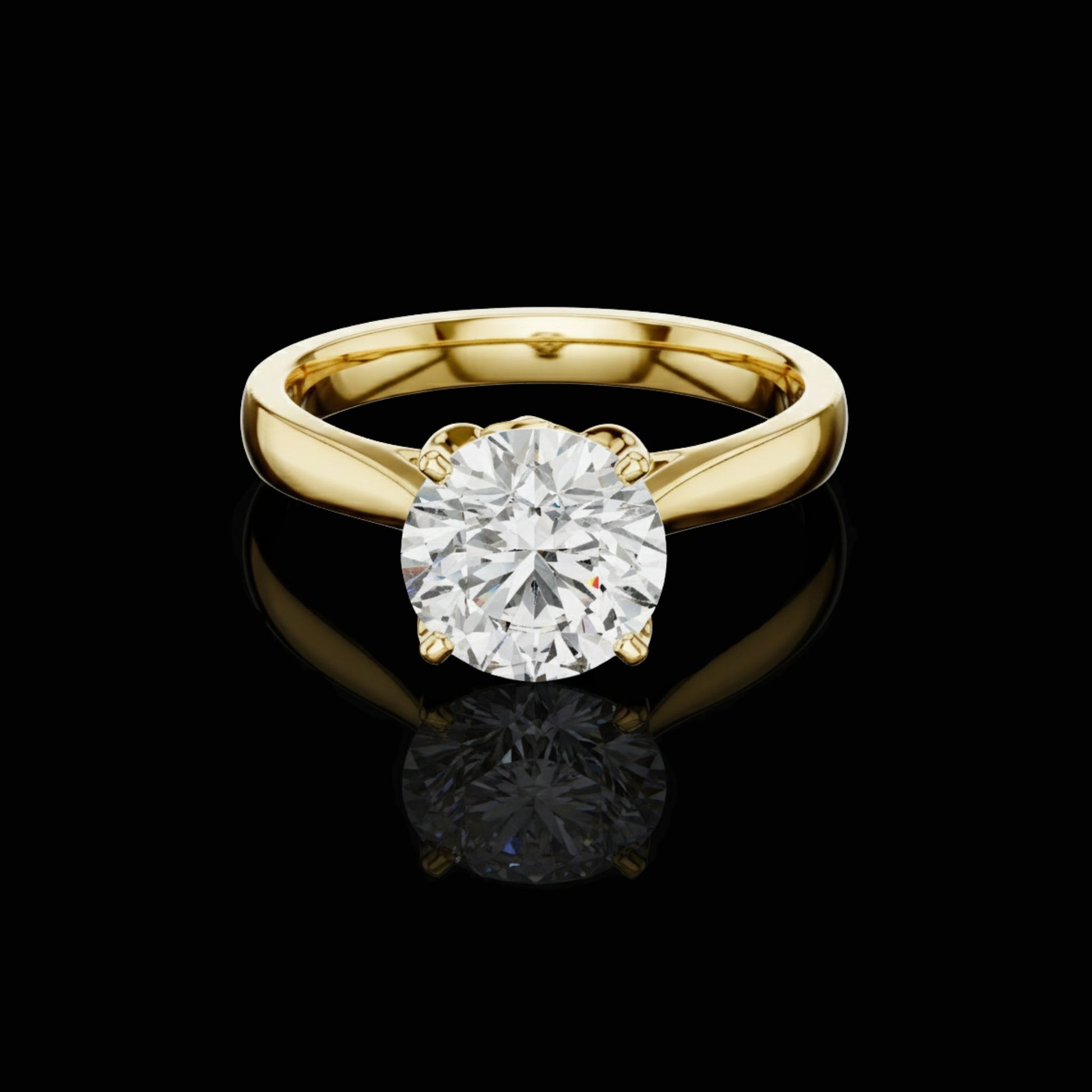 Discover pure elegance with this round-cut solitaire diamond ring, set in luminous gold. The brilliantly faceted center stone showcases exceptional fire, clarity, and sparkle, making it a timeless symbol of love. Its sleek, polished band highlights the diamond’s natural radiance, creating a perfect blend of luxury, simplicity, and sophistication ideal for any special moment.