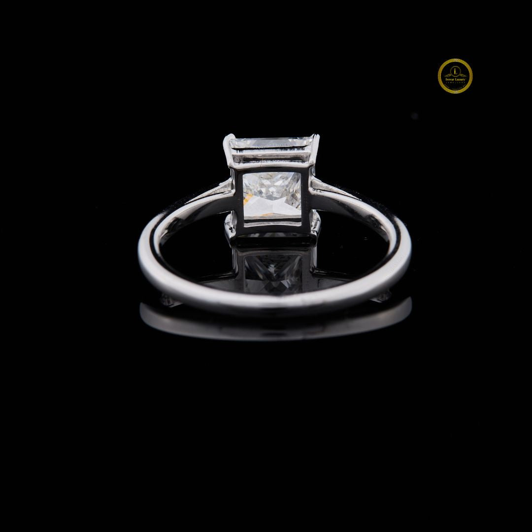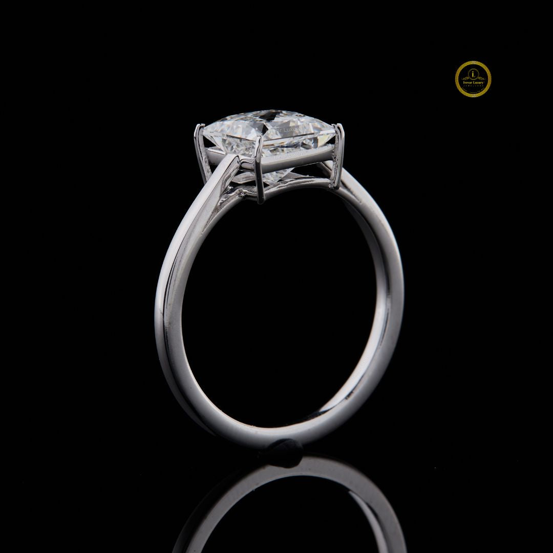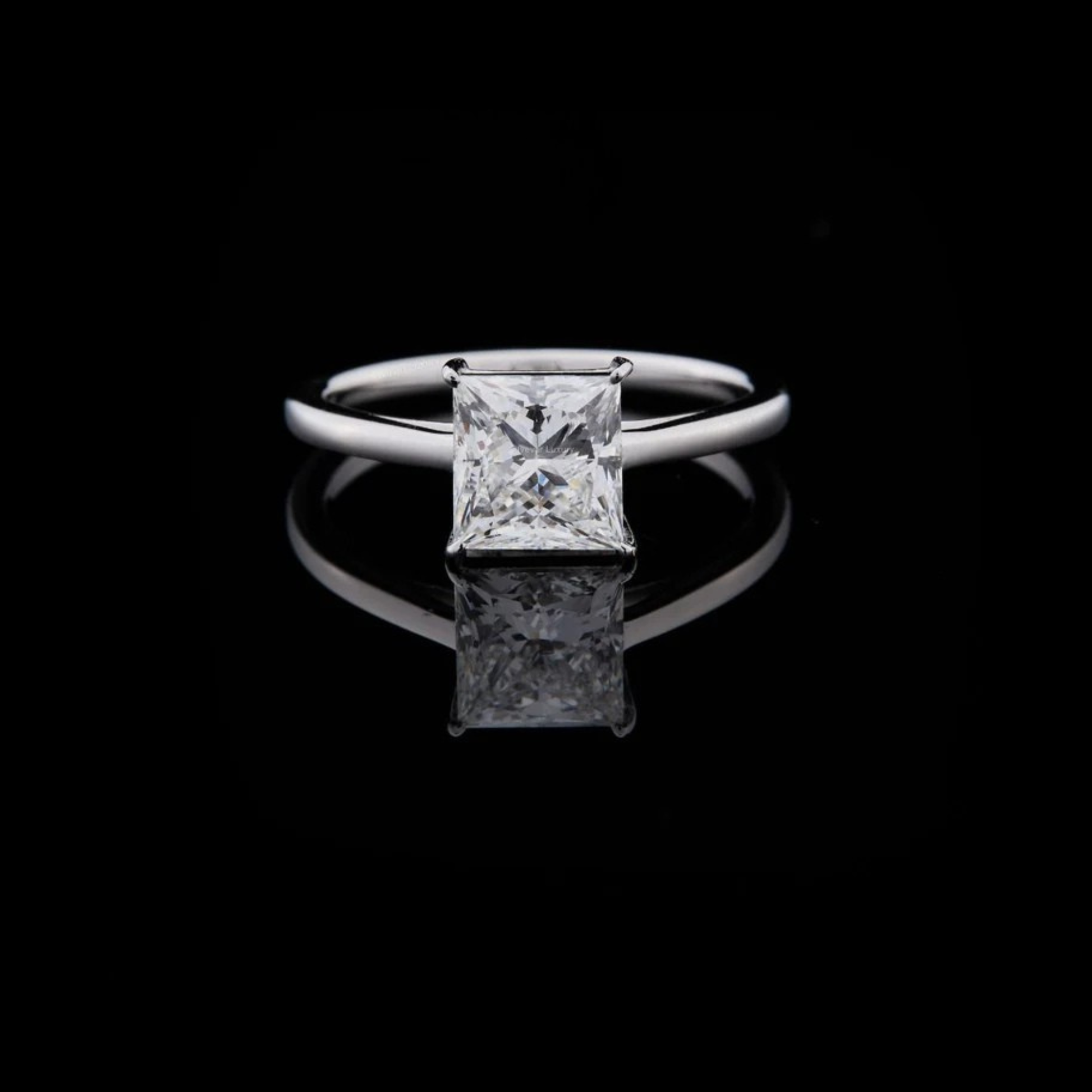 This stunning ring features a brilliant princess-cut diamond held securely in a classic four-prong setting, allowing maximum light performance and sparkle. The sleek, polished band adds a touch of modern minimalism, drawing all attention to the radiant center stone. Perfect for those who admire clean lines and sophisticated style, this piece embodies elegance, precision craftsmanship, and enduring beauty—ideal for engagements or precious celebrations.