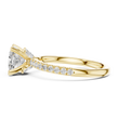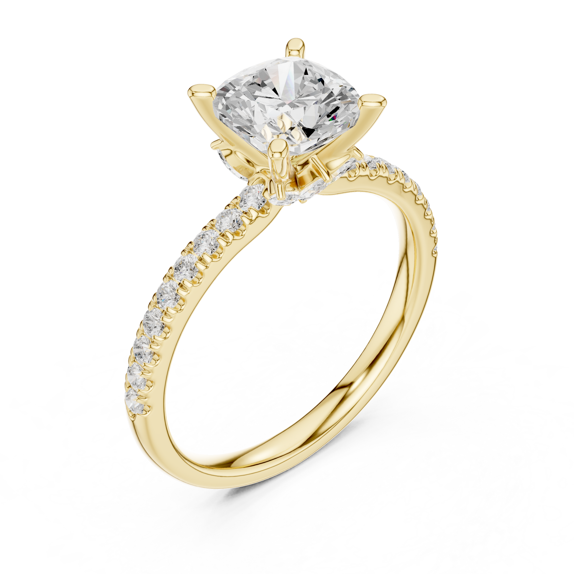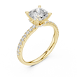Discover timeless elegance with this stunning cushion-cut diamond engagement ring from Ivevar Luxury, meticulously crafted in radiant gold. The design showcases a brilliant cushion-shaped center stone secured in a classic four-prong setting, elevated to enhance light reflection and brilliance from every angle. A refined pavé-set diamond band adds a continuous shimmer, perfectly complementing the smooth, high-polish gold finish for a sophisticated and balanced look.
