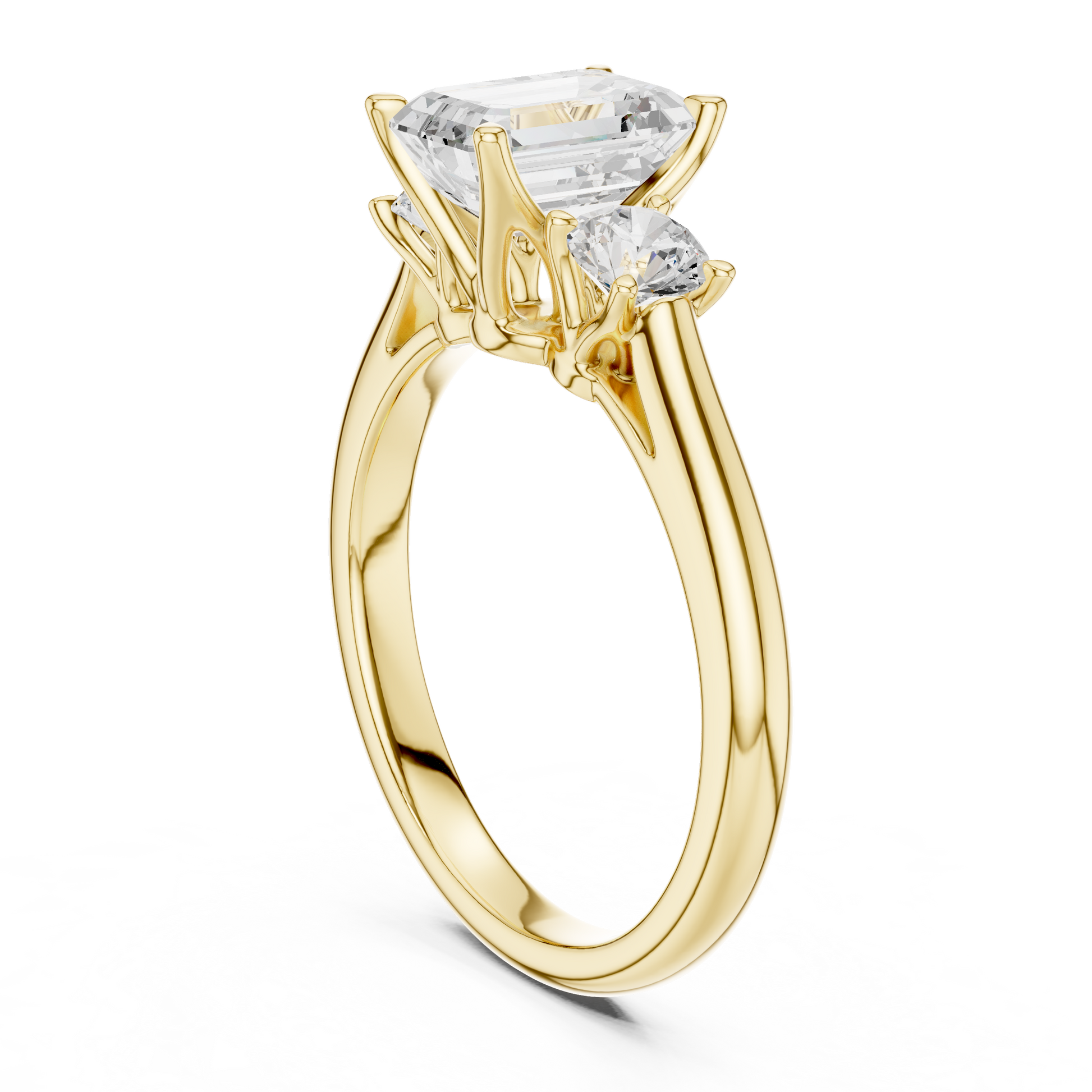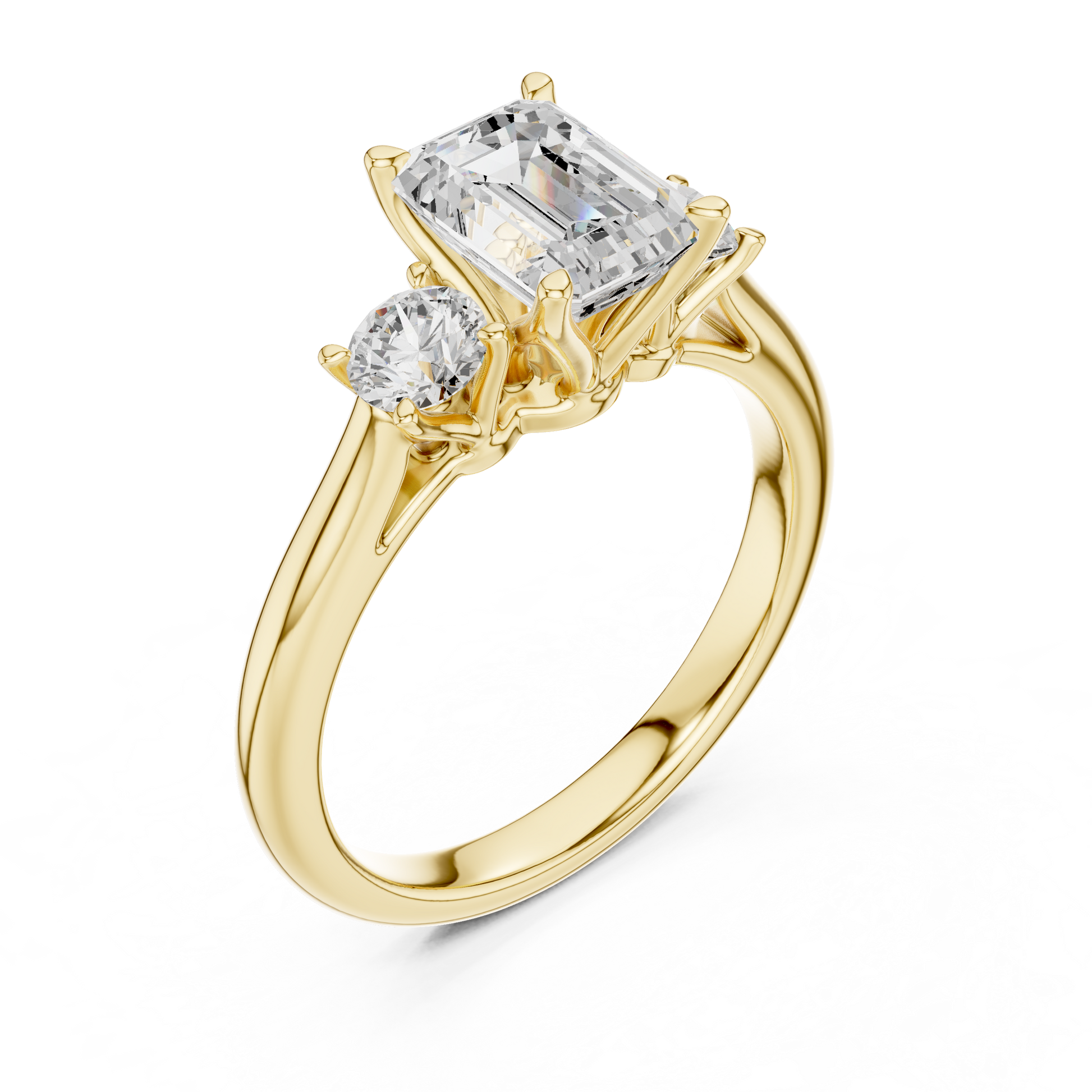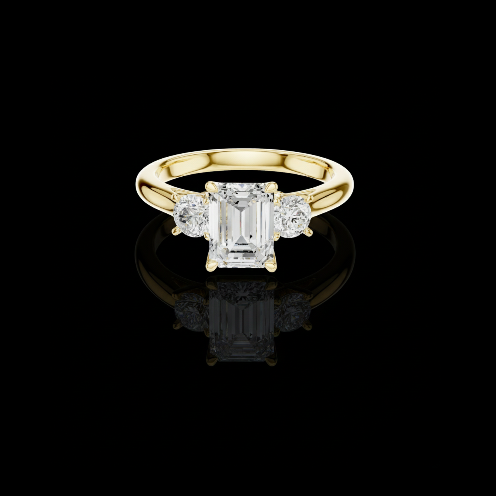 This exquisite Emerald Cut Three-Stone Diamond Ring from Ivevar Luxury combines classic sophistication with modern brilliance. The elongated emerald-cut center stone creates a bold, elegant look, while the two round side diamonds add soft sparkle and perfect balance. Set on a polished gold band, the design radiates luxury and refinement, making it ideal for proposals, anniversaries, or milestone celebrations.
