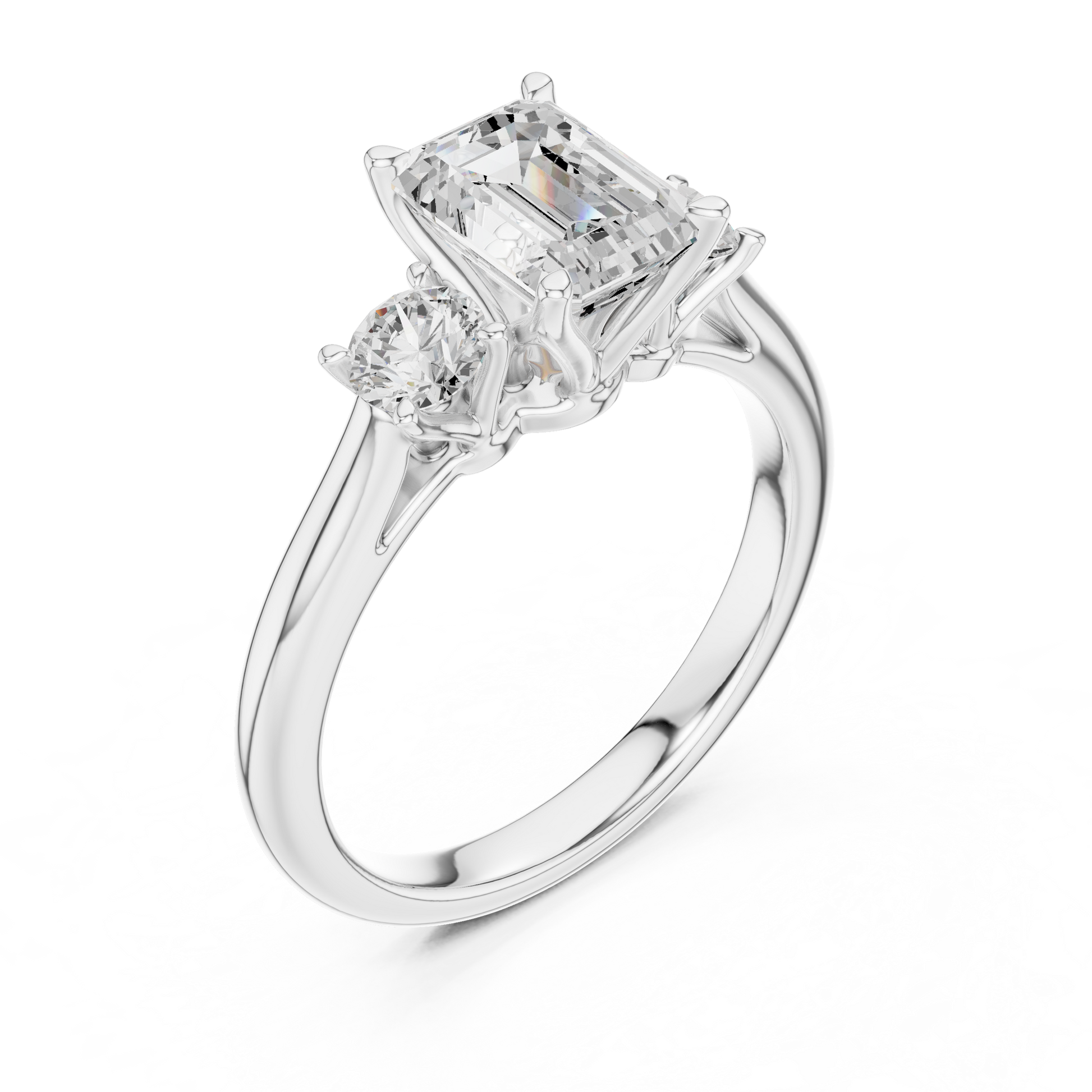 1.50 CT Exclusive Emerald Cut with Round Side Moissanite Diamond Accents Elegant Three Stone Proposal Ring for Her