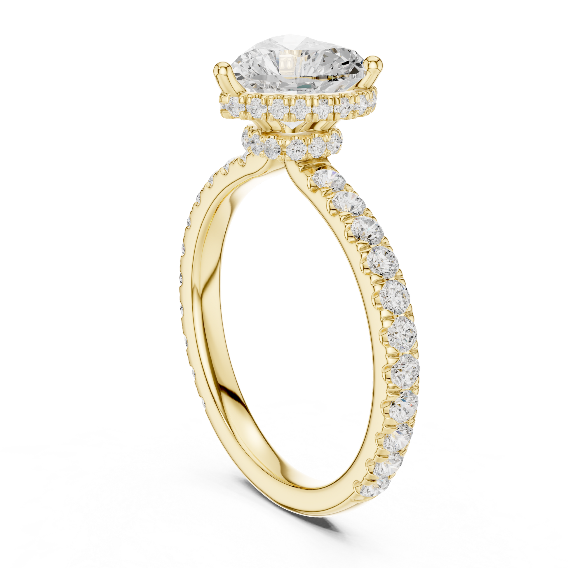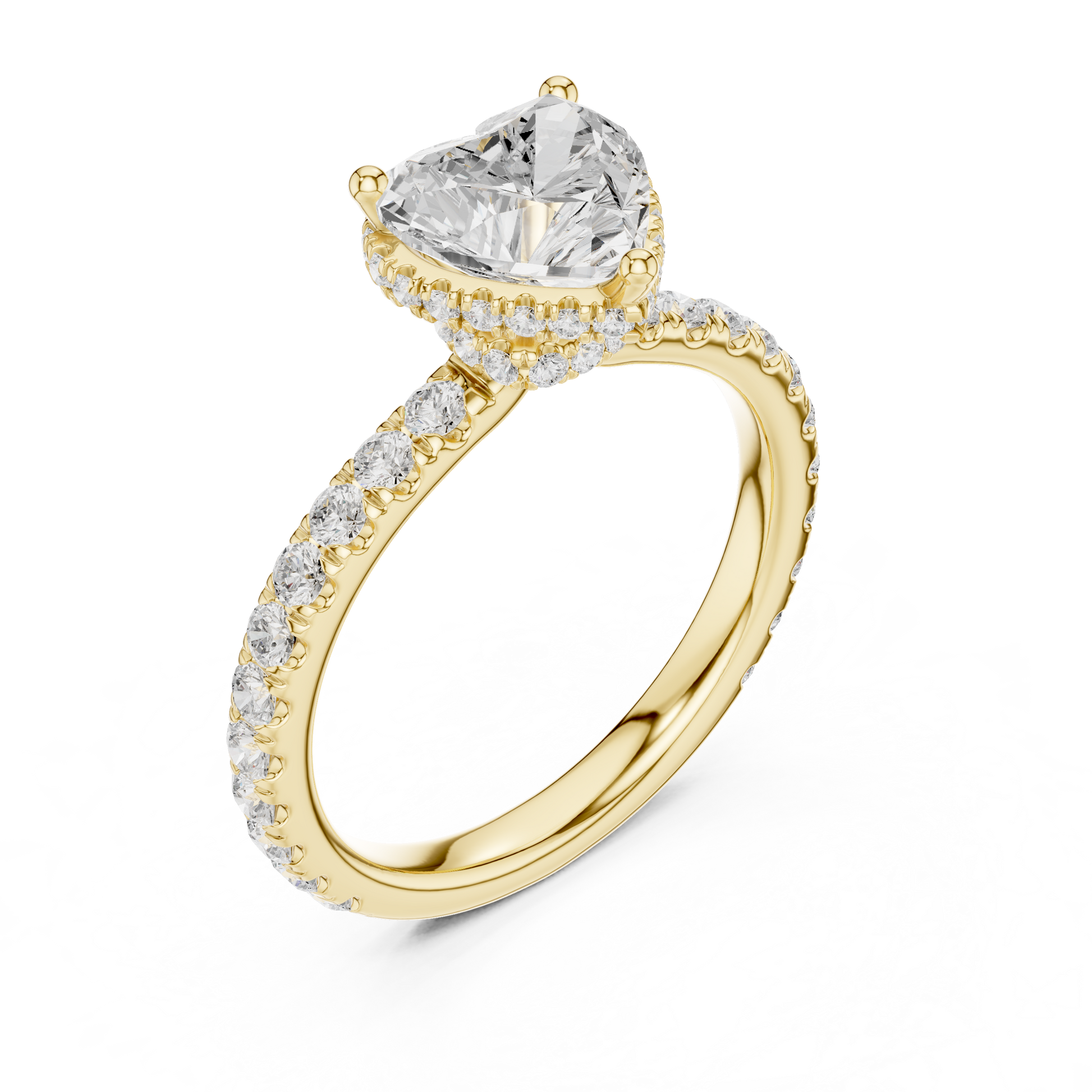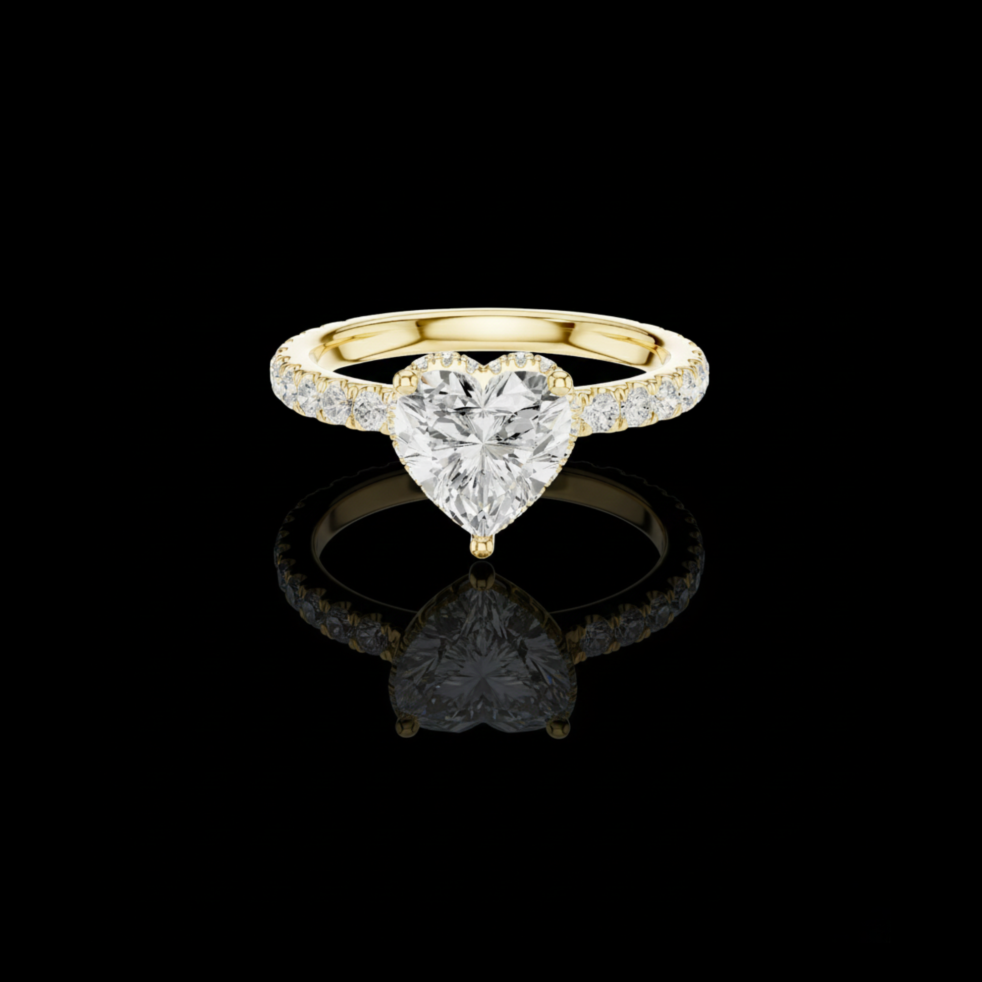 At Ivevar Luxury, this romantic heart-shaped diamond ring is designed to celebrate love with timeless brilliance and refined craftsmanship. The dazzling heart-cut center diamond is elevated in a delicate halo setting, enhancing sparkle from every angle while symbolizing deep emotion and commitment. A polished gold band adorned with shimmering pave-set diamonds adds elegant radiance and luxurious detail.