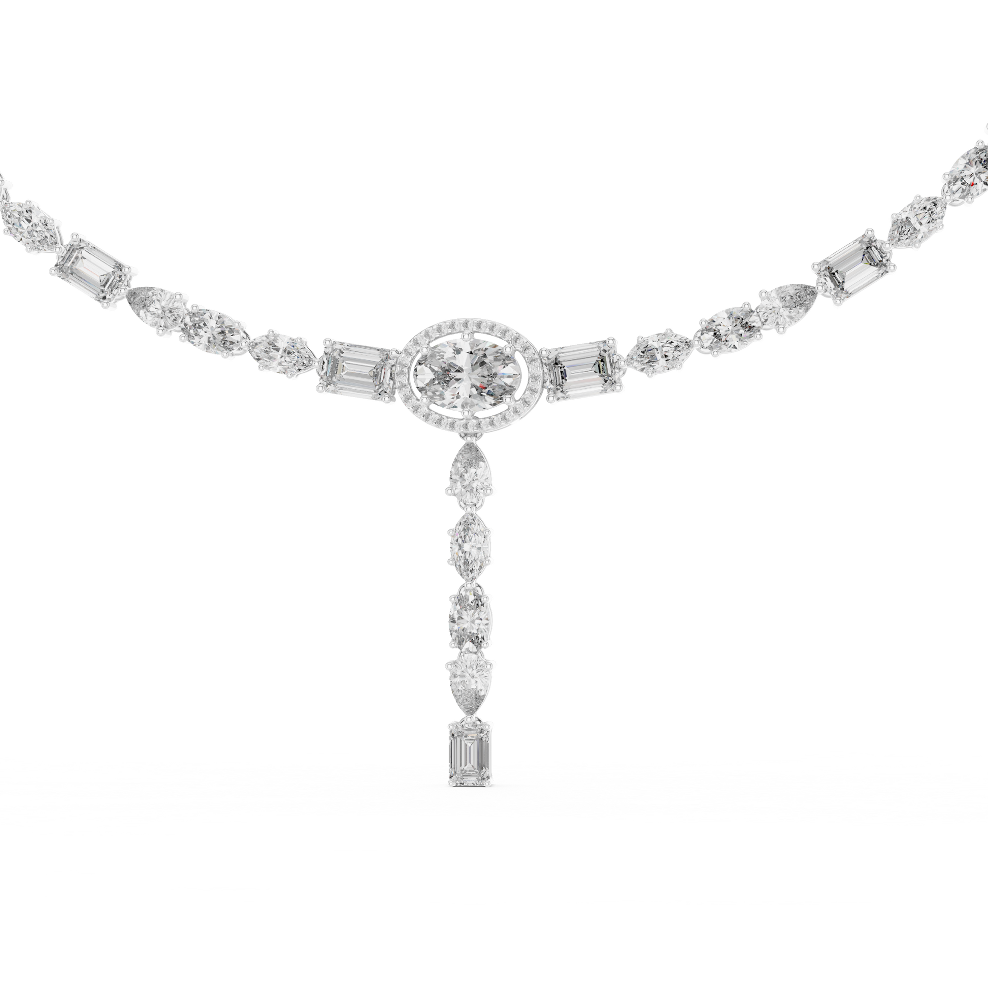 Discover timeless sophistication with this Ivevar Luxury Oval Halo Diamond Y-Necklace, meticulously crafted in premium. The centerpiece features a radiant oval-cut diamond encircled by a delicate diamond halo, creating exceptional brilliance and depth. Flowing downward, a refined drop of marquise and emerald-cut diamonds adds elegance and elongates the neckline. Perfect for weddings, evening galas, or statement occasions, this design embodies exquisite craftsmanship, royal elegance, and enduring luxury.