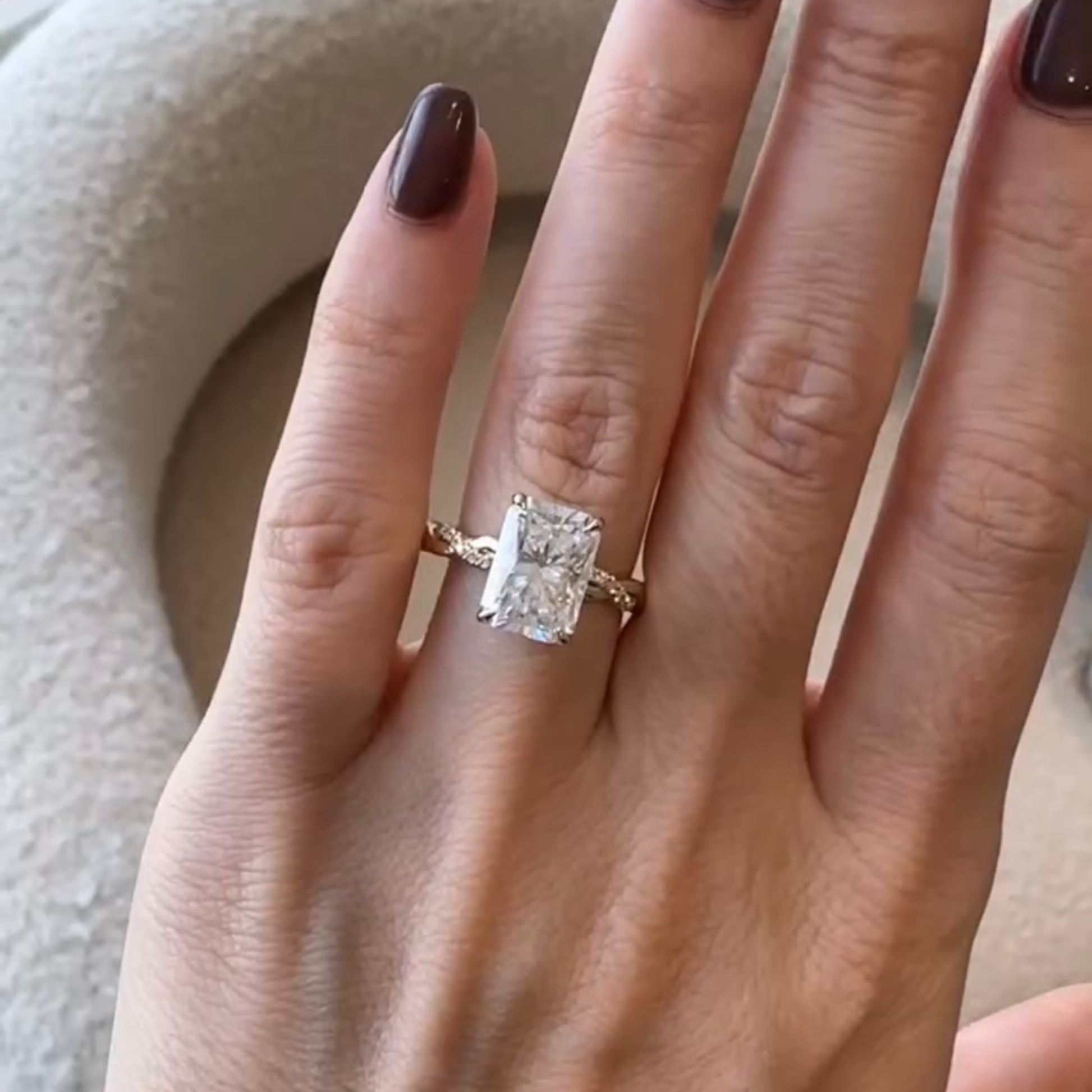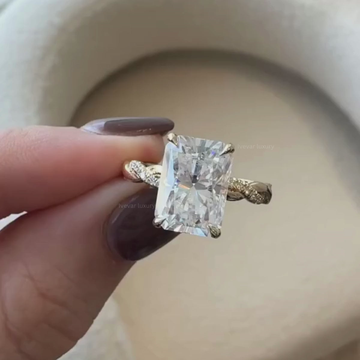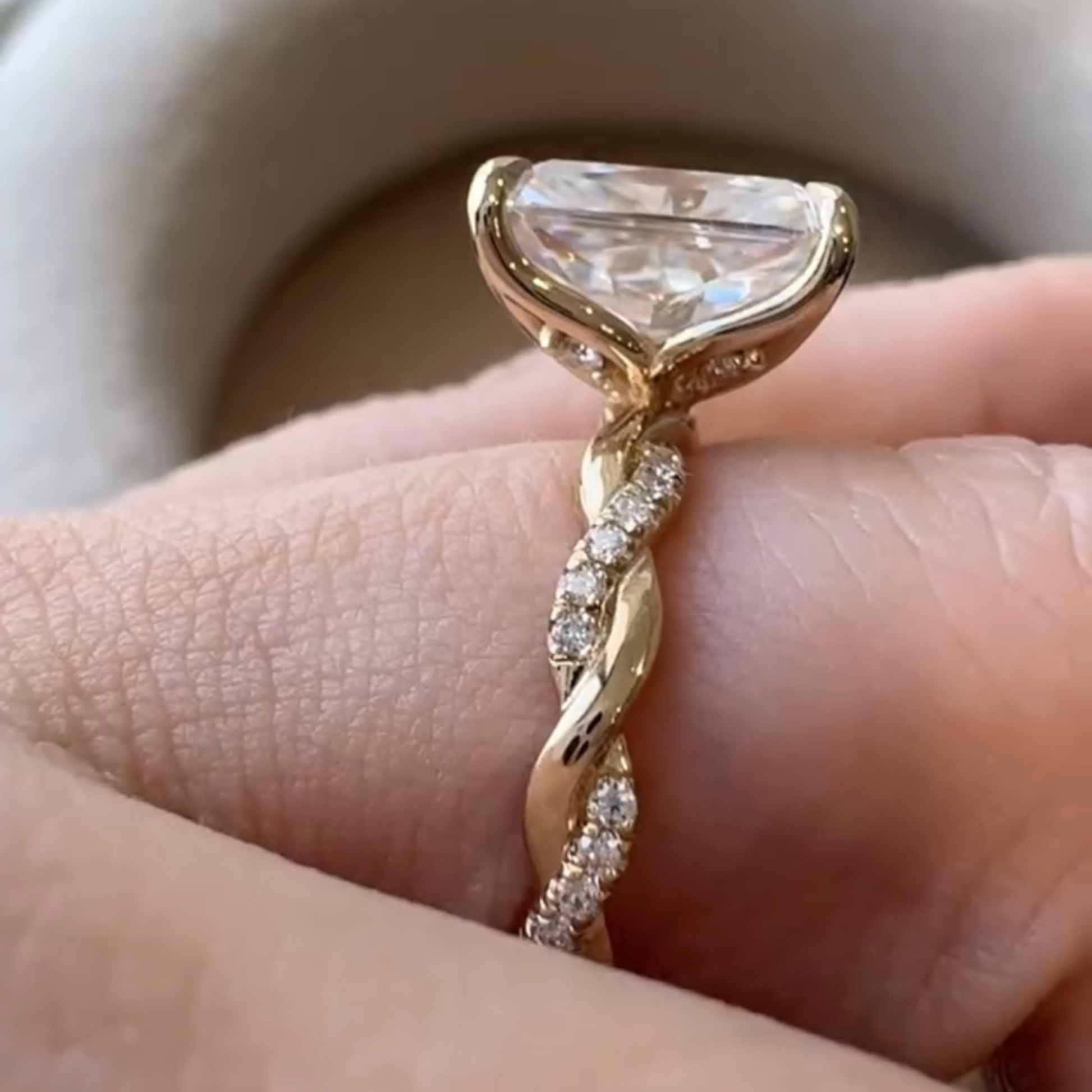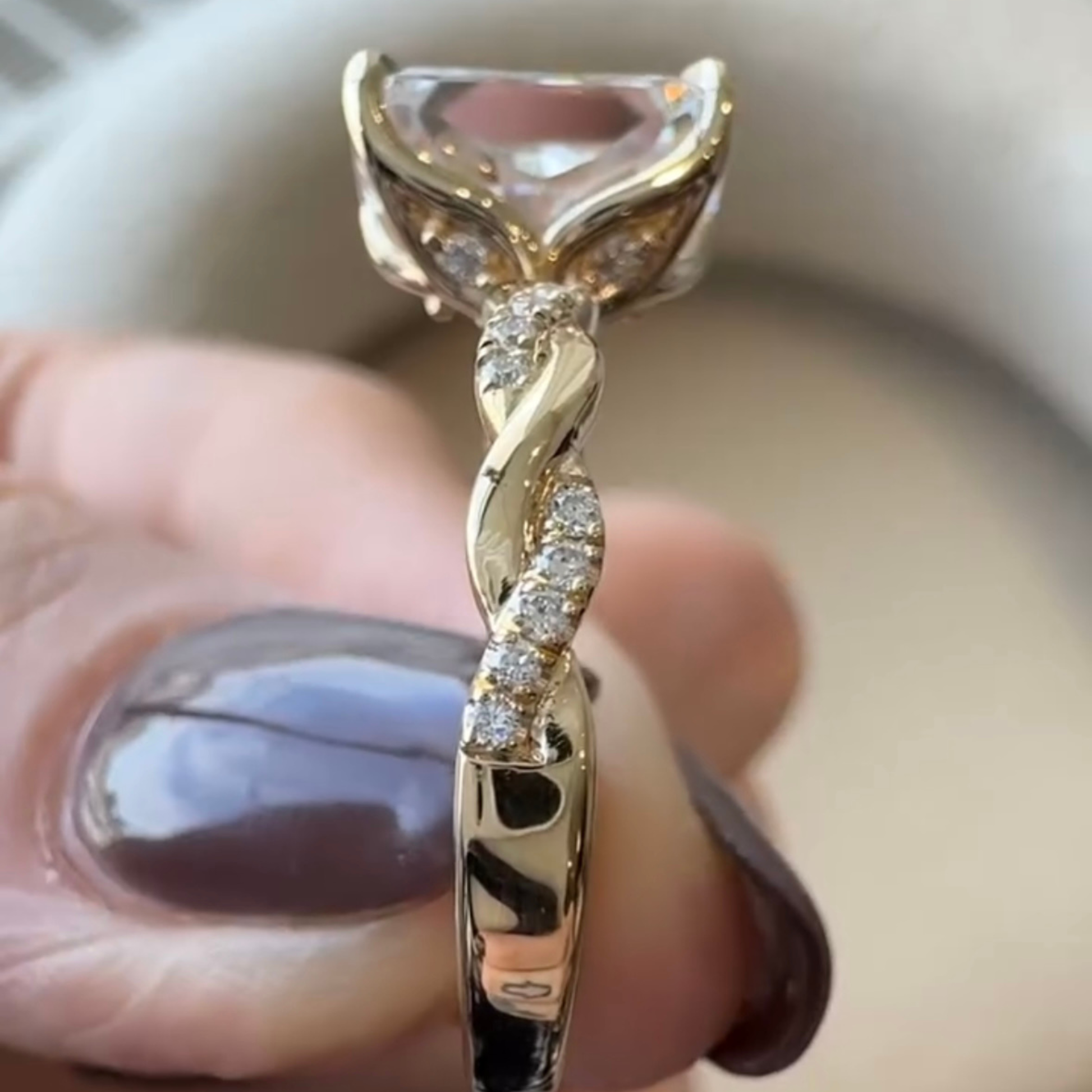 This elegant ring from Ivevar Luxury features a brilliant radiant-cut center stone set in polished yellow gold, paired with a graceful twisted pave diamond band for added sparkle and movement. Designed with refined craftsmanship and modern sophistication, this timeless piece offers a perfect balance of luxury, brilliance, and everyday comfort—ideal for engagements, proposals, or meaningful celebrations.