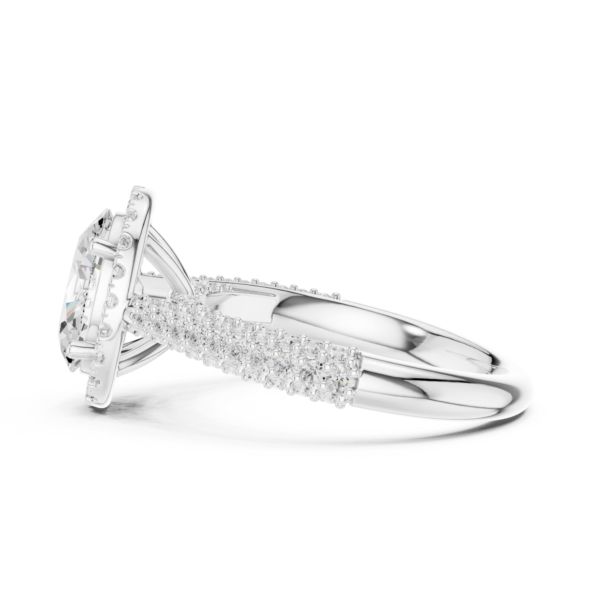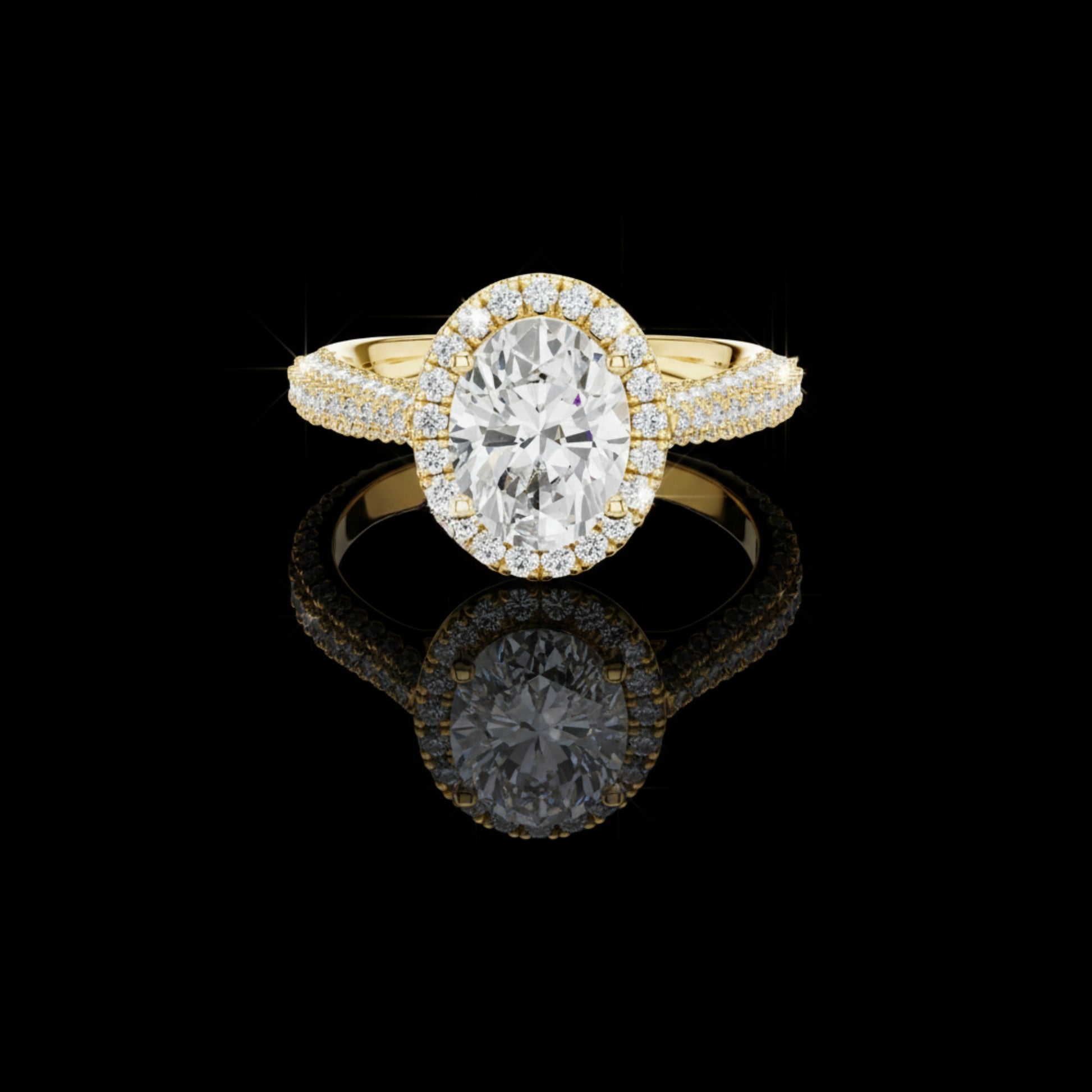Elevate your moment with this breathtaking Oval Cut Diamond Halo Engagement Ring, expertly crafted in radiant gold. The center oval diamond is encircled by a shimmering halo of round-cut accent stones, enhancing brilliance from every angle. A luxurious triple-row pavé band adds extra sparkle and refinement, creating a design that is both timeless and irresistibly glamorous. Perfect for proposals, anniversaries, or as a signature statement ring, this piece blends classic beauty with modern sophistication — a true celebration of love and elegance.