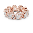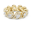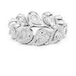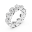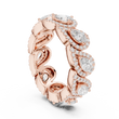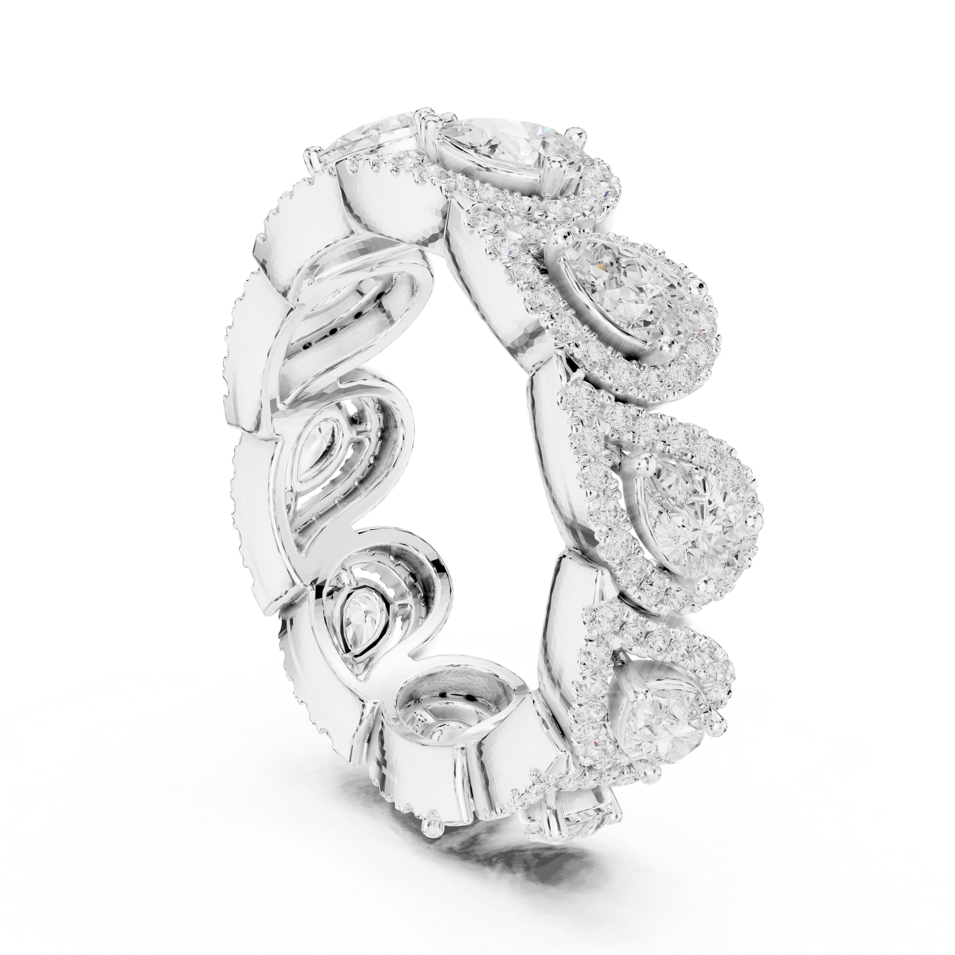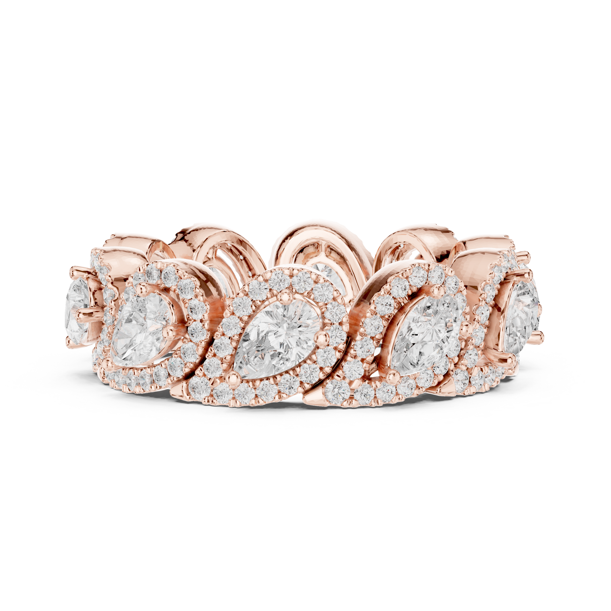 This striking gold diamond band showcases a rhythmic pattern of pear-shaped halo diamonds, seamlessly connected by sculpted gold waves. Each center stone is framed by brilliant pavé diamonds, creating a flowing, high-impact design that blends elegance with bold craftsmanship. Perfect as a statement ring, anniversary band, or luxurious wedding piece, this design radiates brilliance from every angle.