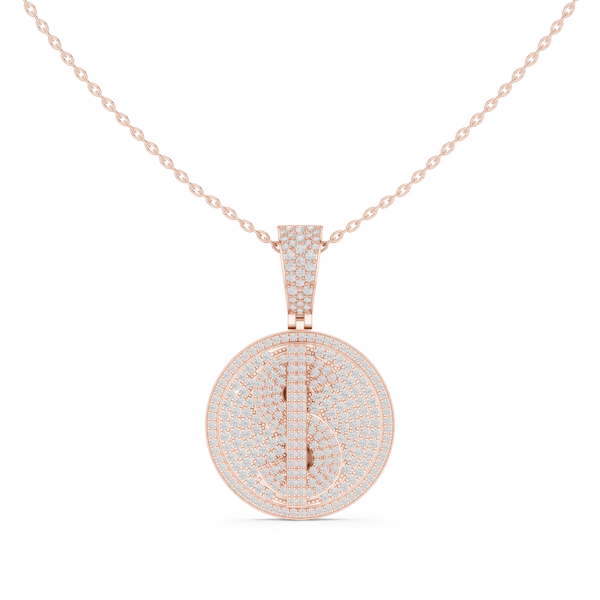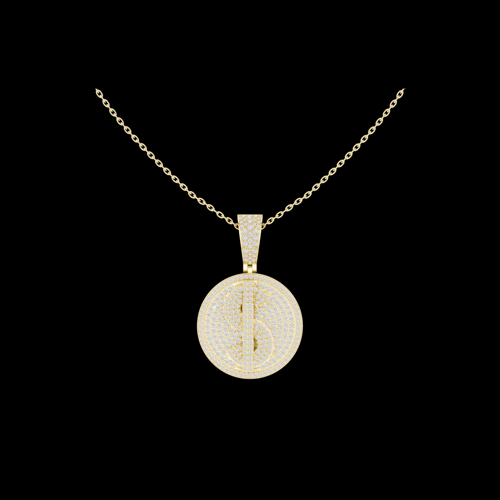 At Ivevar Luxury, elegance meets bold design in this fully iced round disc pendant. this pendant features an all-over pave stone surface that delivers intense brilliance from every angle. The round medallion design creates a powerful and balanced look, while the pave-encrusted bail adds an extra layer of refined luxury. Suspended on a strong gold chain, this piece is designed for those who appreciate modern glamour, confidence, and premium craftsmanship.