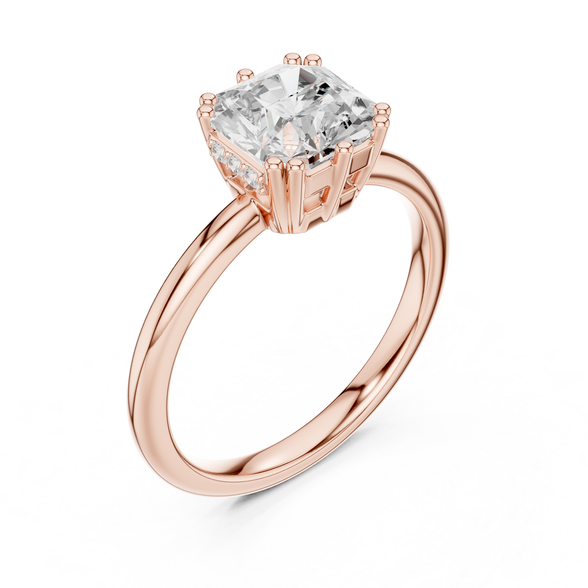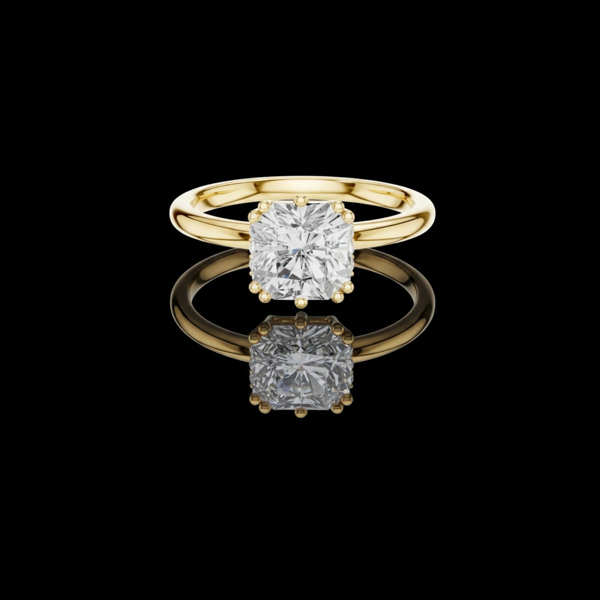 This radiant-cut solitaire diamond ring showcases a breathtaking center stone held by an elegant prong setting in polished gold. Designed for those who admire clean lines and timeless beauty, this piece offers unmatched brilliance and sophistication perfect for engagements or luxury gifting by Ivevar Luxury. Radiant Sparkle, Premium Gold, Timeless Beauty, Luxury Finish.