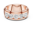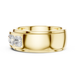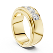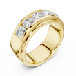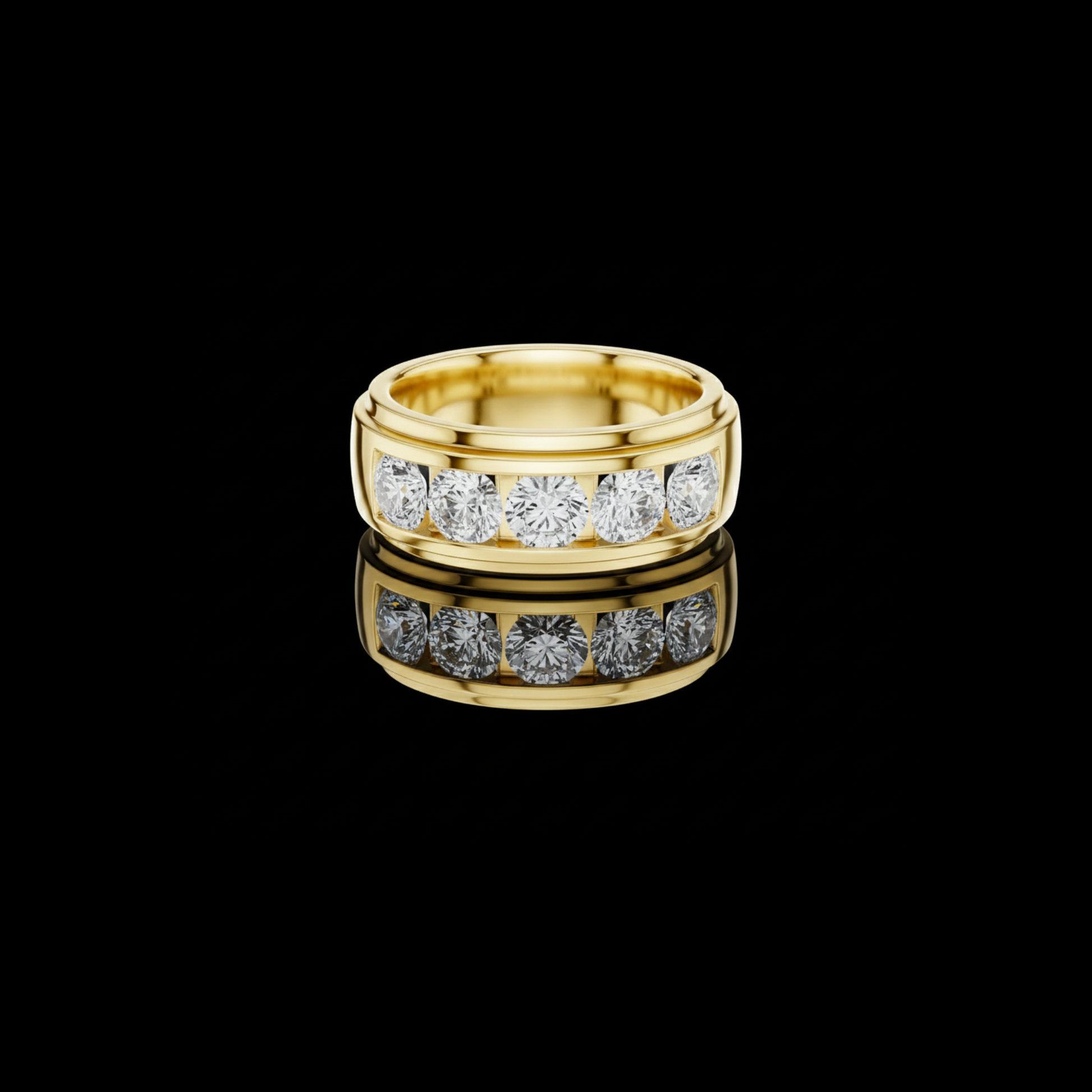 This bold gold band showcases a sleek channel setting filled with perfectly matched round brilliant diamonds, creating a seamless line of fire and sparkle across the center of the ring. The high-polish gold edges frame the diamonds with a clean, modern profile, while the substantial band design offers a confident, masculine-leaning yet universally elegant presence. Crafted for lasting brilliance and everyday durability, this ring makes a powerful statement as a wedding band, anniversary ring, or standout addition to a fine jewelry collection.