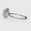 This stunning ring features a brilliant cushion-cut diamond encircled by a sparkling halo of smaller diamonds, all set atop a sleek and polished band that enhances its timeless beauty. The contrast between the radiant center stone and the delicate halo creates an enchanting display of light, clarity, and sophistication, making this piece a perfect expression of elegance, romance, and enduring luxury.