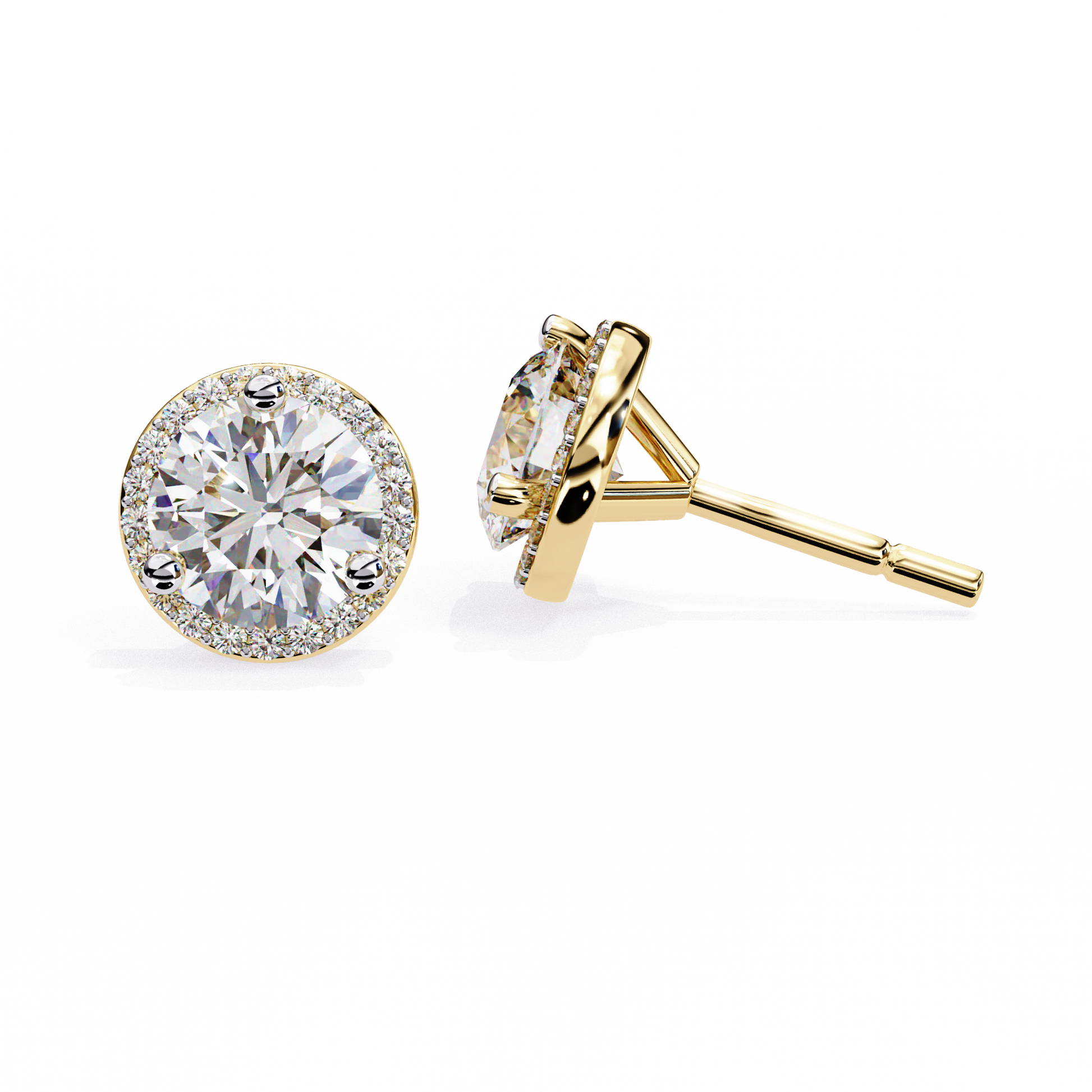 Illuminate your elegance with the Radiant Halo Round Cut Diamond Stud Earrings by Ivevar Luxury Jewels. Crafted in opulent yellow gold, each earring features a dazzling round-cut diamond encircled by a delicate halo of smaller brilliant stones, enhancing its fire and luminosity. The secure three-prong setting highlights the diamond’s pristine clarity, creating a timeless design that exudes sophistication and allure. Perfect for both daily wear and special occasions, these exquisite studs embody refined luxury and enduring beauty — a true statement of grace and brilliance for the modern connoisseur.