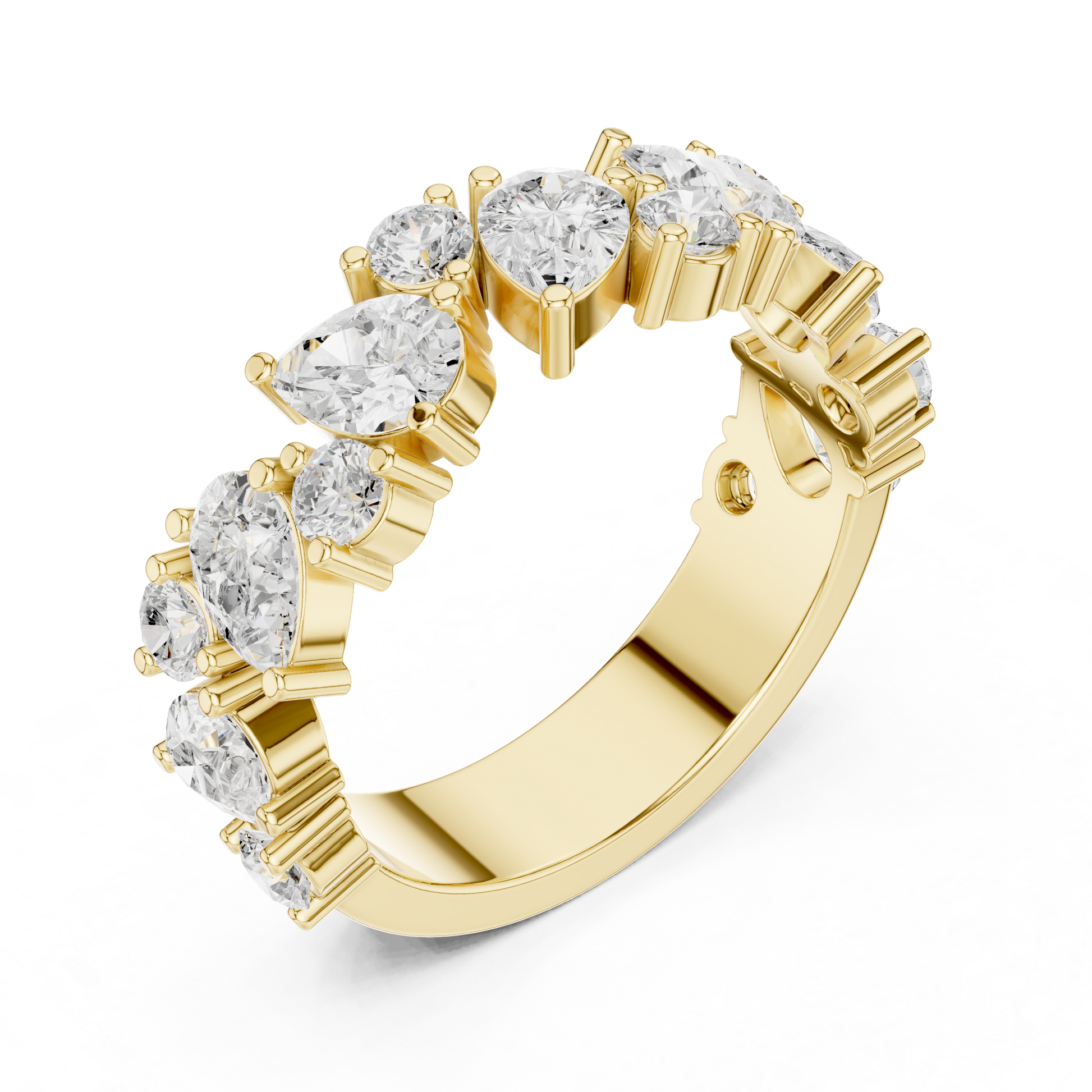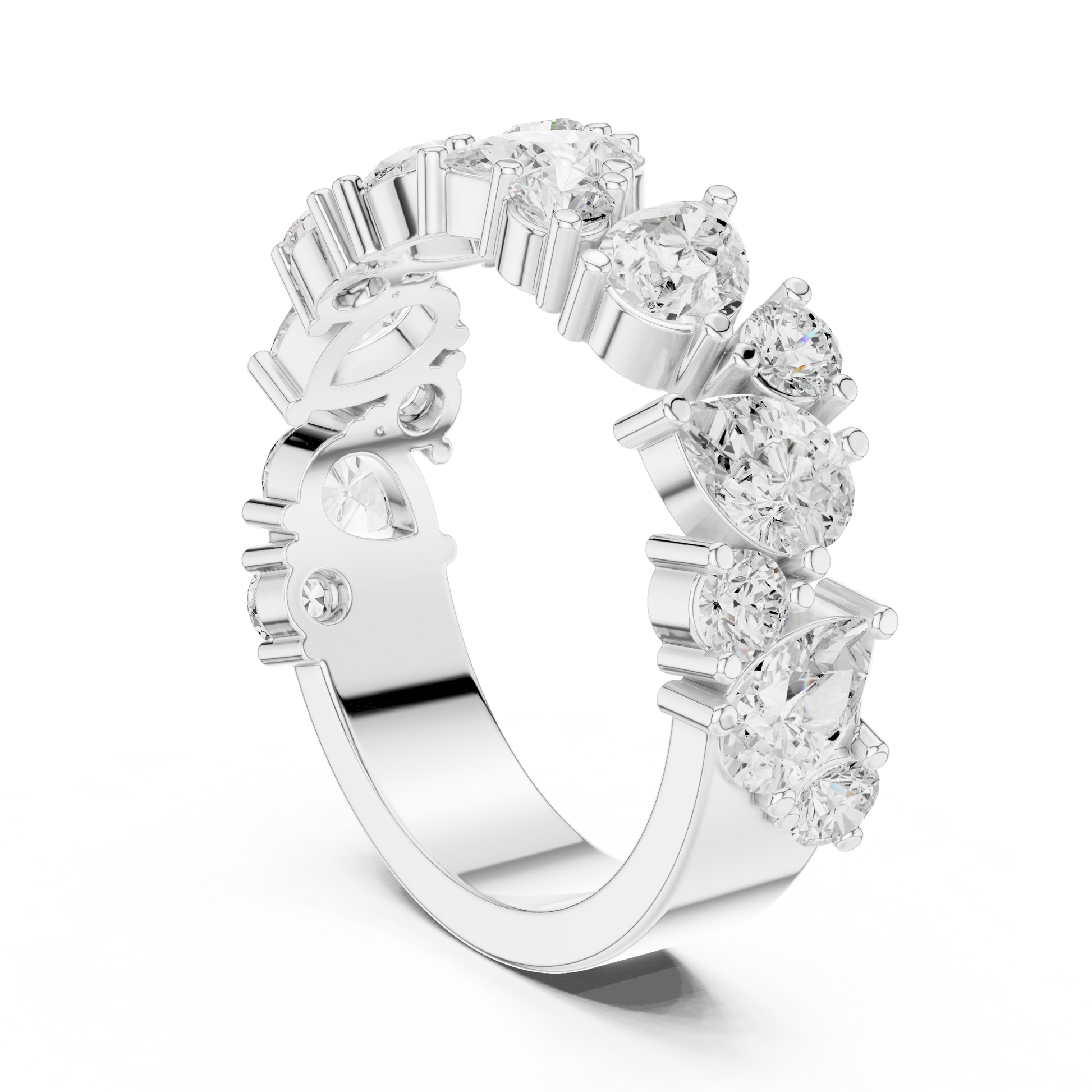 This exquisite eternity band showcases a striking arrangement of alternating pear-shaped and round brilliant diamonds set in rich gold. The modern prong setting enhances each stone’s brilliance, creating a bold and captivating display of sparkle. Designed for those who appreciate Ivevar luxury craftsmanship and distinctive style, this ring is perfect as a statement piece, wedding band, or meaningful anniversary gift. With its elegant curves and radiant shine, it brings timeless beauty to any fine jewelry collection.