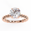 This captivating ring showcases a brilliant round-cut diamond set atop a uniquely designed twisted band, creating a perfect blend of elegance and modern artistry. The central diamond delivers exceptional sparkle, while the twisted band adds a touch of sophisticated charm and distinctive craftsmanship. Ideal for those seeking a piece that reflects luxury, timeless beauty, and individual style, this ring makes a stunning choice for an engagement, anniversary, or special celebration.