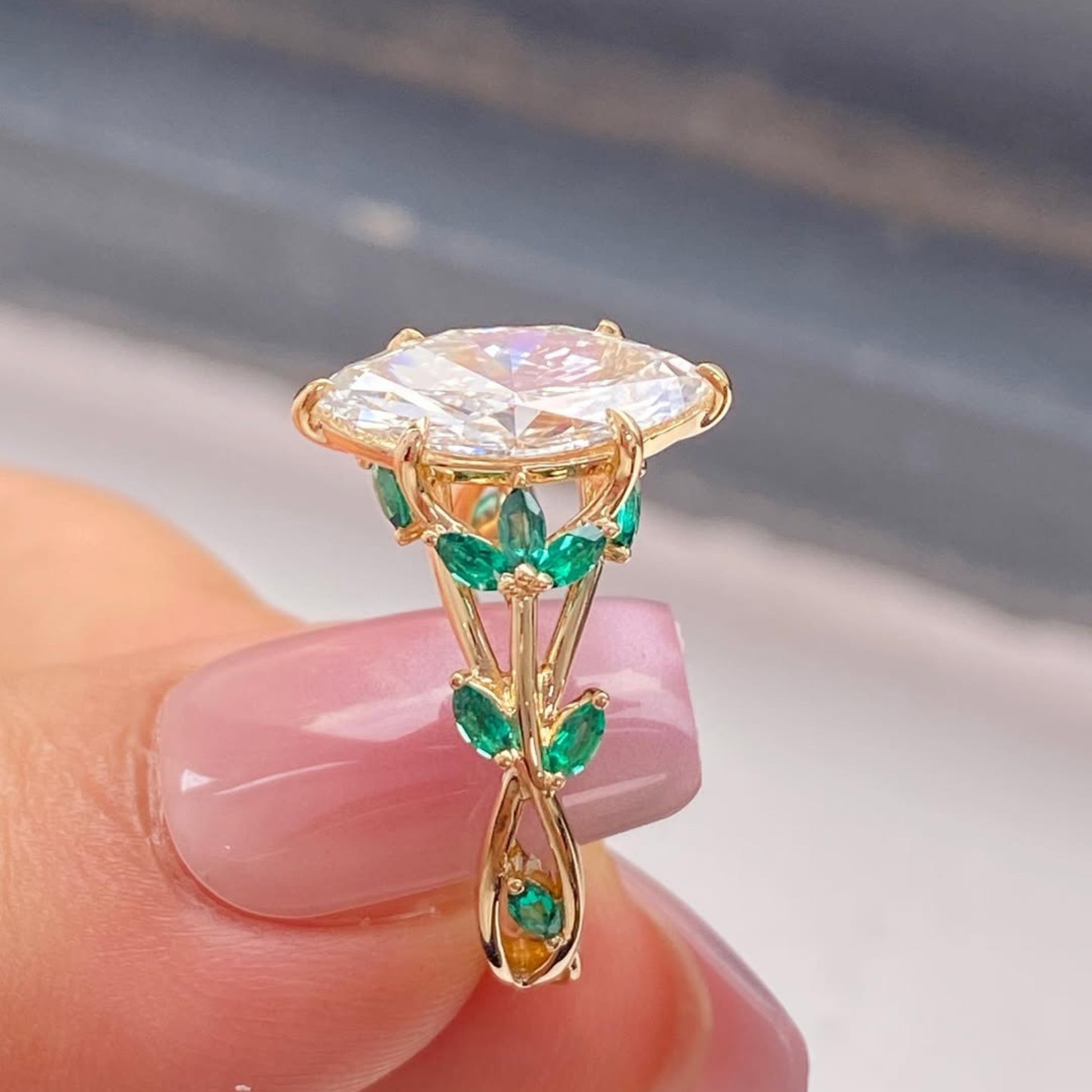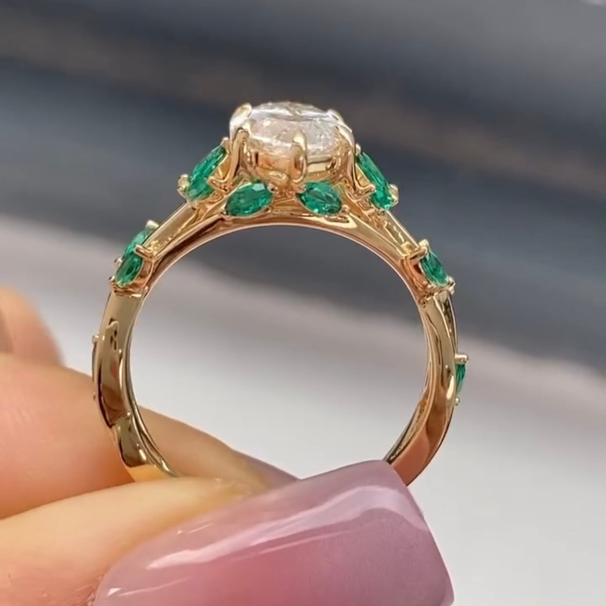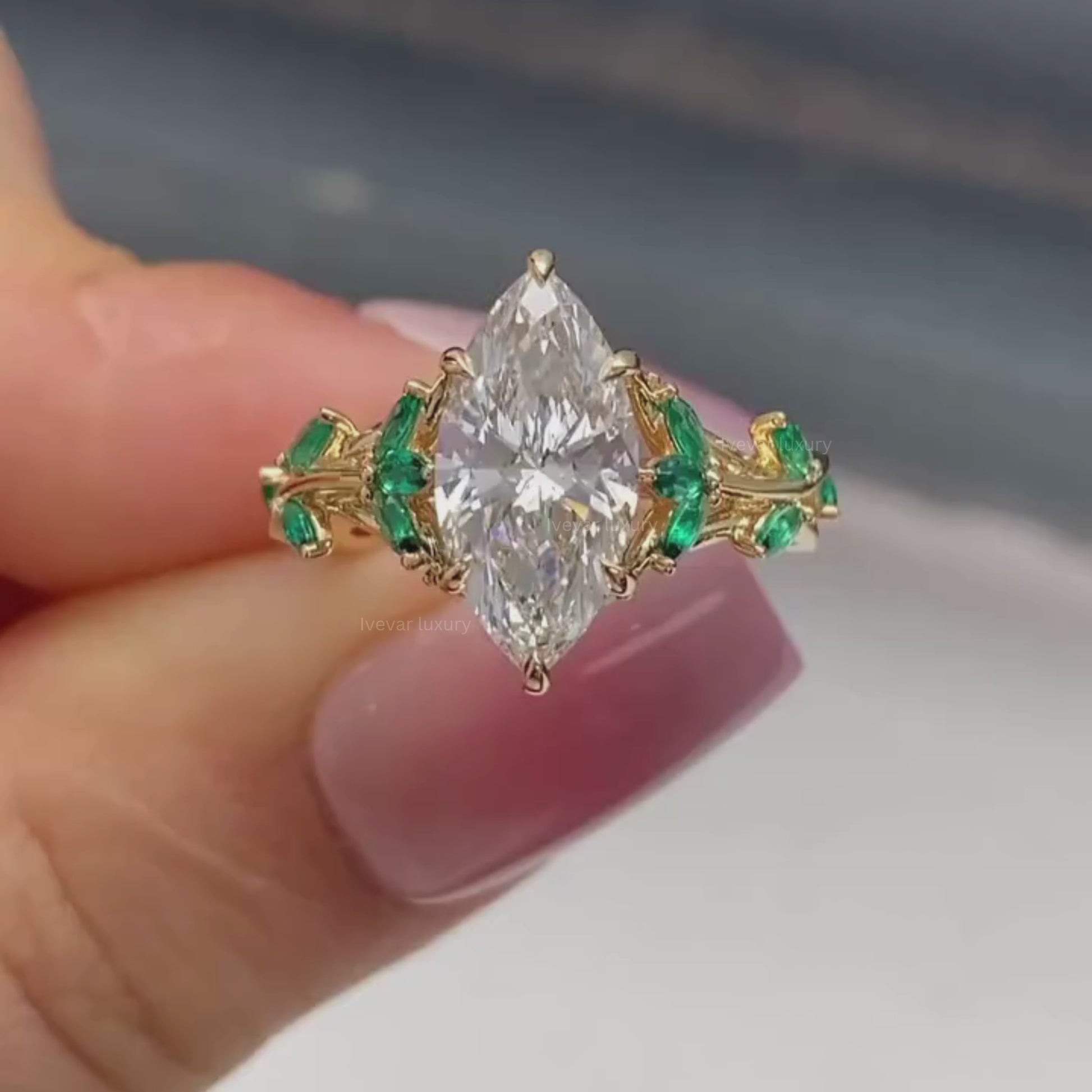 The brilliant elongated marquise diamond is beautifully secured in a warm gold setting, highlighted by vibrant side stones that add rich color and royal charm. Designed for those who love unique statement jewelry, this ring reflects fine craftsmanship, luxury detailing, and timeless beauty. Ideal for engagements, anniversaries, or a standout luxury gift that truly turns heads.