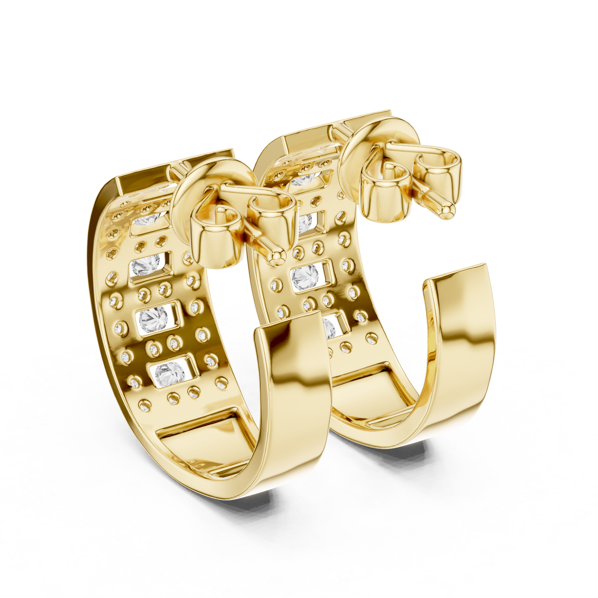 1.98 TCW Elite Channel Set Moissanite Diamond Hoop Earrings with Bold Gold Geometry For Love