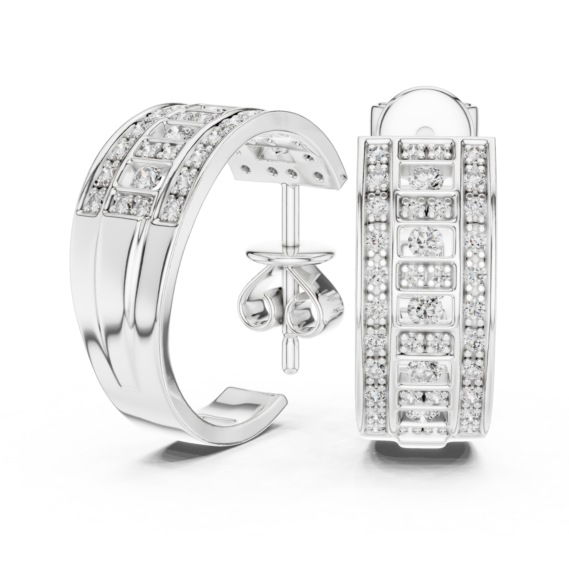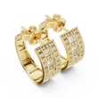 These striking gold hoop earrings feature a bold architectural design enhanced with precision-set diamonds. The structured grid pattern creates depth and dimension, while rows of sparkling diamonds add refined brilliance from every angle. Crafted for those who appreciate modern luxury with timeless appeal, these earrings balance strength and elegance effortlessly. Ideal for evening wear, celebrations, or statement styling, they bring a confident, high-end finish to any jewelry collection.