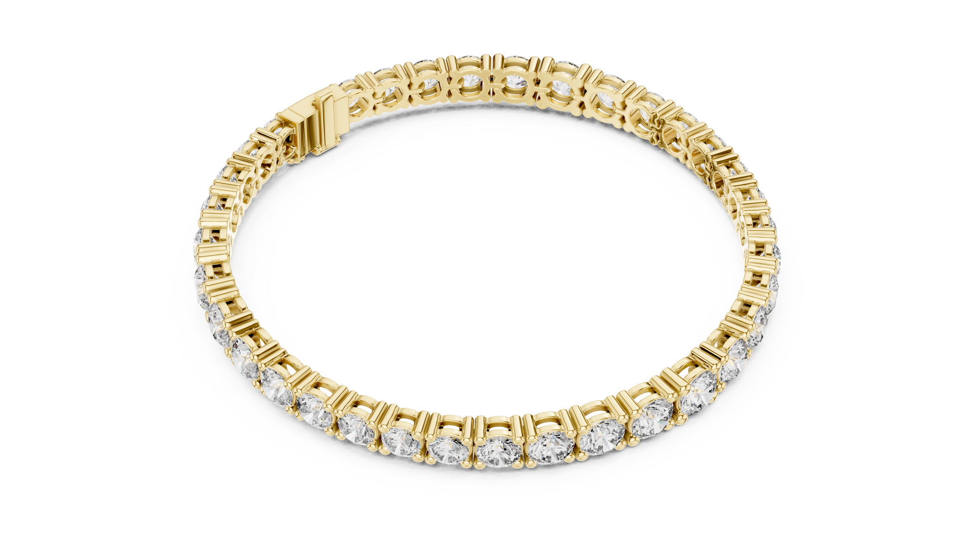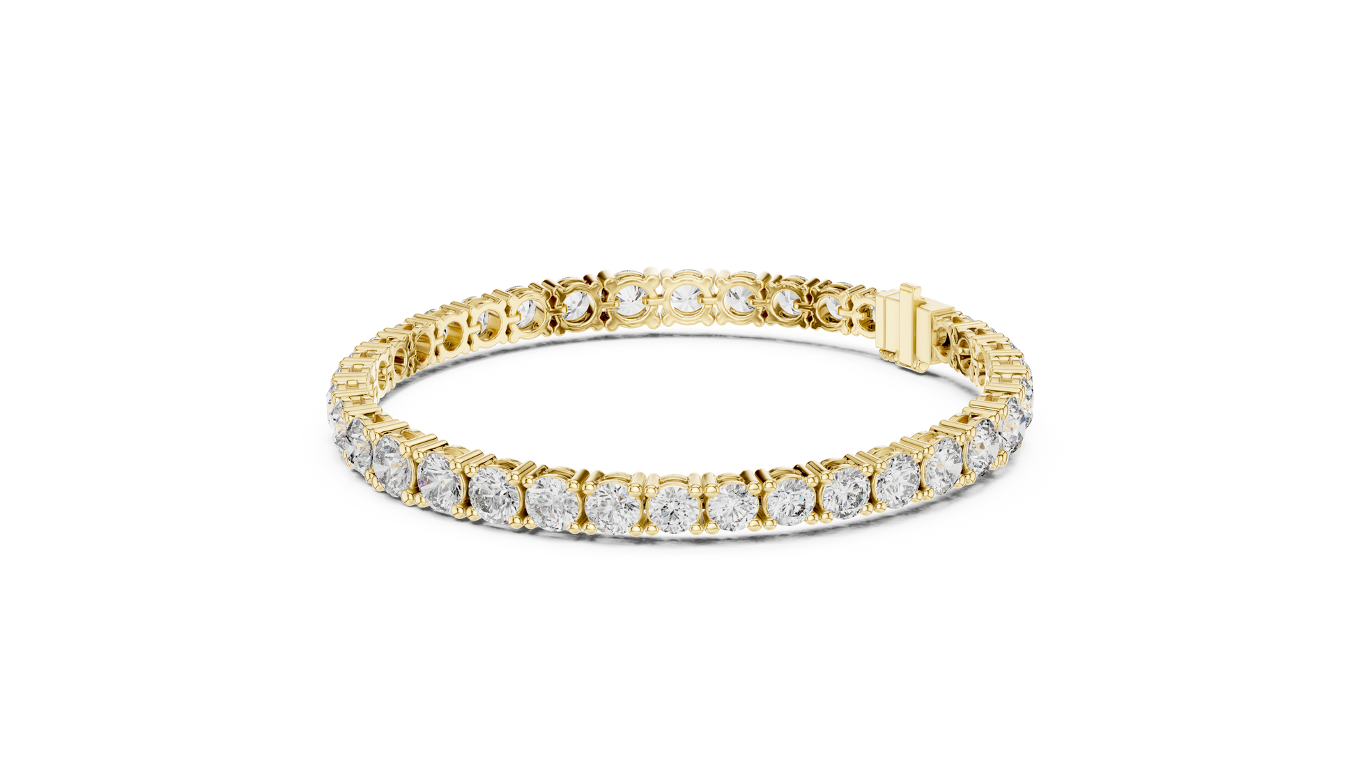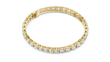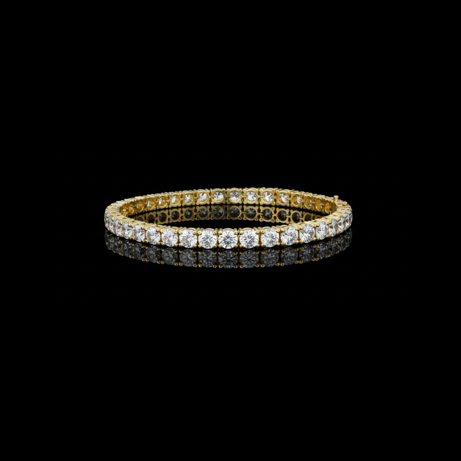 This stunning gold tennis bracelet showcases a continuous line of prong-set round brilliant diamonds, each carefully matched for exceptional sparkle and symmetry. The intricate gold setting enhances light reflection while allowing flexibility and a comfortable fit around the wrist. Finished with a secure box clasp, this timeless design embodies refined elegance and enduring luxury, making it an essential piece for both everyday sophistication and special occasions from Ivevar.