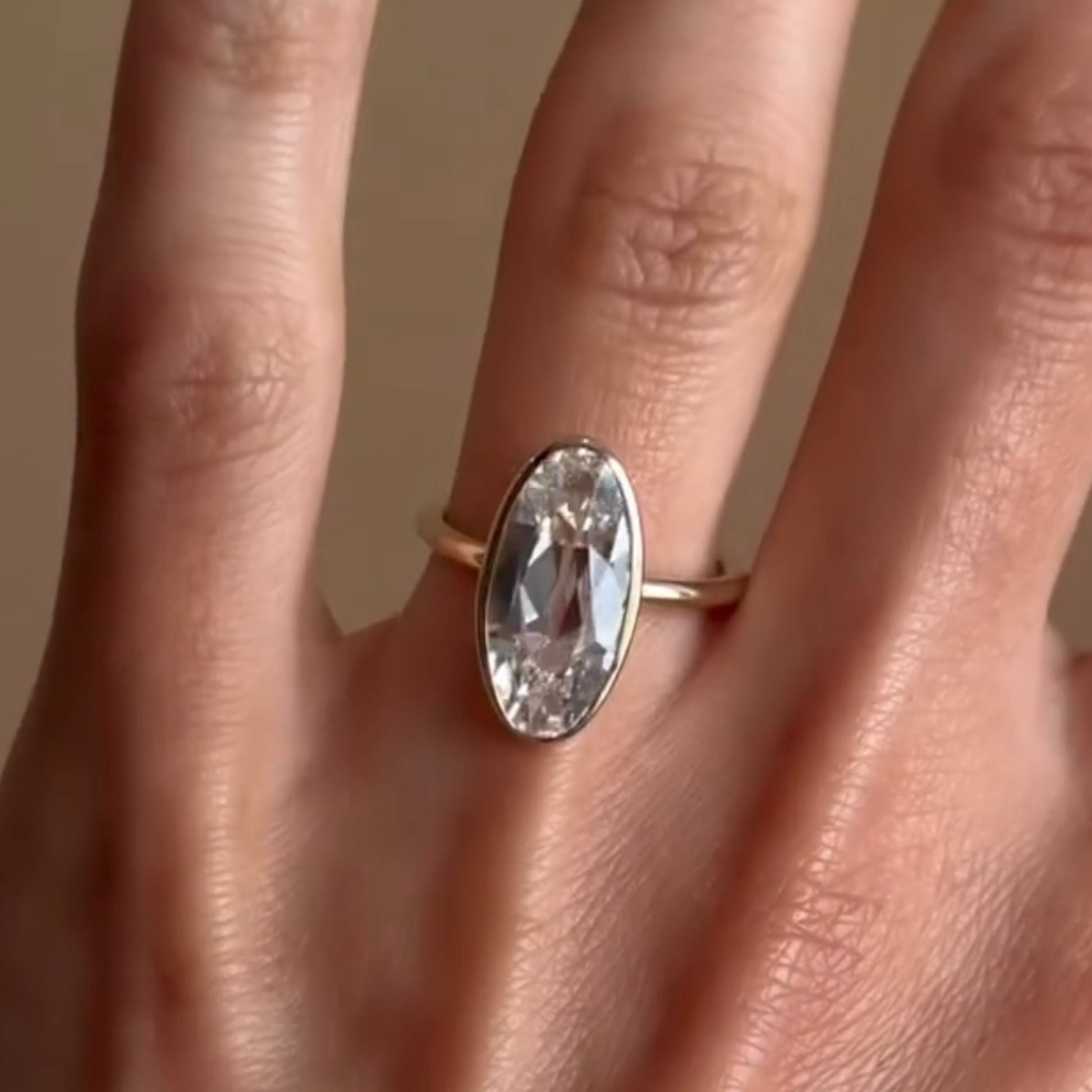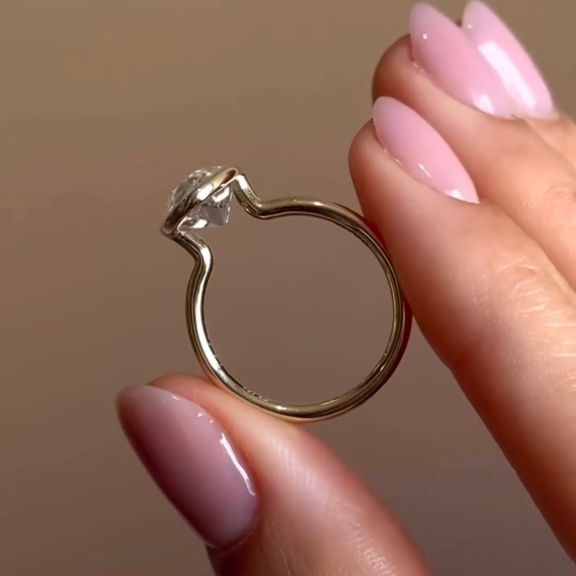 This sophisticated ring features a luminous oval-cut diamond secured within a smooth bezel setting, offering both enhanced durability and a clean, modern silhouette. The polished yellow gold band complements the diamond’s elongated shape, maximizing brilliance while maintaining an understated, refined aesthetic. Designed for those who value minimalist luxury and effortless elegance, this ring is perfect as a distinctive engagement ring, a meaningful anniversary piece, or a refined everyday statement of enduring beauty.