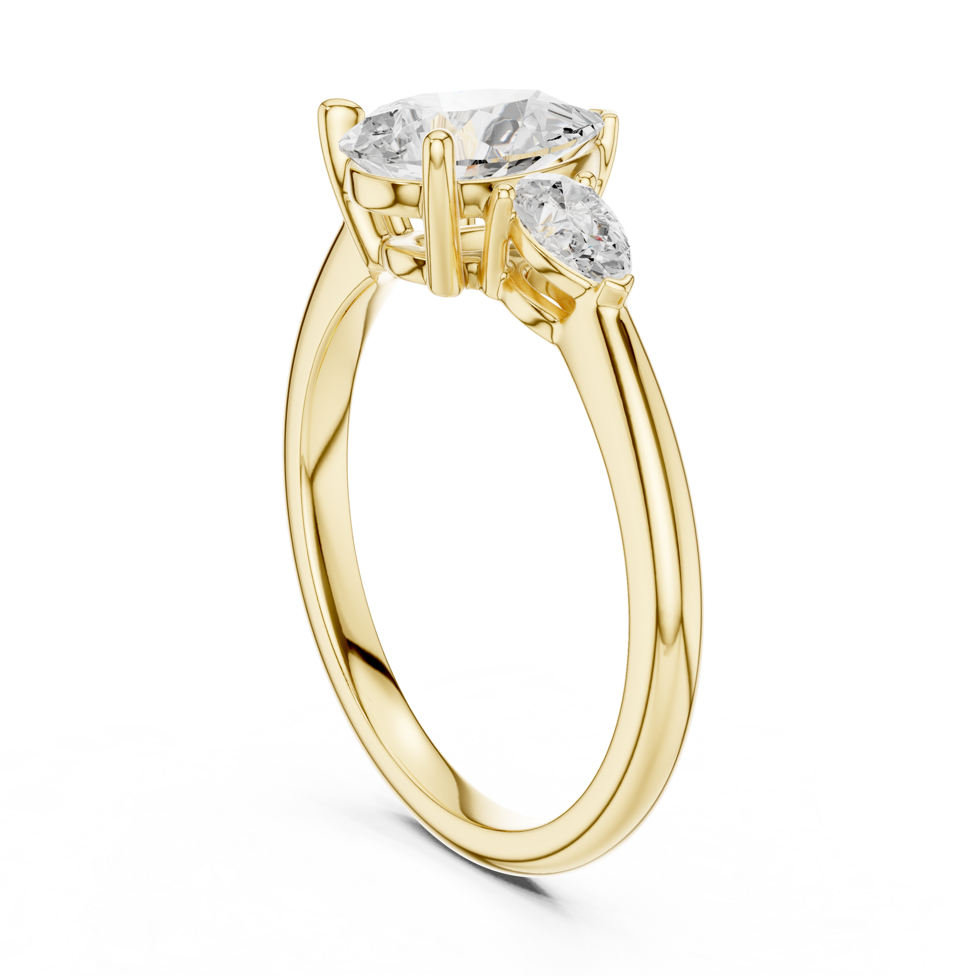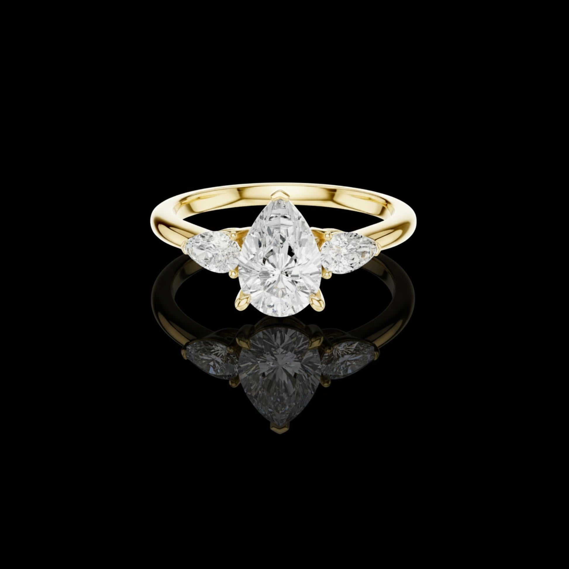 Radiate pure sophistication with this exquisite pear-cut diamond ring crafted in premium gold. The stunning center pear-shaped diamond is gracefully flanked by two matching side diamonds, creating a perfect balance of brilliance and elegance. Its sleek, polished band highlights the diamonds’ natural fire, giving the piece a truly luxurious and timeless appeal. A masterpiece of fine craftsmanship, ideal for engagements, anniversaries, or anyone who loves premium diamond jewelry with a modern classic touch.