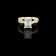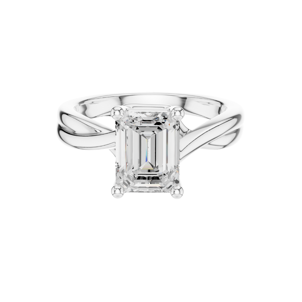 This striking engagement ring features a radiant emerald-cut diamond set in rich gold, framed by a sophisticated twisted band that adds depth and modern elegance. The clean, step-cut facets of the center stone create a hall-of-mirrors effect, while the sculptural crossover shank enhances both comfort and visual interest. Blending contemporary design with timeless refinement, this ring is a bold yet graceful statement, perfect for those who appreciate distinctive craftsmanship and classic luxury.