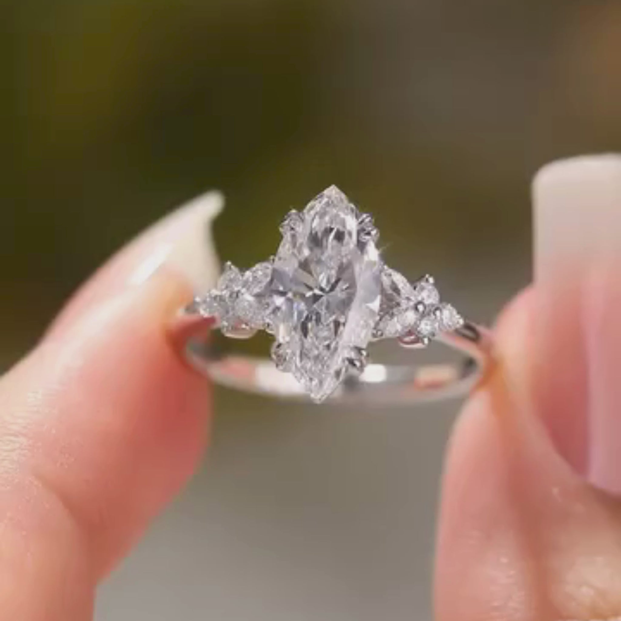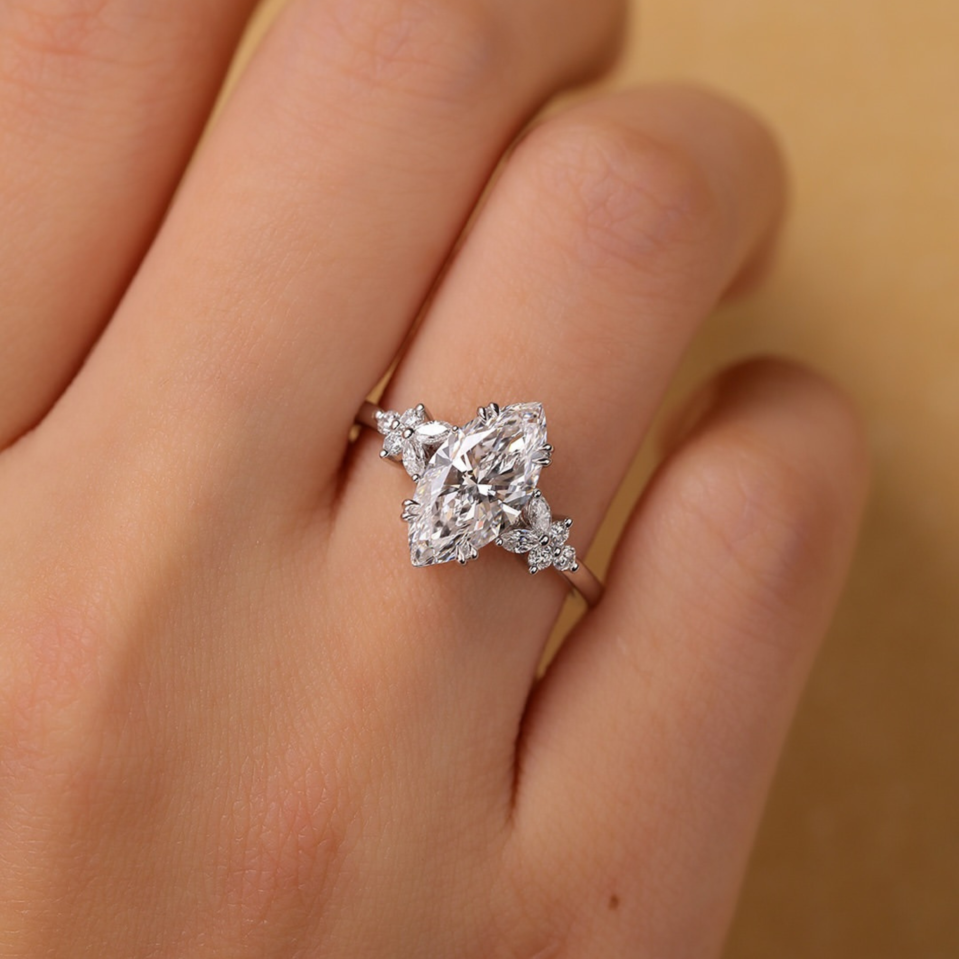 This timeless engagement ring features a brilliant marquise-cut diamond as the center stone, beautifully complemented by sparkling side accent diamonds that enhance its elongated silhouette. Crafted in sleek gold, the refined band and balanced three-stone design create exceptional brilliance and symmetry. Perfect for those who appreciate classic elegance with a modern touch, this ring is ideal as a statement engagement or heirloom-inspired piece.