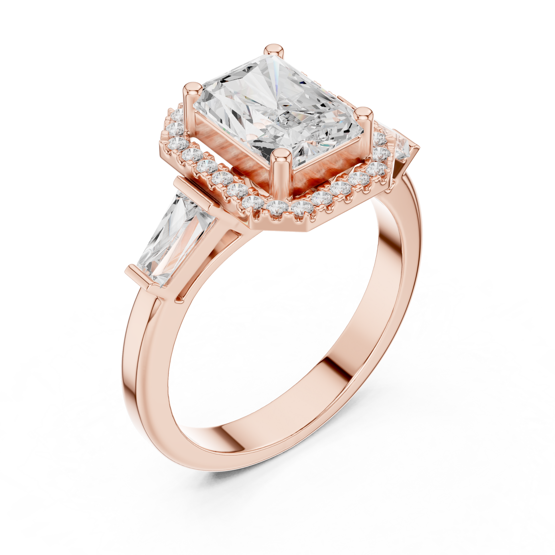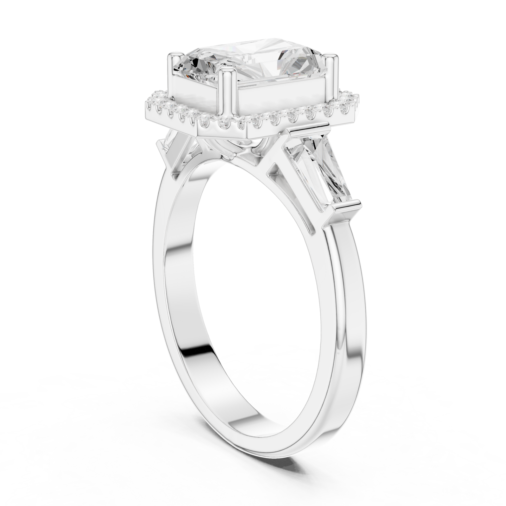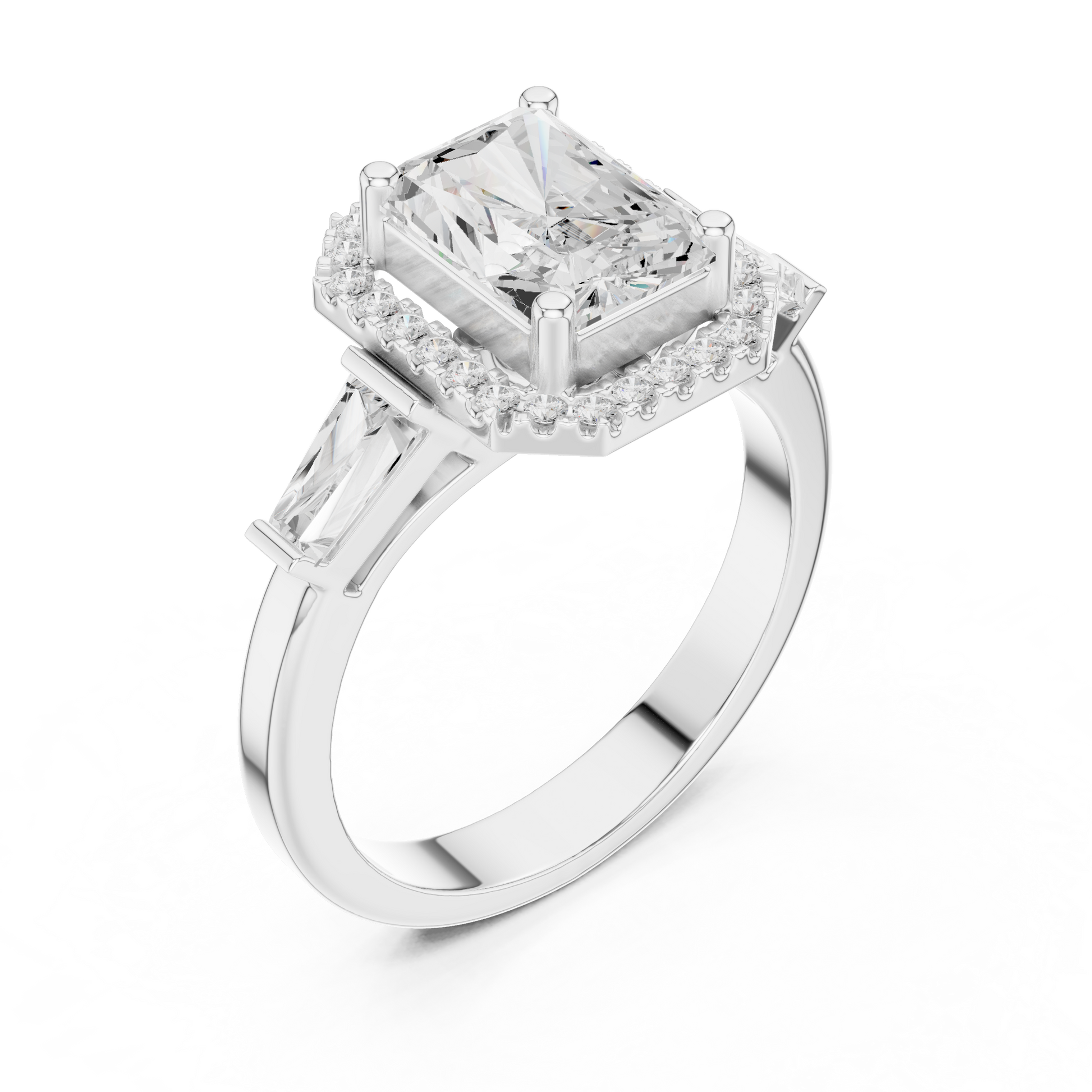 2.00 CT Iconic Lab Grown Radiant Cut Halo Baguette Side Diamonds Prestige Engagement Ring