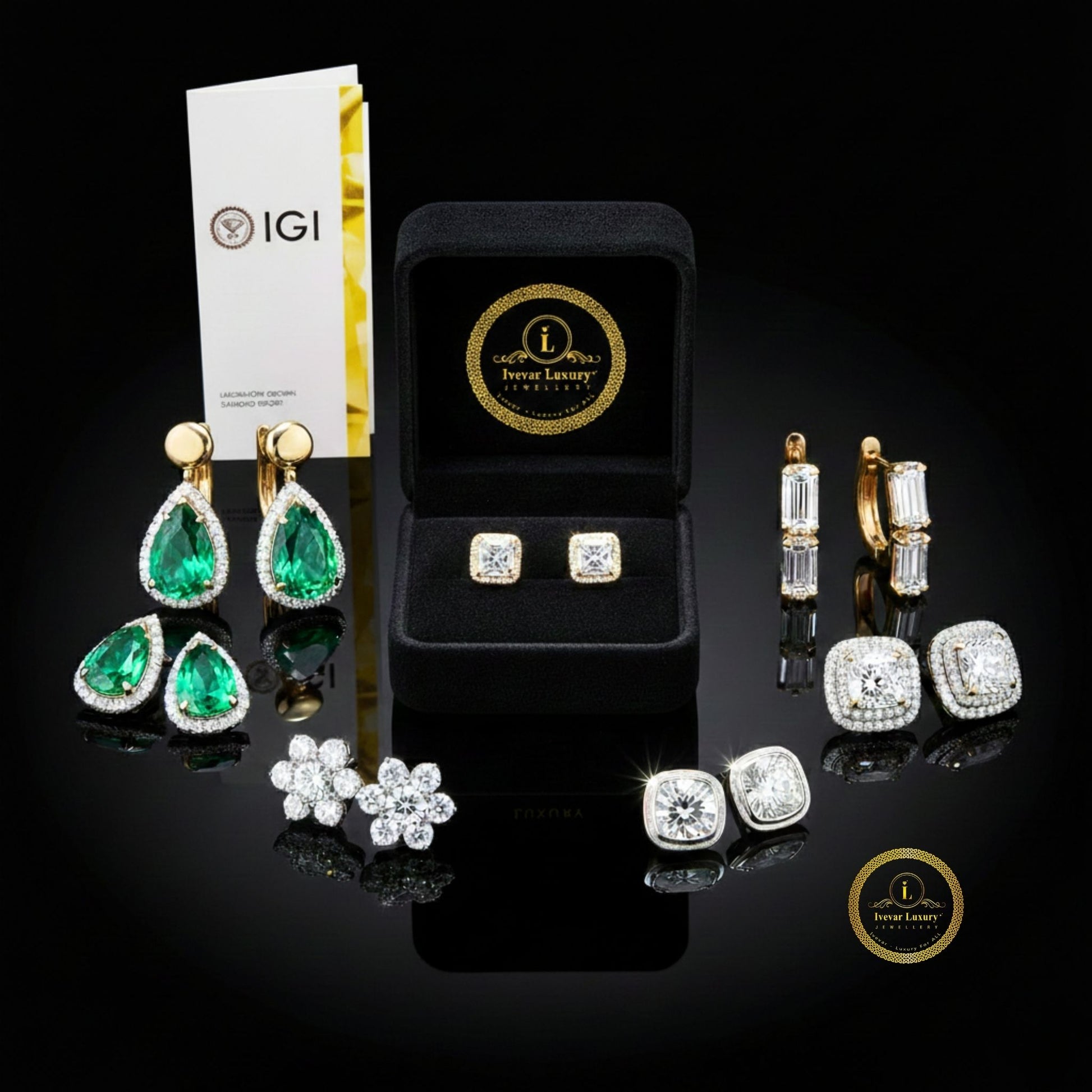 Any pair of earrings featuring center diamonds over 0.25 CT will include an IGI certificate. Certification for colored gemstones or specialty stones is available upon request.