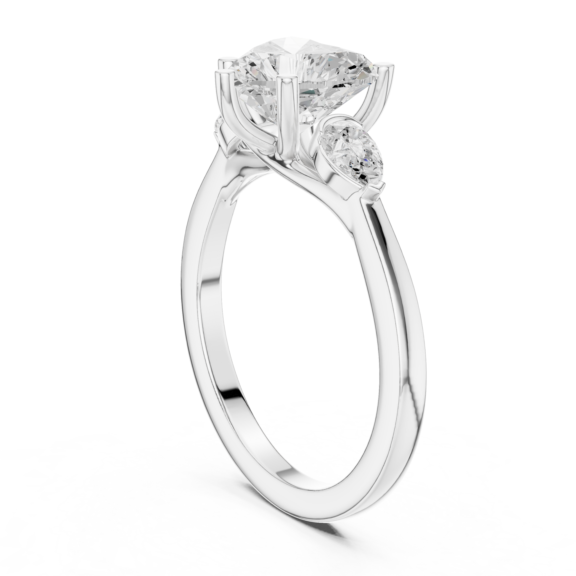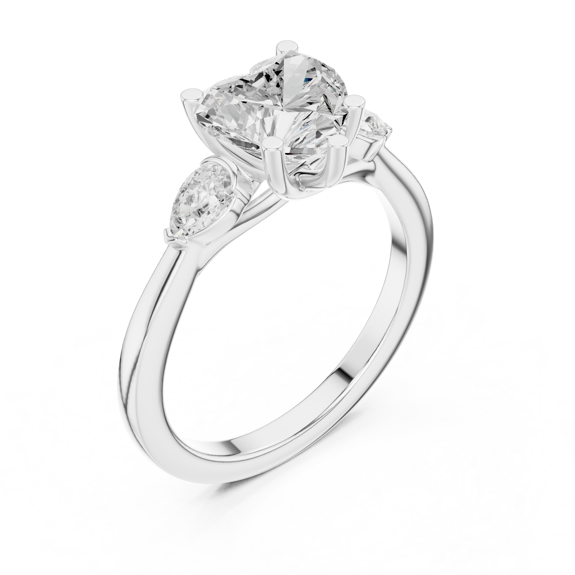 2.00 CT Romantic Heart Shaped Moissanite Diamond Ring With Pear Side Stones For Wedding Wear