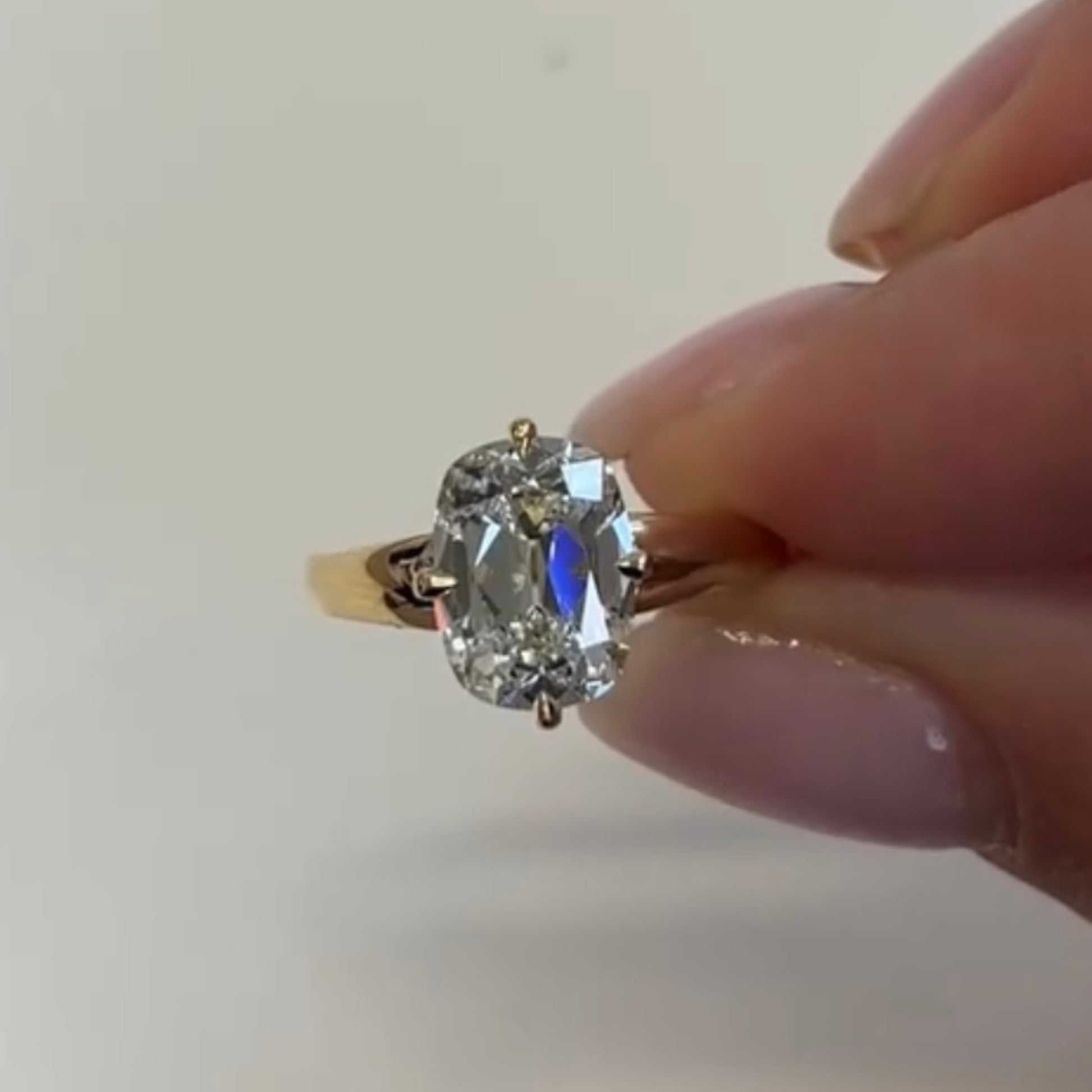 Gracefully refined and timeless in appeal, this cushion-cut diamond solitaire ring showcases a brilliant elongated center stone that enhances sparkle while flattering with its elegant proportions. Secured in a classic four-prong setting, the diamond is designed to capture light from every angle, allowing its natural brilliance to shine. The polished yellow gold band adds warmth and sophistication, creating a beautiful contrast against the diamond’s icy clarity.