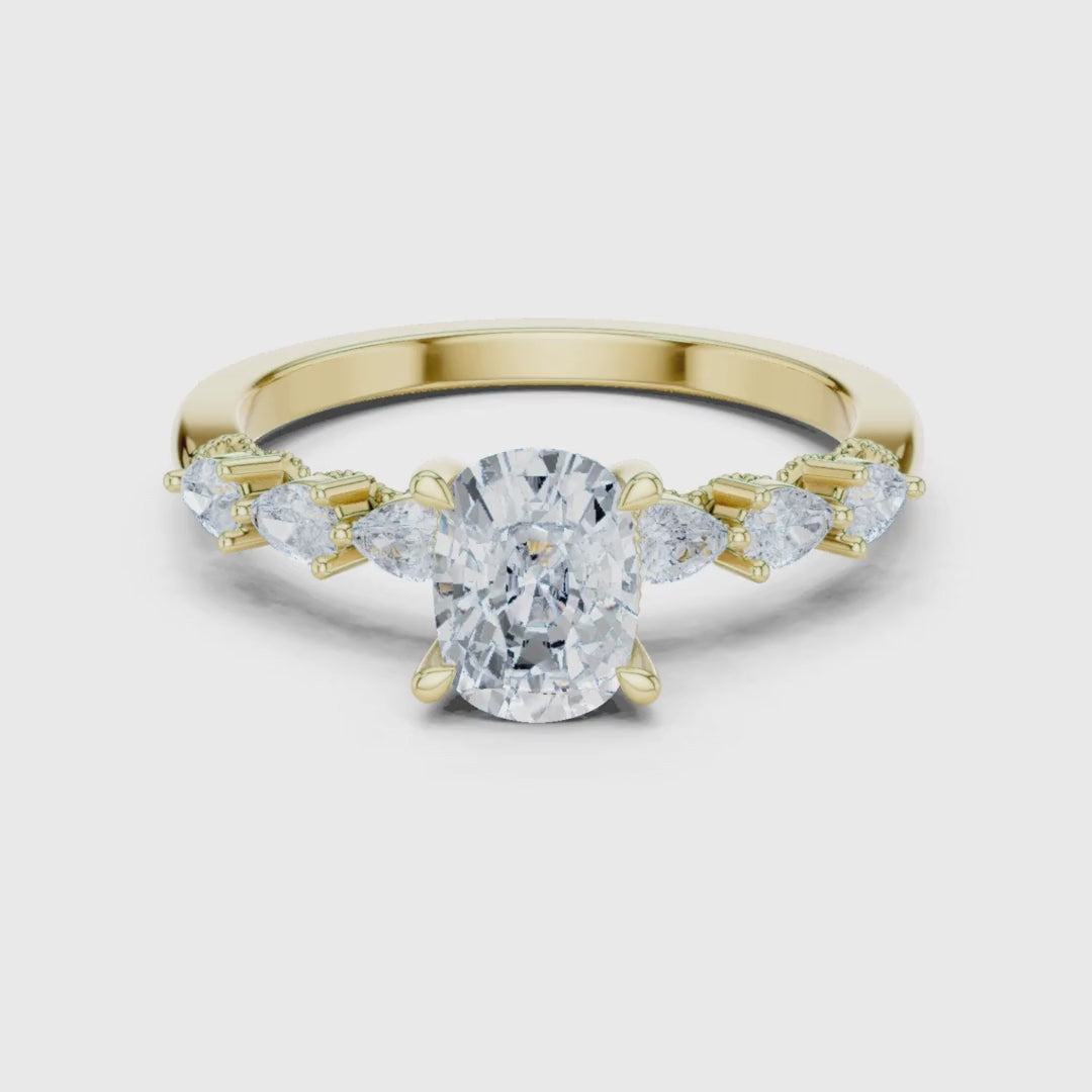 Celebrate brilliance with this stunning Oval Cut Diamond Ring, crafted in luxurious Gold. The centerpiece features a dazzling oval-cut diamond, beautifully enhanced by a sequence of pear, round, and baguette-cut side diamonds that create a breathtaking multi-shape sparkle. Designed with exceptional craftsmanship, this masterpiece offers unmatched elegance, shine, and timeless luxury. A signature creation from Ivevar Luxury, perfect for engagements, anniversaries, or unforgettable moments.