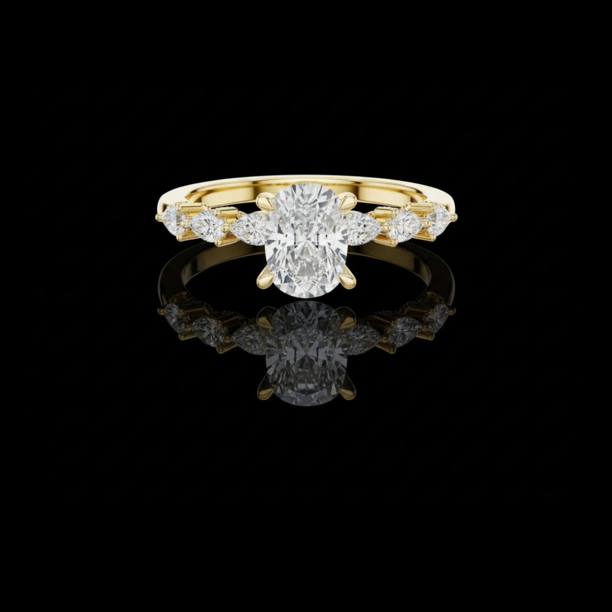 Celebrate brilliance with this stunning Oval Cut Diamond Ring, crafted in luxurious Gold. The centerpiece features a dazzling oval-cut diamond, beautifully enhanced by a sequence of pear, round, and baguette-cut side diamonds that create a breathtaking multi-shape sparkle. Designed with exceptional craftsmanship, this masterpiece offers unmatched elegance, shine, and timeless luxury. A signature creation from Ivevar Luxury, perfect for engagements, anniversaries, or unforgettable moments.